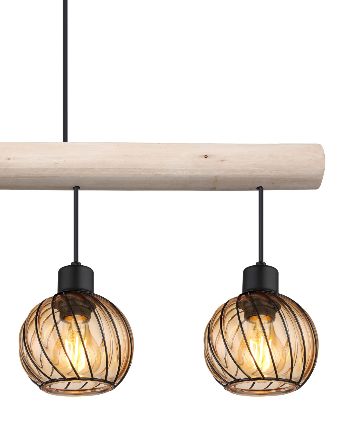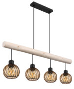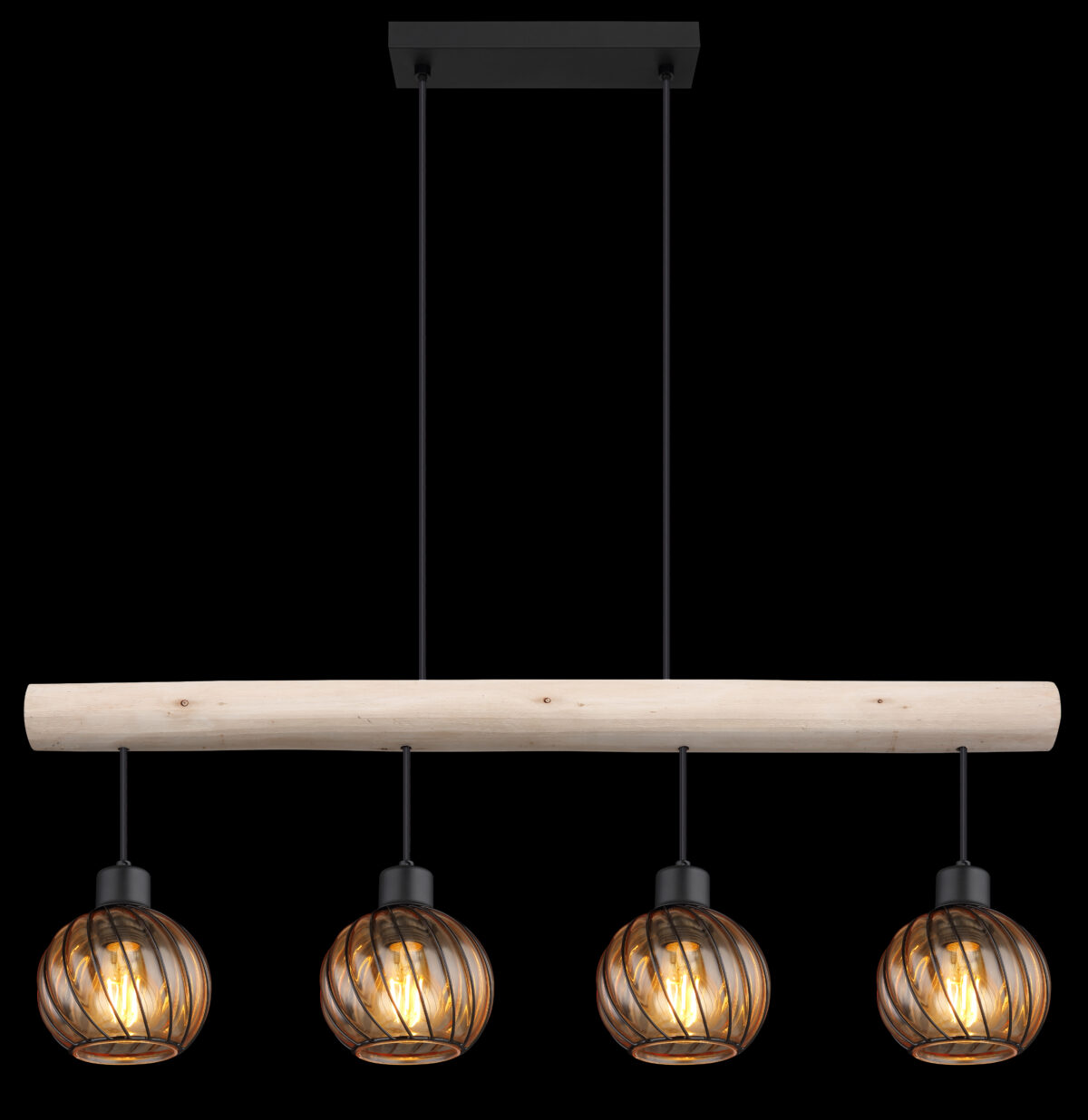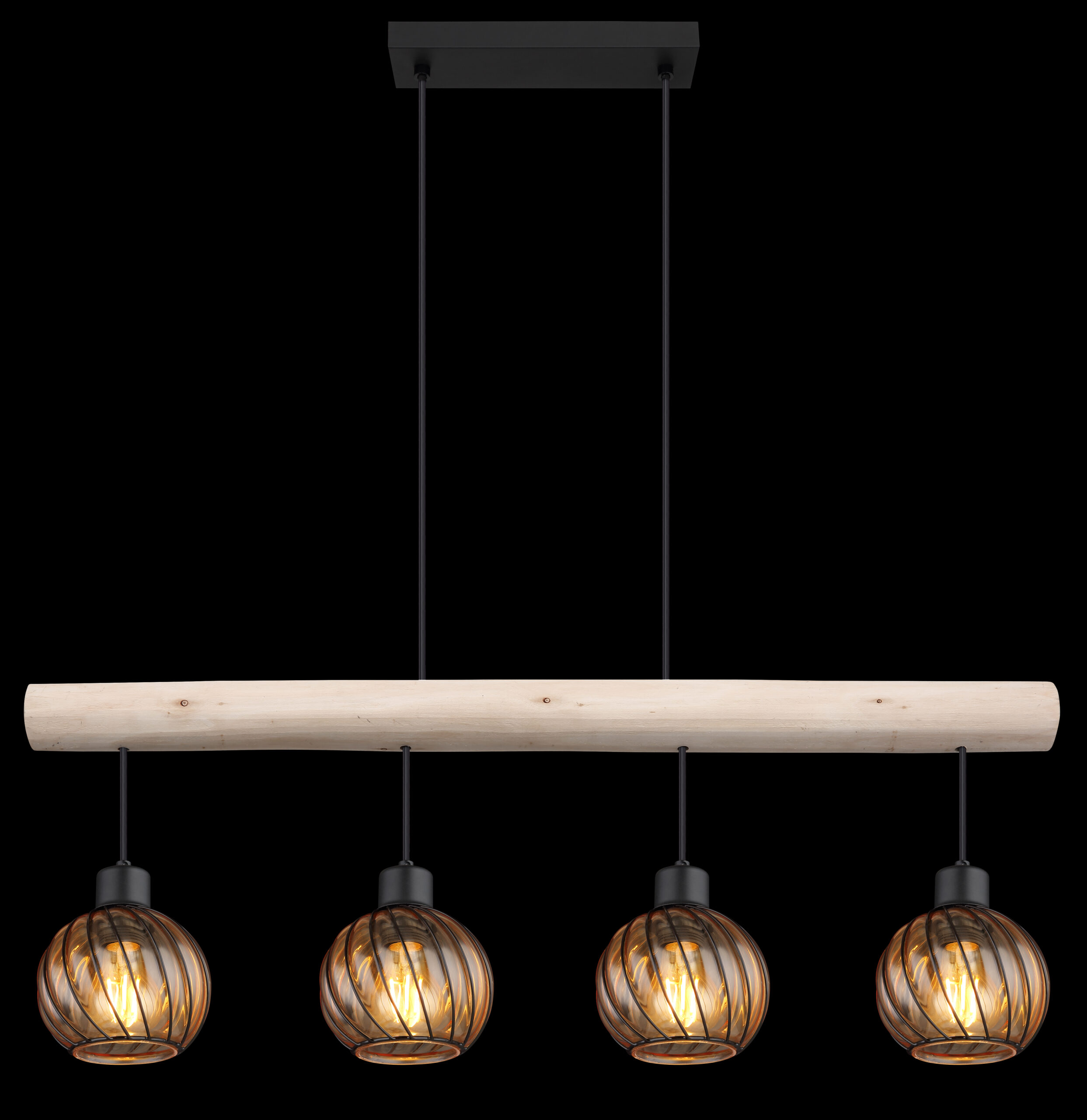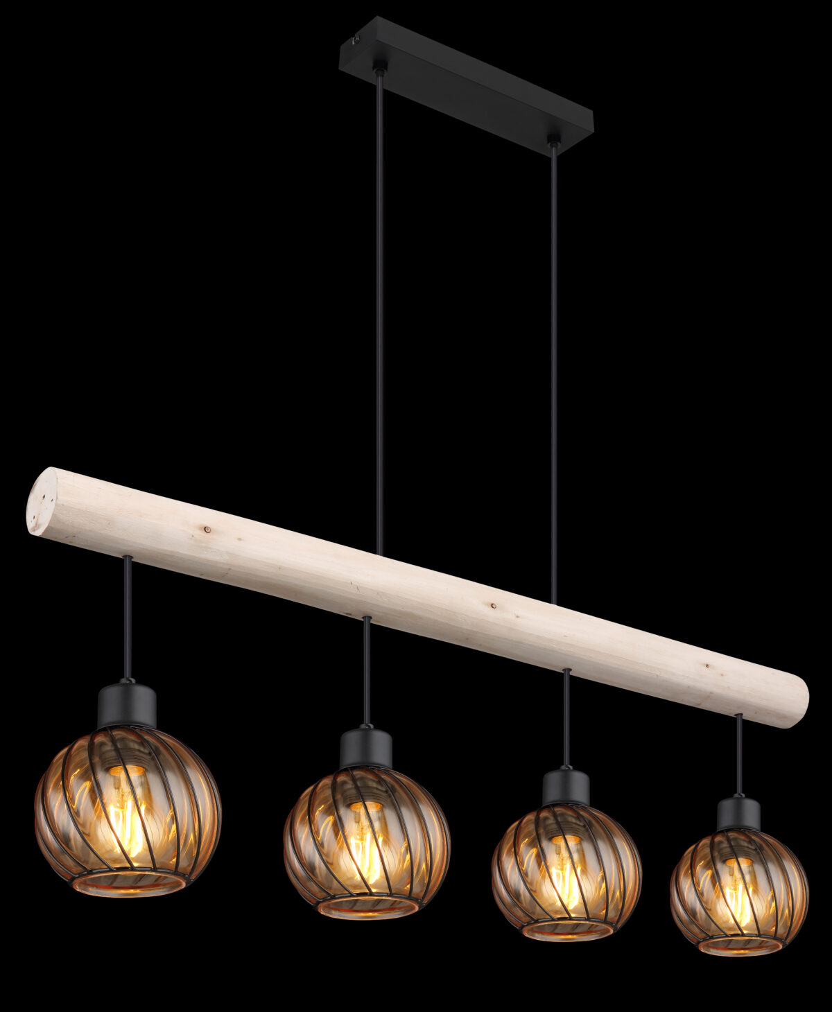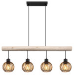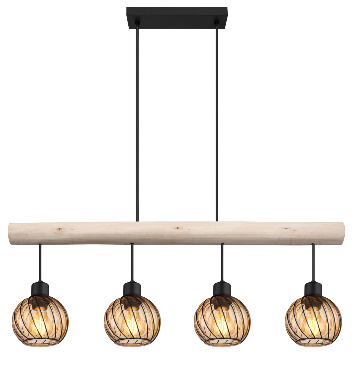 Sa ovom impresivnom drvenom visećom lampom i modernim metalnim rešetkastim sjenilima, zajamčeno ćete donijeti moderan dom koji privlači poglede. Od uskog plafonskog priključka dva kabla vode do drvene grede dužine 82 cm, na kojoj se nalaze četiri E27 utičnice, svaka sa oblikovanim staklenim sjenilima u ćilibaru (Ø 13 cm) i ukrasima od crnog metala. Koristite Paulo za svoju dnevnu sobu, kao ugodnu rasvjetu za svoju blagovaonicu ili iznad kuhinjskog stola. Lampe s maksimalnom snagom do 15 vati mogu se koristiti u četiri visilice otporne na plamen. Lampa ne samo da impresionira posebnom mješavinom materijala stakla u ćilibaru, drvetu i crnom metalu, već dočarava i prekrasne svjetlosne trenutke u klasičnom stilu. Jednostavno savršen za svaku životnu situaciju.