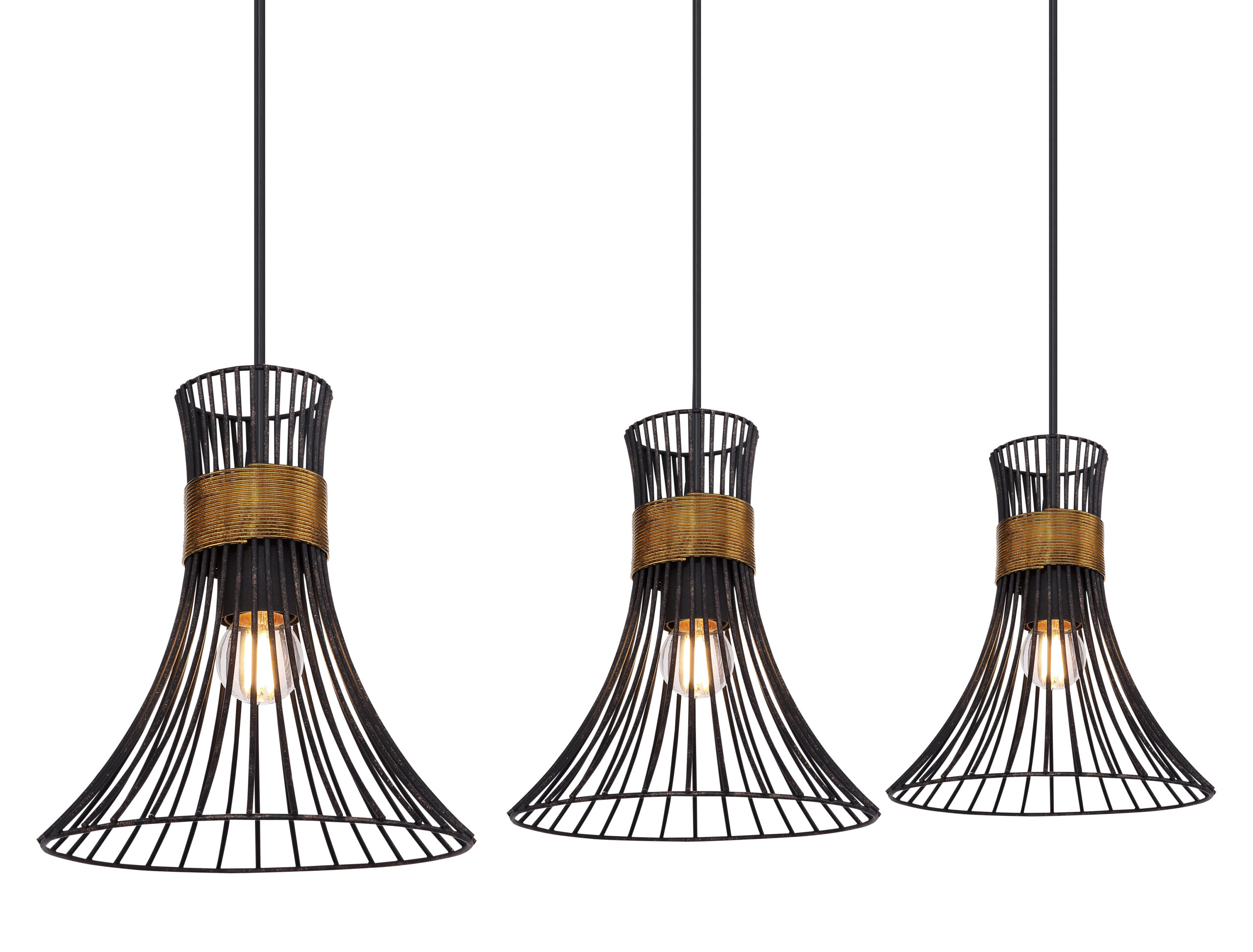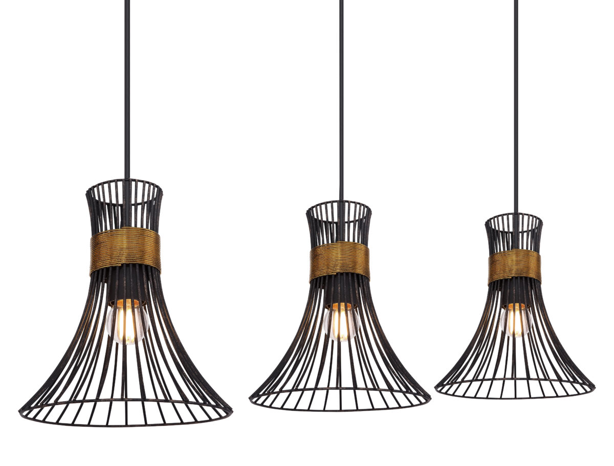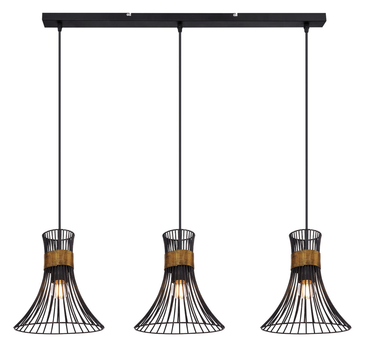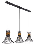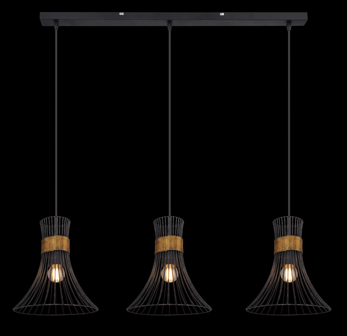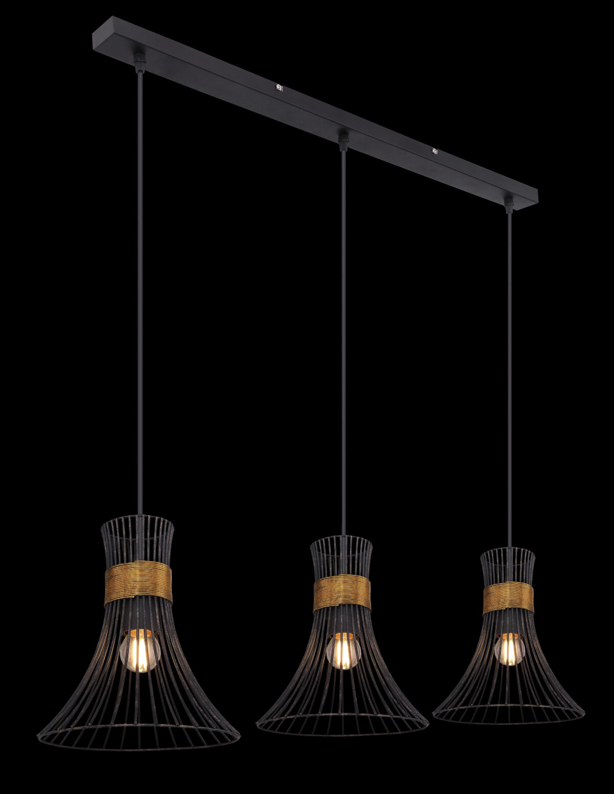 Viseća lampa iz porodice proizvoda PURRA uvjerava kombinacijom crnog i metala zlatne boje. Elegantna lampa je okružena crnim rešetkastim šipkama sa omotanim zlatnim nitima. Svetiljka je uključena i stvara ugodnu atmosferu. Sa dužinom od 80 cm i tri odvojena viseća stalka, privući će oči u vaš dnevni boravak! Zbog navoja E27 moguće je slobodno birati sijalicu (maks. 60 vati). Zbog dugotrajnosti preporučujemo LED sijalice. Sa ostalim modelima ove serije možete dodatno uljepšati životni prostor.
