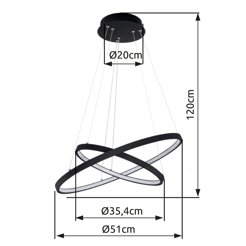 Sa ovom modernom, okruglom LED privjesnom lampom pod nazivom Ralph (Ø 51 cm) u crnoj mat boji, zagarantovano vam je apsolutna privlačnost. Dizajnirana od dva prstena, ova unutrašnja lampa od 120 cm je “must have”. Uključena LED sijalica od 42 vata daje jako svjetlo od 1300 lumena. LED lampa ne samo da ima memorijsku funkciju, već i intenzitet svjetla (3000K) možete sami odrediti i prigušiti preko zidnog prekidača. LED unutrašnje svjetlo je idealno za upotrebu u svakoj spavaćoj/dječijoj/dnevnoj/trpezariji i hodniku. Sa ostalim modelima iz ove serije možete uljepšati dnevni boravak. Zahvaljujući maloj potrošnji energije, ova LED lampa štedi energiju, a samim tim i vrlo ekološki prihvatljiva.