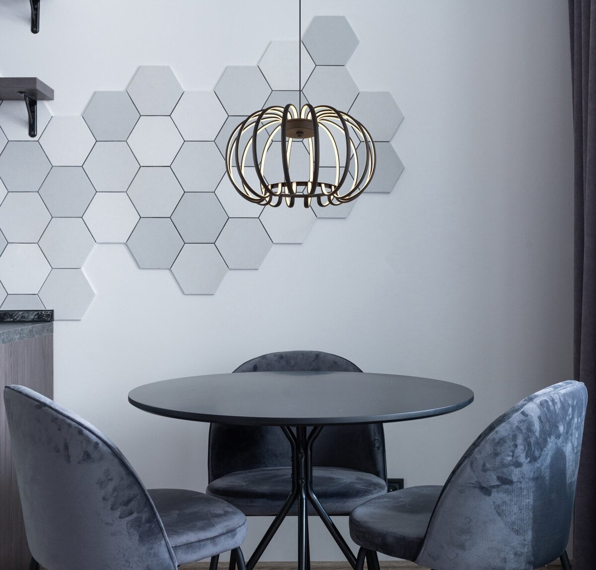 Viseća lampa METAL BLACK MATT impresionira svojim modernim dizajnom i raznovrsnim funkcijama. Tijelo od mat crnog metala i sjenilo od crnih aluminijskih šipki daju lampi industrijski i istovremeno elegantan izgled. Kombinacija aluminija i opal plastike osigurava ugodnu distribuciju svjetlosti. Uz integriranu memorijsku funkciju možete sačuvati željenu postavku svjetla i pozvati je u bilo kojem trenutku. Lampa vam takođe omogućava da prebacite svetlo na tri nivoa osvetljenosti, tako da uvek možete uživati u savršenom osvetljenju za svako raspoloženje i situaciju. Ugrađena LED tehnologija osigurava energetski efikasno osvjetljenje s ugodnim temperaturom boje od 3000 K. Ova viseća svjetiljka je idealna za moderne blagovaonice i dnevne sobe, kao i za elegantnu akcentnu rasvjetu u različitim konceptima prostorija.