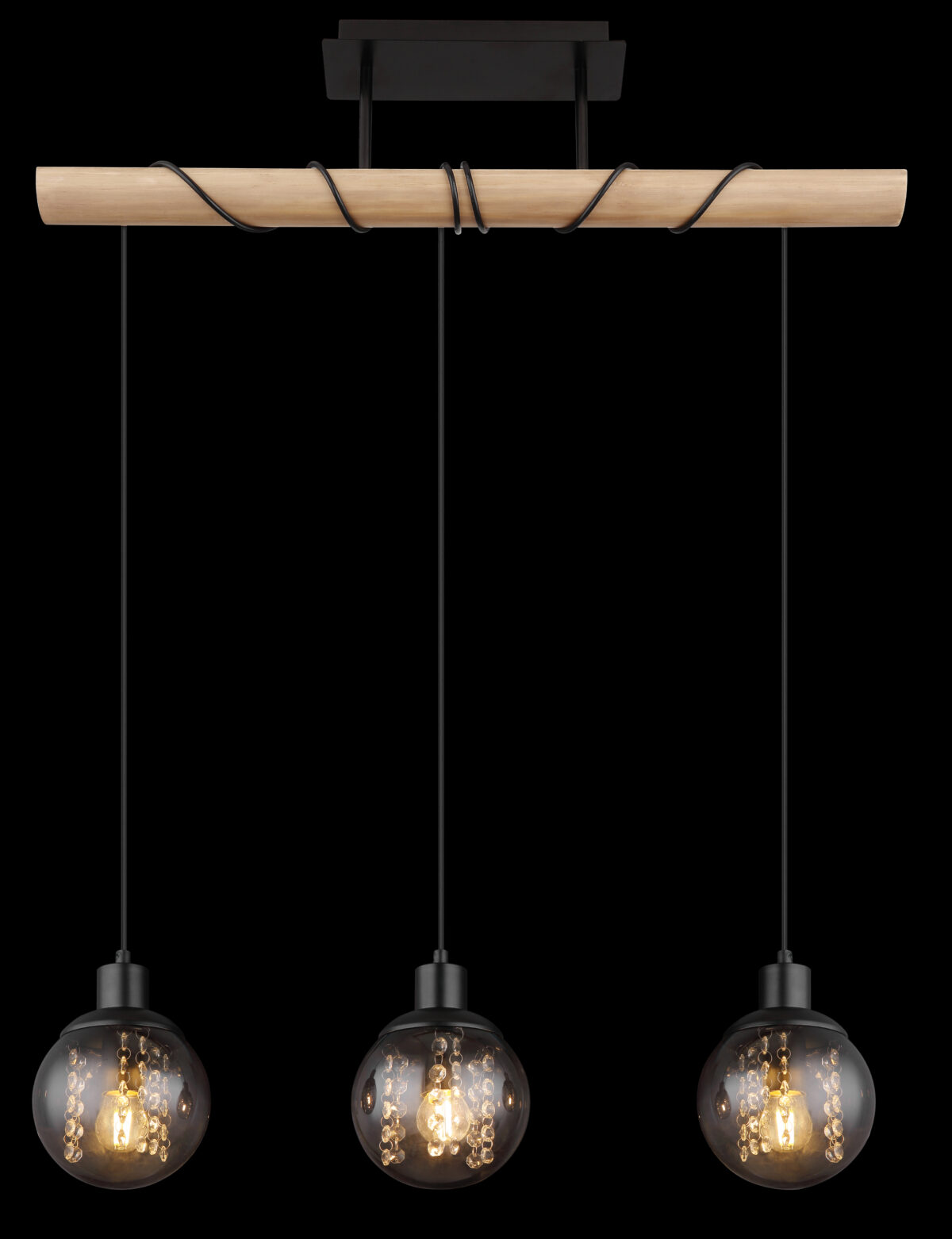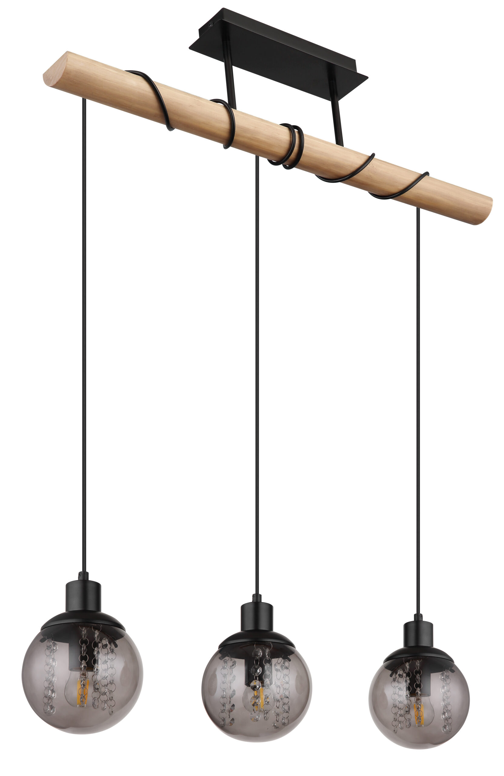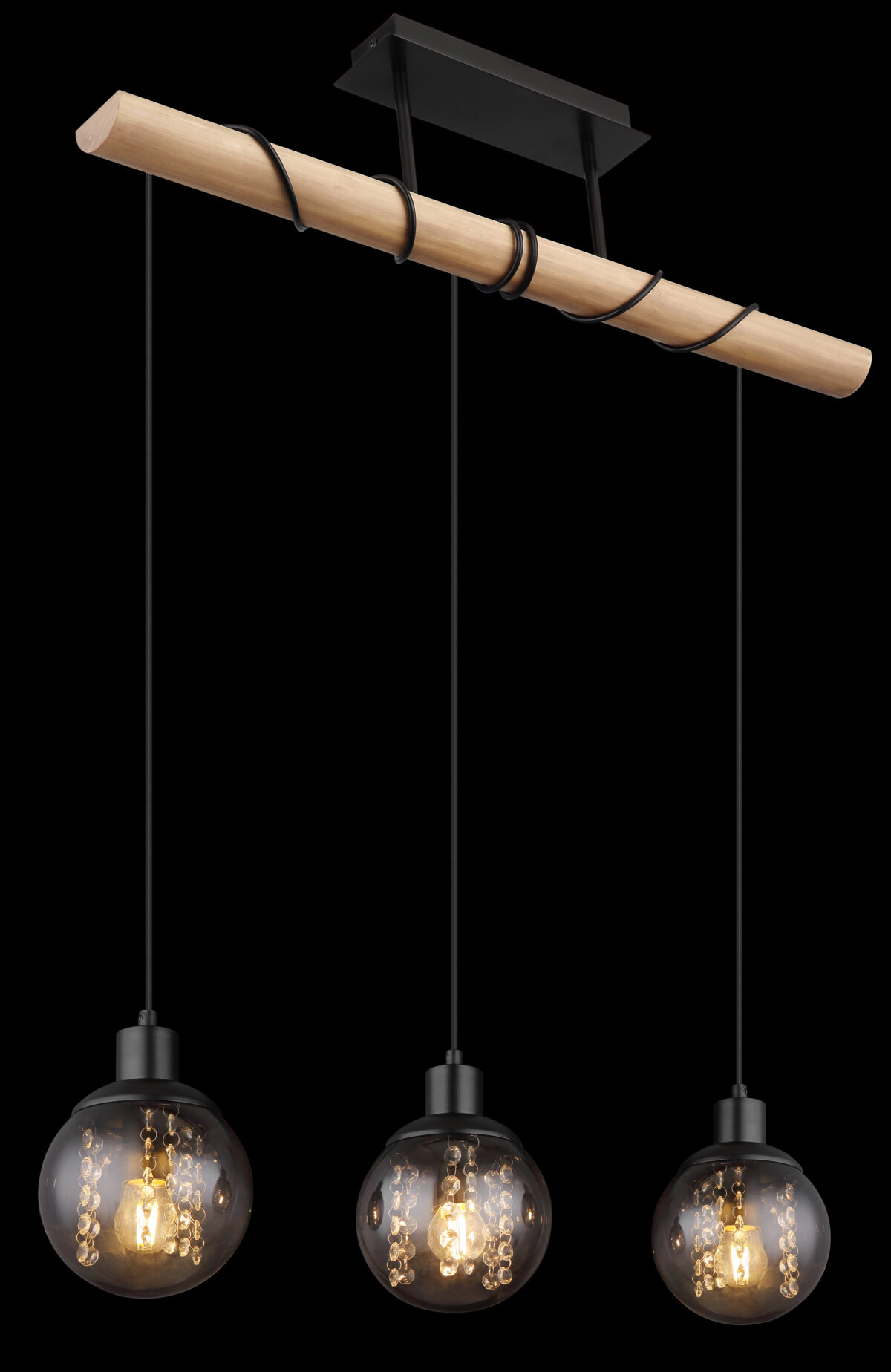 Ova prekrasna visilica serije RICHARD uvjerava svojim sjajnim dizajnom i postaje centar vaše sobe.  Lampa se sastoji od 3 staklena sjenila u boji dima sa ukrasima od plastičnih kristala, od kojih je svaki opremljen E27 grlom i visi na crnim kablovima 1,2m od plafona. Visina viseće lampe se može podesiti uz pomoć drvenog stuba dužine 78 cm jednostavnim umotavanjem. E27 grla vam omogućavaju da koristite sijalice po vašem izboru, do maksimalne snage od 25 vati. Sa ostalim modelima iz ove serije možete uljepšati svoj dnevni boravak.