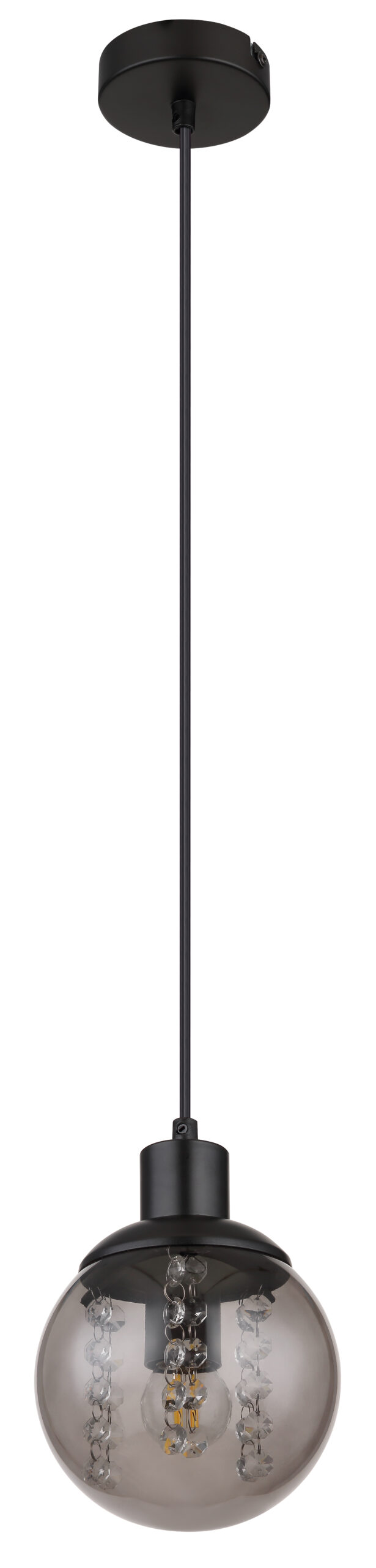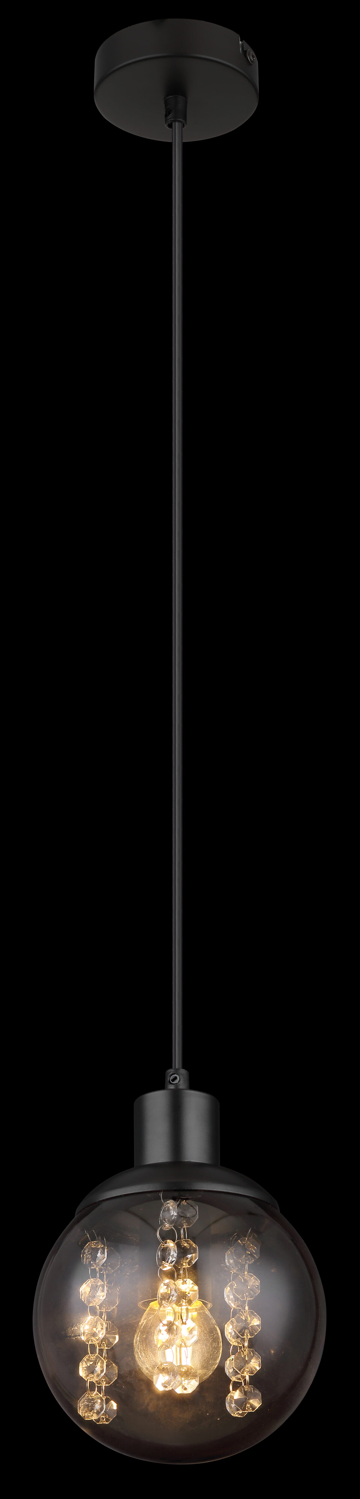 Ovaj crni ljepotica RICHARD impresionira svojim elegantnim dizajnom. Zadimljeno staklo (Ø 15cm) sa ukrasima od plastičnih kristala visi 150cm u prostoriji. E27 utičnica vam omogućava da odredite boju svjetla i svjetlinu do maksimalne snage od 25 vati. Ova viseća lampa je idealna za spavaće i dnevne sobe. Ostali modeli iz ove serije upotpunjuju vaš životni prostor.