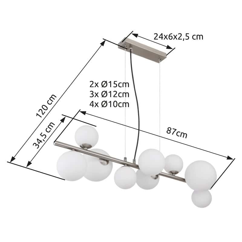 Doživite fascinantnu ljepotu RIHA visilice i dajte svojoj sobi jedinstvenu atmosferu. Sa svojim mat nikl metalom i opalnim staklom, privlači pažnju u svakoj prostoriji. Prozirni PVC kabl omogućava individualno podešavanje visine prema vašim ličnim željama. Sa dimenzijama 870x345x1200mm i impresivnom kombinacijom stakla DM 4x10cm, 3x12cm i 2x15cm, ova visilica stvara fascinantan svjetlosni efekat. Dolazi sa devet energetski efikasnih G9 LED sijalica (3,5W, 230V) koje pružaju toplo i ugodno osvjetljenje sa izvorom od 350lm i izlaznom snagom od 310lm pri temperaturi boje od 3000K. Neka RIHA visilica učini da vaš interijer zablista i uživajte u jedinstvenom dizajnu u vašem domu.