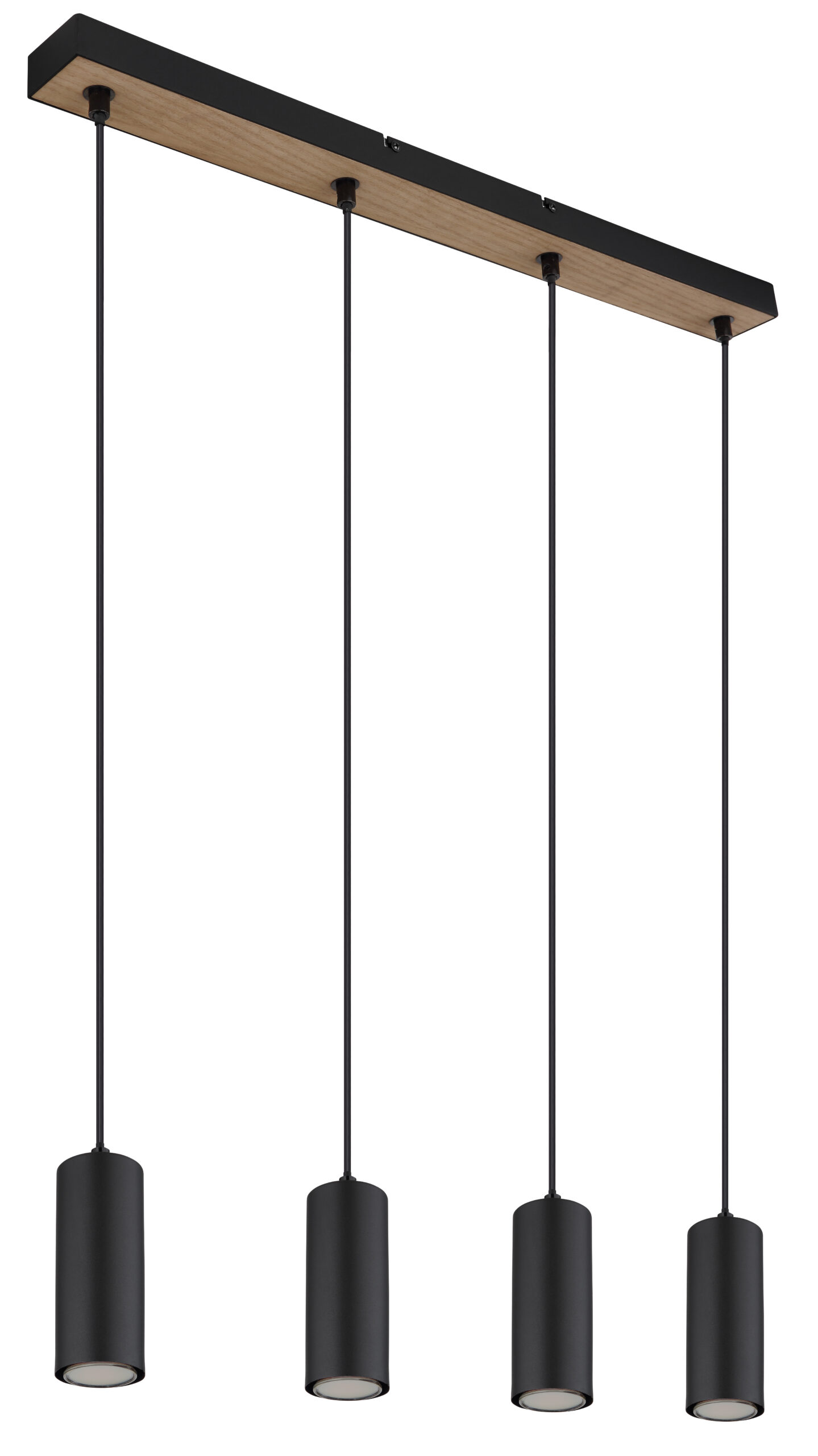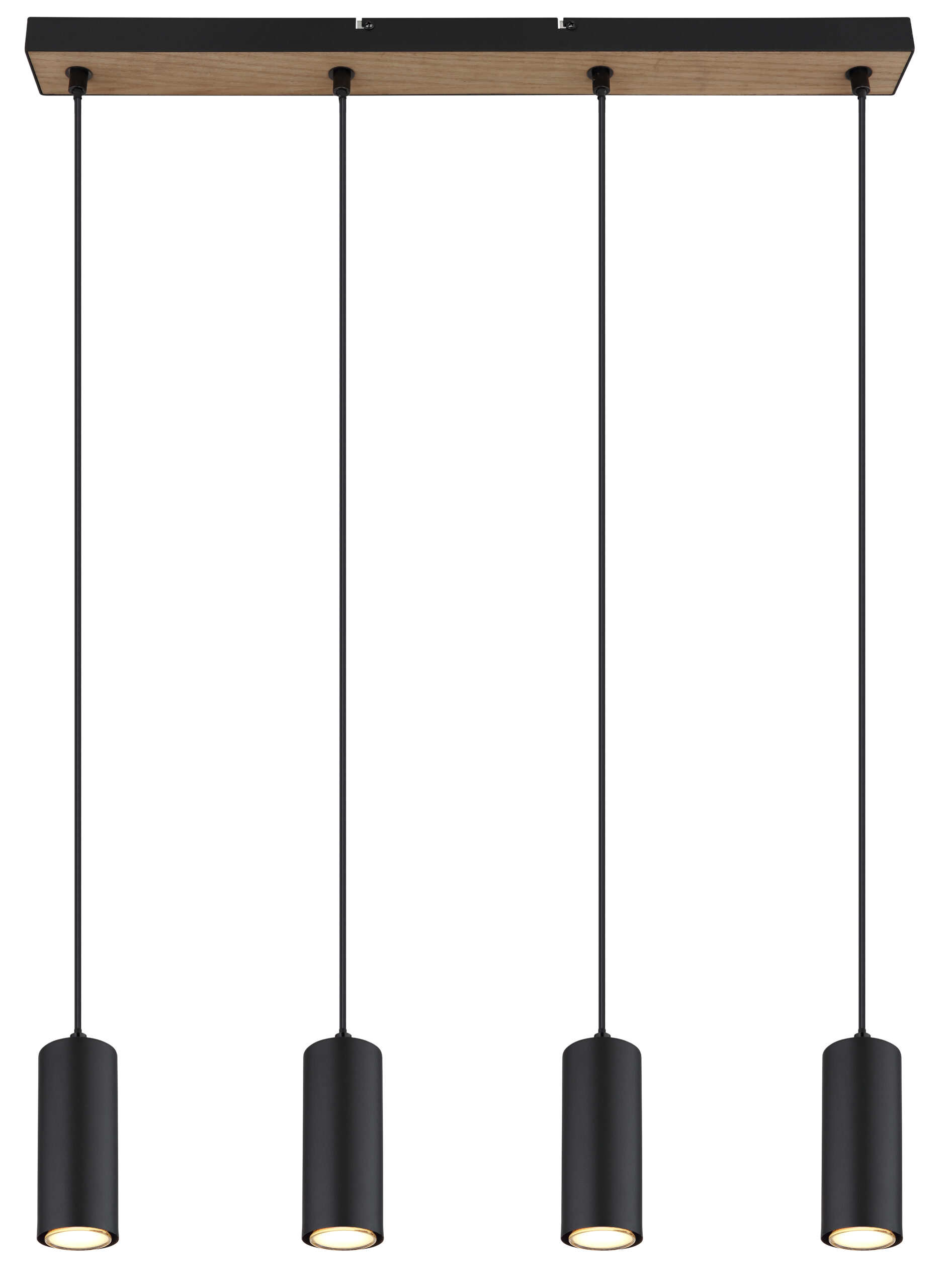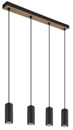 Ova prekrasna viseća lampa Robby serije u crnoj boji inspirira svojim jednostavnim dizajnom. Na 65 cm dugom crnom mat plafonskom držaču sa dekoracijom u izgledu drveta, 4 kabla do 1,2 m svaki dovode do GU10 utičnice, svaki pokriven cilindričnim sjenilom u boji starog mesinga. GU10 utičnice vam omogućavaju da sami odredite boju i svjetlinu svjetla, do maksimalne snage od 35 vati. Sa ostalim modelima ove serije možete odlično upotpuniti svoj dnevni boravak.