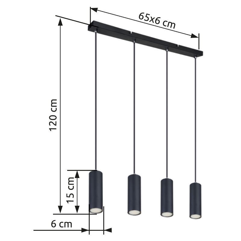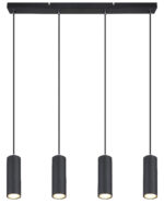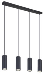 Ova prekrasna viseća lampa Robby serije u crnoj boji inspirira svojim jednostavnim dizajnom. Na plafonski priključak dužine 65 cm povežite 4 kabla do svake GU10 utičnice. Gu10 utičnice vam omogućavaju da odredite boju svjetla i svjetlinu, do maksimalne snage od 35 vati. Sa ostalim modelima ove serije možete odlično upotpuniti svoj dnevni boravak.