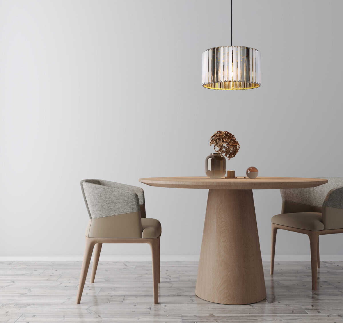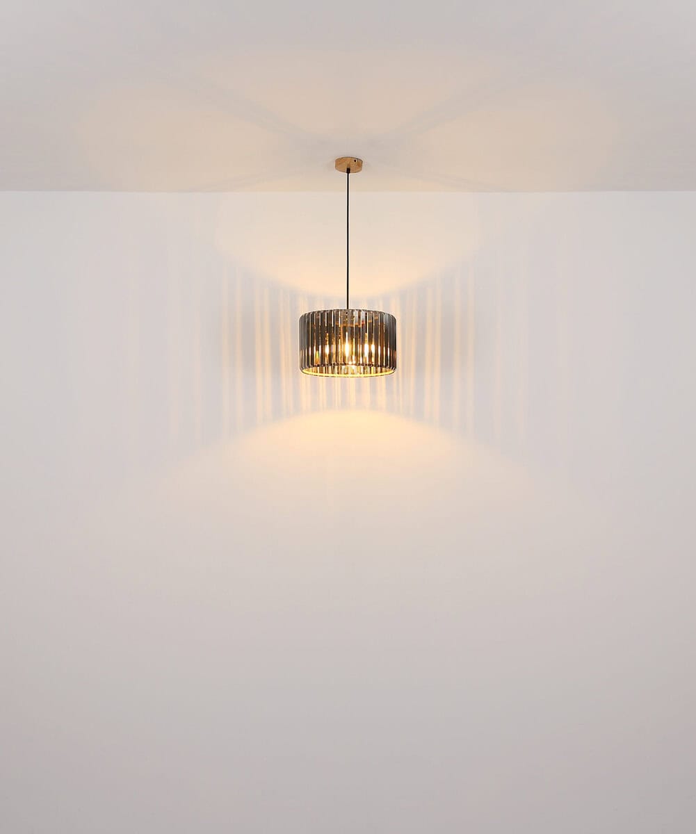 Viseća lampa RUN u izgledu drveta je moderan dodatak vašem domu. Sa prečnikom od 350 mm i visinom od 1200 mm, nudi savršen spoj elegancije i modernog dizajna. Kombinacija metala sa izgledom drveta i dimljenih kristala K5 stvara toplu, privlačnu atmosferu. Crni tekstilni kabel nadopunjuje dizajn i daje svjetiljci atraktivan izgled. Ova viseća lampa je isključena. 1x E27 60W 230V, tako da možete koristiti izvor svjetlosti po vašem izboru. Idealna iznad trpezarijskih stolova ili u dnevnim sobama, visilica RUN unosi svetlost i stil u vaš dom.