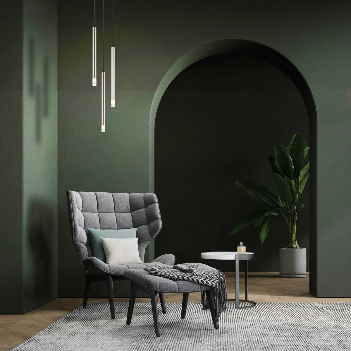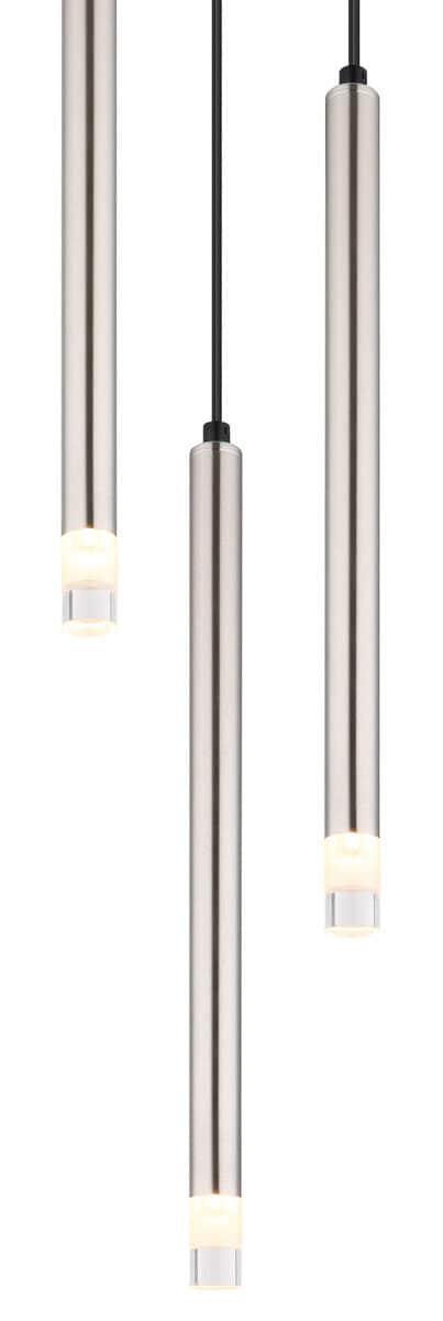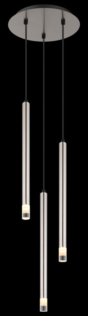 Viseća lampa RYAN je modernog i elegantnog dizajna, savršena za savremene enterijere. Njegovo okruglo mat telo od nikla daje mu stilski štih i harmonično se integriše u različite životne prostore. Viseća lampa je opremljena sa tri tanka, cilindrična sjenila, koja su također izrađena od mat nikla i sateniranog akrila. Ova kombinacija osigurava ugodnu i ravnomjernu raspodjelu svjetlosti. RYAN je idealan kao rasvjeta iznad trpezarijskih stolova, u dnevnim sobama ili drugim dnevnim prostorima. Kombinira funkcionalnost s estetskim izgledom i postavlja stilske akcente. Jasan i jednostavan dizajn čini ga bezvremenskim elementom u dizajnu interijera. Viseća lampa RYAN je savršen izbor za one koji traže visokokvalitetno rasvjetno rješenje koje je praktično i sa stilom, a stvara ugodnu atmosferu.