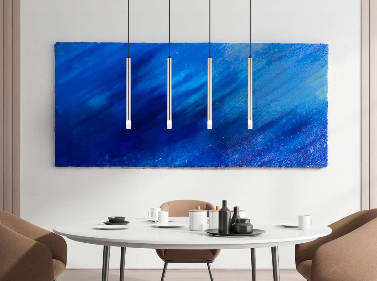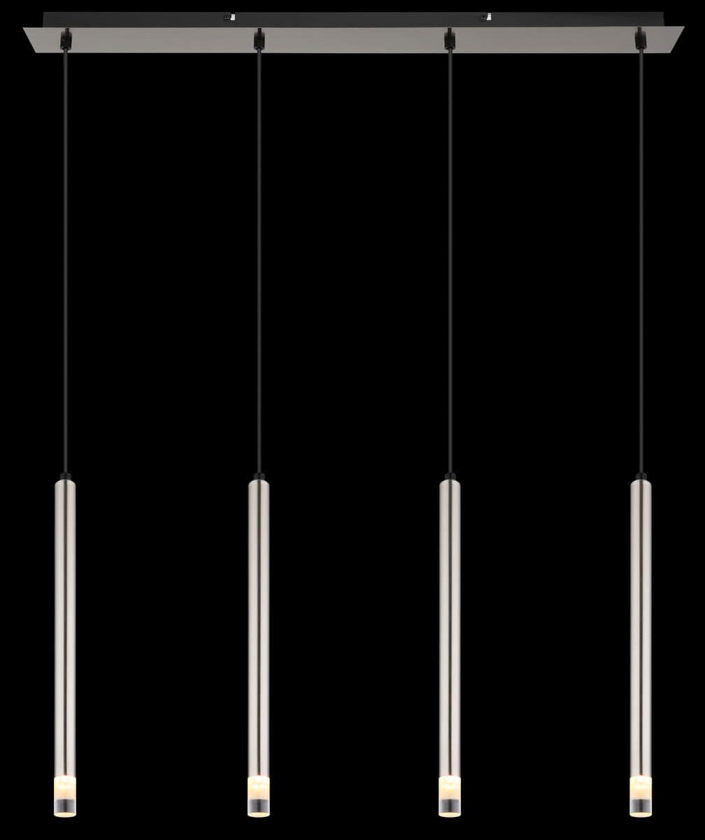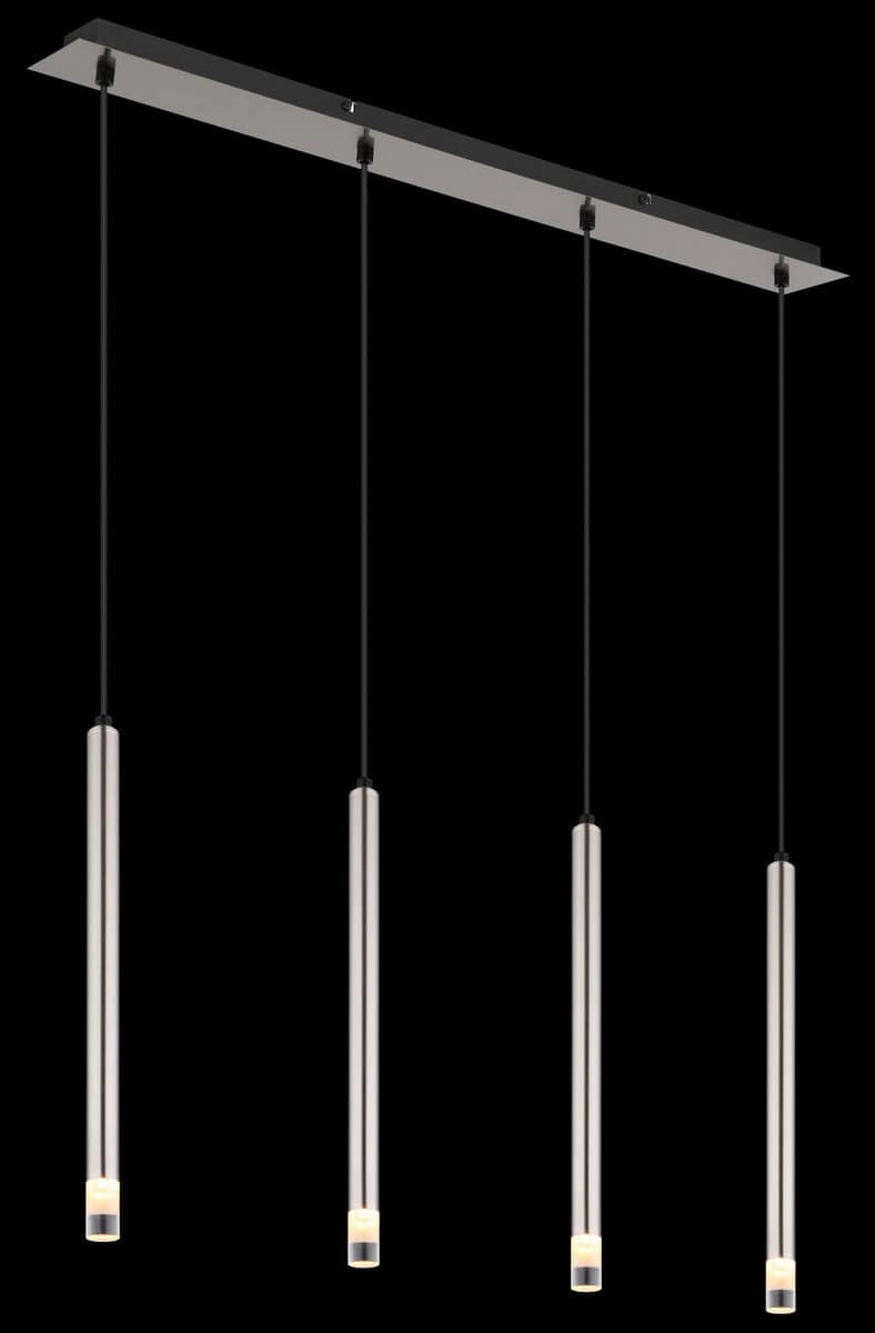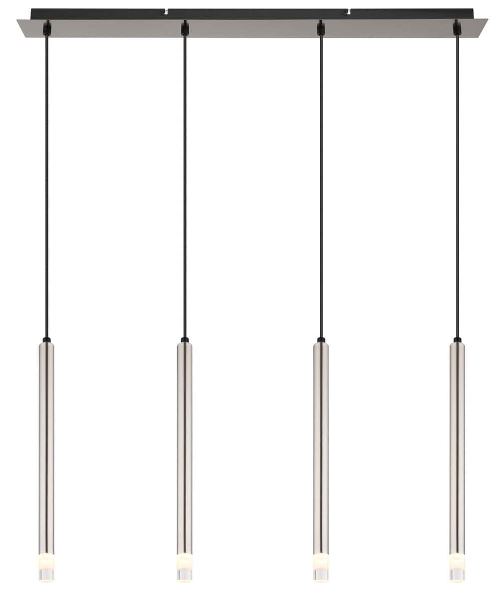 Viseća lampa RYAN očarava svojim modernim i elegantnim dizajnom, koji je idealan za savremene životne prostore. Ima ravnu šinu i četiri tanka, cilindrična sjenila, koji pružaju ravnomjerno osvjetljenje u izduženom rasporedu. Telo lampe je napravljeno od mat nikla, što joj daje stilski i bezvremenski dodir. Sjenila izrađena od mat metala i sateniranog akrila osiguravaju ugodnu raspodjelu svjetla i postavljaju diskretne akcente. RYAN je savršen izbor za upotrebu iznad dugih trpezarijskih stolova, u modernim dnevnim sobama ili u radnim prostorima. Jasan i jednostavan dizajn čini ovu visilicu svestranim elementom koji se skladno uklapa u različite stilove opremanja. Svojom visokokvalitetnom izradom i elegantnim izgledom, RYAN visilica nudi funkcionalno i estetsko rješenje rasvjete koje stvara ugodnu atmosferu u svakoj prostoriji.