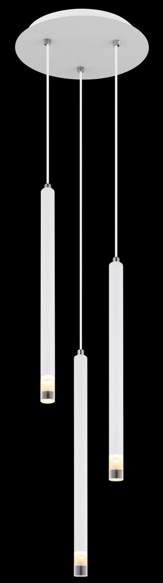 RYAN visilica je moderna i elegantna visilica sa okruglim tijelom od mat bijelog metala. Ima tri tanke, cilindrične nijanse, također izrađene od mat bijelog metala, završene satenskim prozirnim akrilom. Ova kombinacija osigurava ravnomjernu distribuciju svjetlosti i stvara ugodnu atmosferu u prostoriji. RYAN je posebno pogodan za upotrebu iznad stolova za ručavanje ili u dnevnim boravcima, gdje uvjerava svojim minimalističkim dizajnom i visokokvalitetnom izradom. Mat bela metala daje lampi bezvremenski izgled, dok prozirni akril dodaje moderan štih. Sa svojom efikasnom emisijom svjetlosti i atraktivnim dizajnom, RYAN visilica je idealan izbor za svaku prostoriju kojoj je potrebno elegantno i funkcionalno rješenje za rasvjetu.