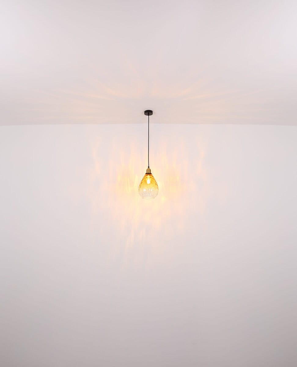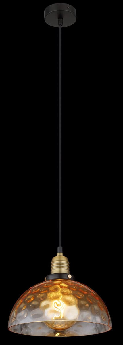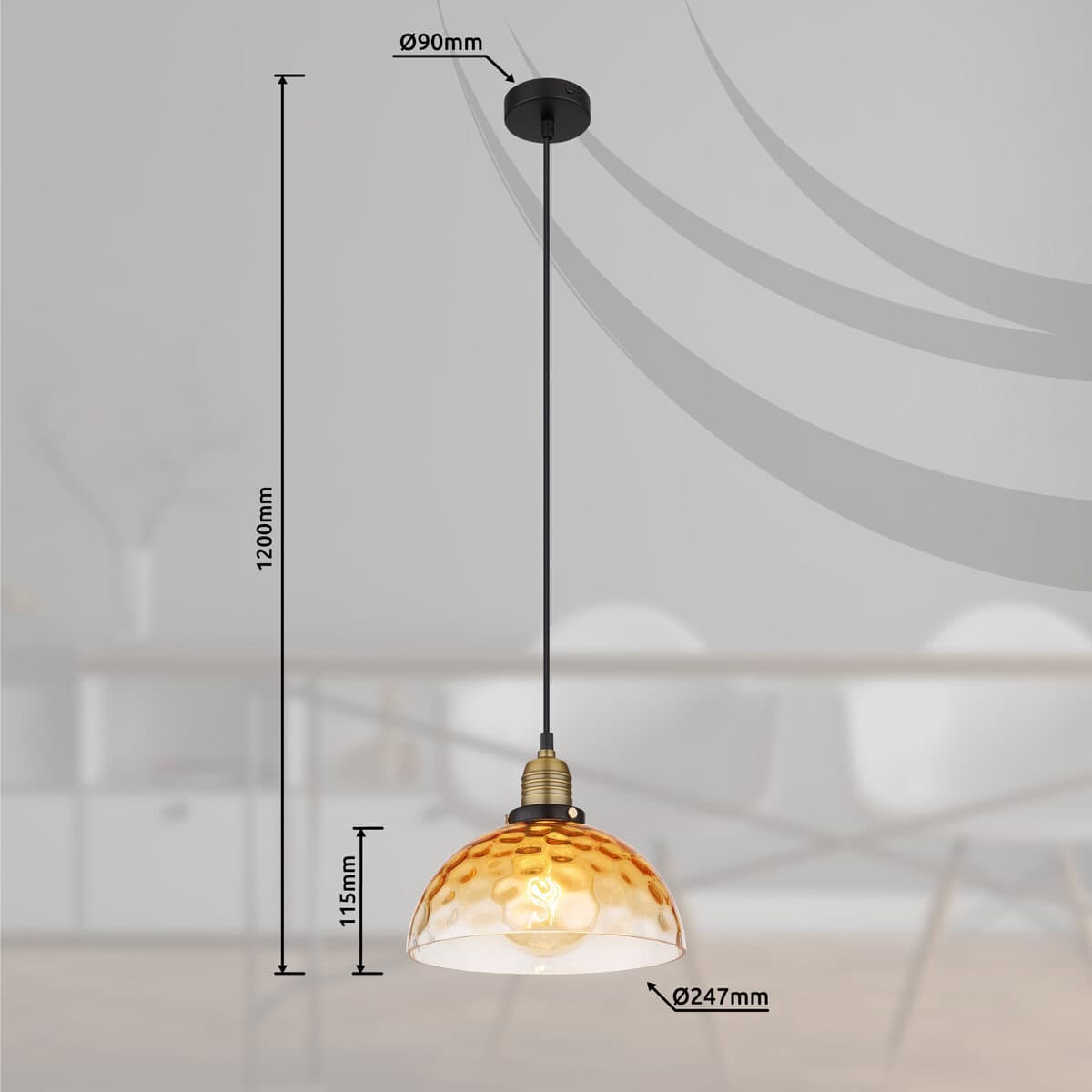 Doživite fascinantnu igru svjetla i sjene sa ovom visećom lampom. Ova jedinstvena lampa impresionira svojim elegantnim dizajnom od mat crnog metala i prozirnog jantarnog stakla. Naglasak na mesingu mat daje lampi dašak sofisticiranosti. Sa prečnikom od 250 mm i visinom od 1200 mm, postavlja impresivne akcente u Vašu sobu. Crni PVC kabel se skladno uklapa u cjelokupnu sliku. E27 utičnica vam omogućava da sami odredite boju svjetla i svjetlinu do maksimalne snage od 60 vati. Neka vaš dom zablista i uživajte u toploj i prijatnoj atmosferi.