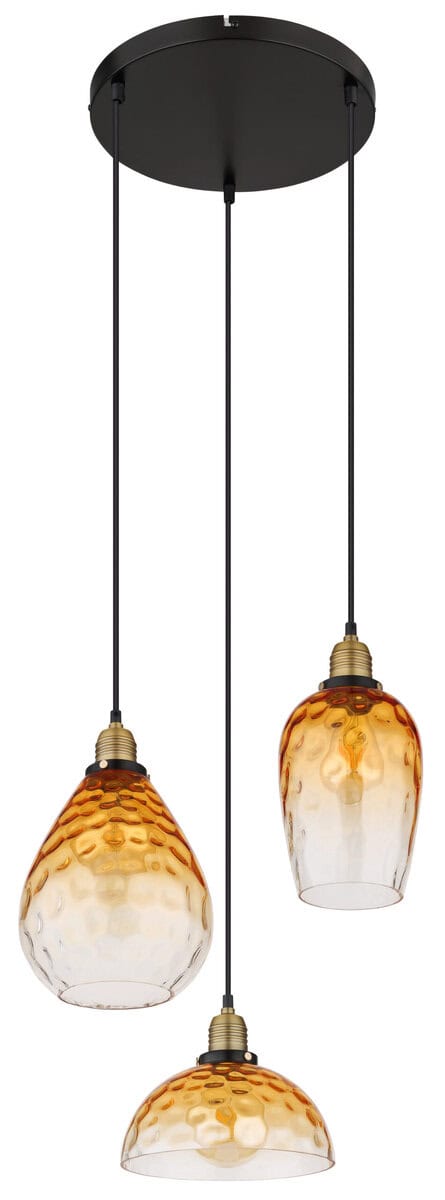 Uronite u očaravajući svijet ove viseće lampe. Sa svojim elegantnim dizajnom od mat crnog metala i prozirnog jantarnog stakla, privući će oči u svakoj prostoriji. Viseća lampa vešto kombinuje moderan dizajn sa daškom vintage šarma. Mat metal u boji mesinga daje mu elegantan dodir, dok PVC crni kabl daje elegantan izgled. Sa prečnikom od 460 mm i visinom od 1500 mm, ova svetiljka stvara impresivnu prisutnost. Različiti prečnici stakla od 15 cm, 21 cm i 25 cm daju lampi dinamičan izgled. E27 utičnice vam omogućavaju da sami odredite boju svjetla i svjetlinu do maksimalne snage od 60 vati. Uronite svoj prostor u toplo, privlačno svjetlo.