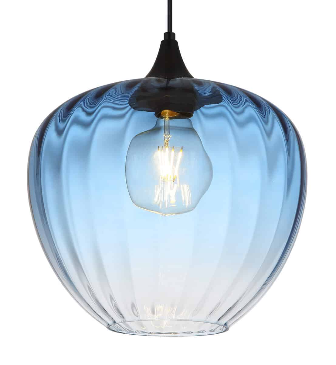 Viseća lampa SANDER očarava svojim modernim dizajnom i elegantnim detaljima. Okrugla, lukovičasta sjenilo od plavog stakla sa žljebovima i gradijentom boja stvara fascinantan svjetlosni efekat. Mat crno metalno kućište daje lampi savremeni štih. Idealna za elegantne sobe, utičnica E27 omogućava fleksibilan izbor izvora svjetlosti.