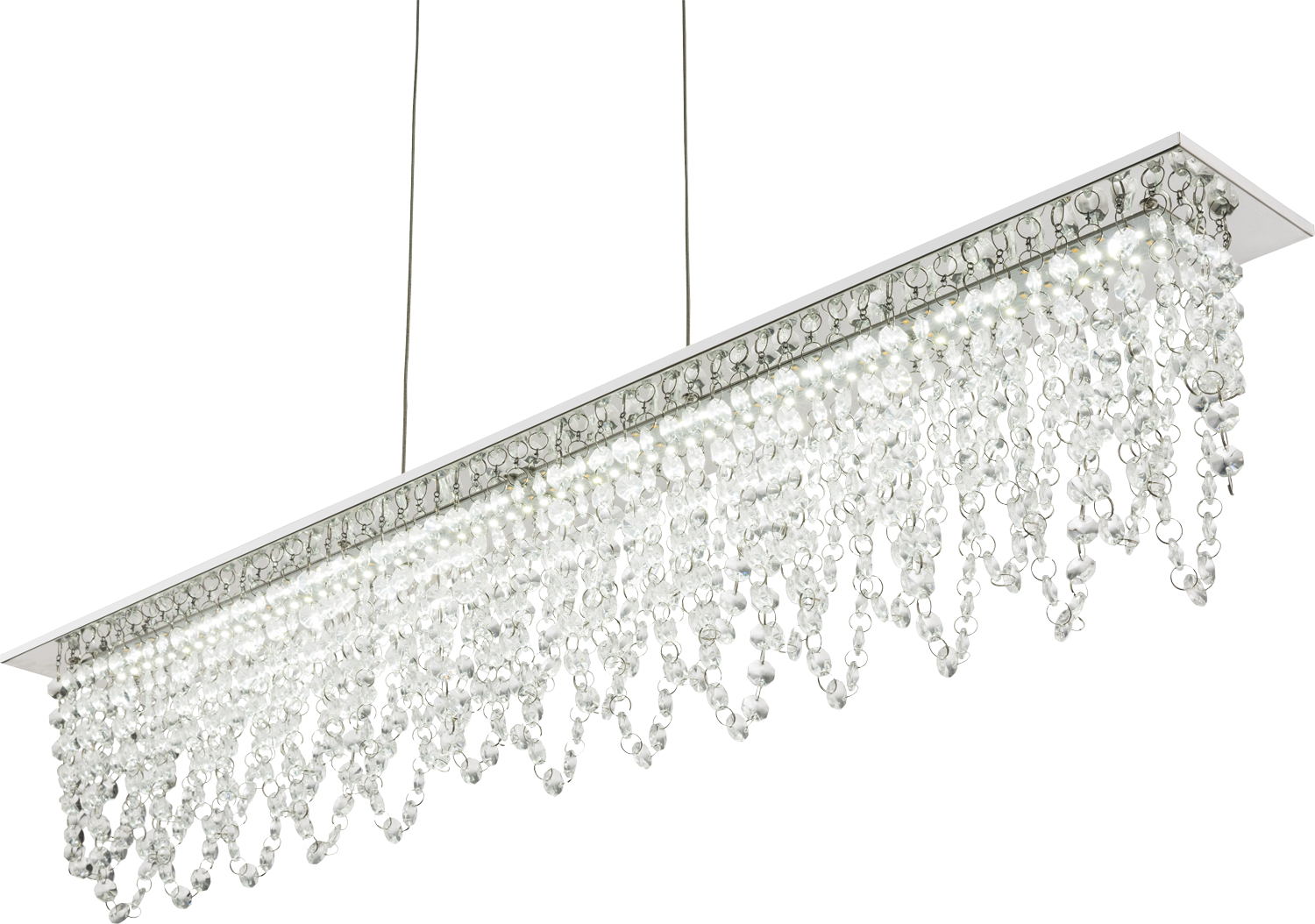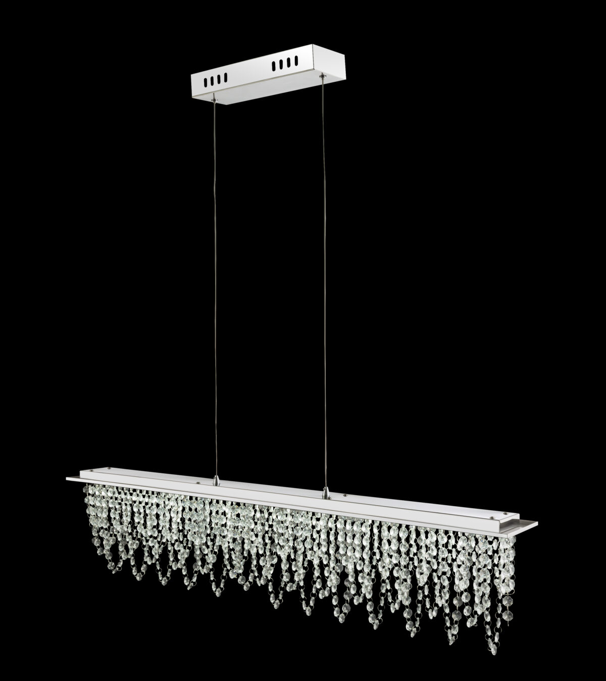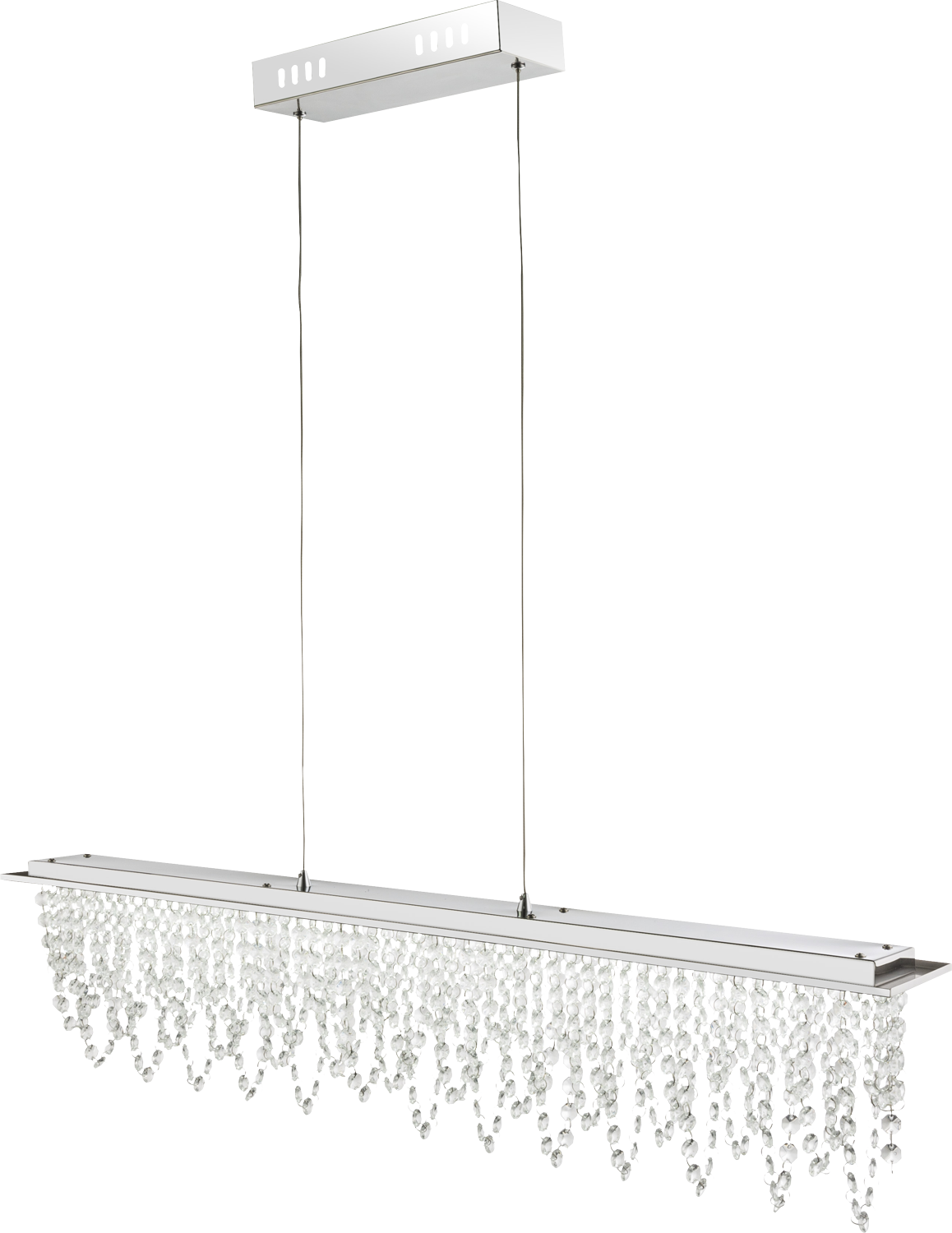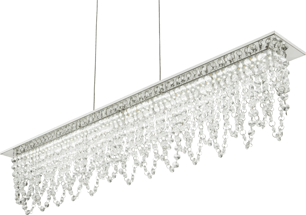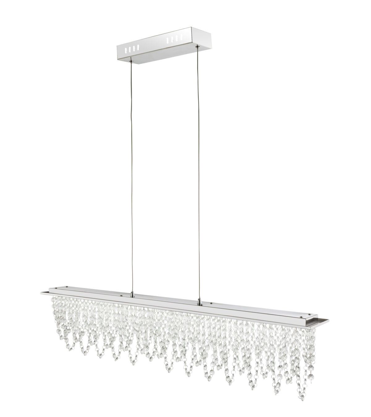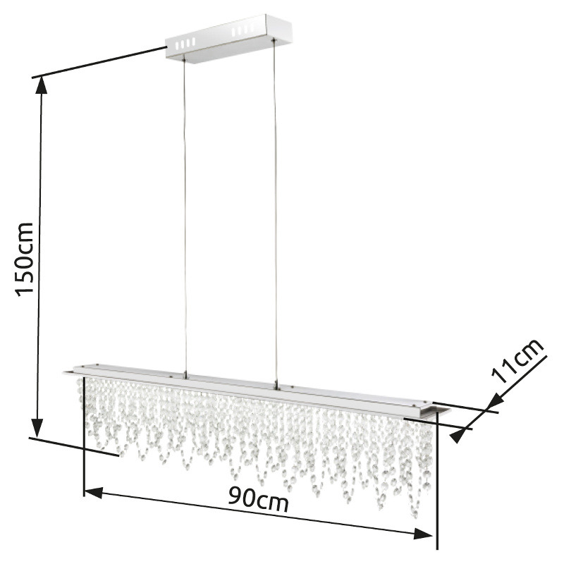 Ovu sjajnu viseću lampu, iz serije Scala, odlikuje stilski dizajn, kao i visoka kvaliteta izrade. U proizvodnji ovog proizvoda korišteni su hromirani elementi, staklo i bijeli kristali. Svjetlosna šipka dužine 90 cm, koja visi sa odgovarajuće stropne ploče i ukrašena je kristalima, može se prigušiti do maksimalno 1700 lumena i može mijenjati različite boje svjetla pomoću daljinskog upravljača. Od toplo bijelog 3000K, preko 4500K neutralnog bijelog svjetla, do 6000K dnevne svjetlosti, ovaj model vam stoji na raspolaganju, ovisno o vašem raspoloženju i potrebama.