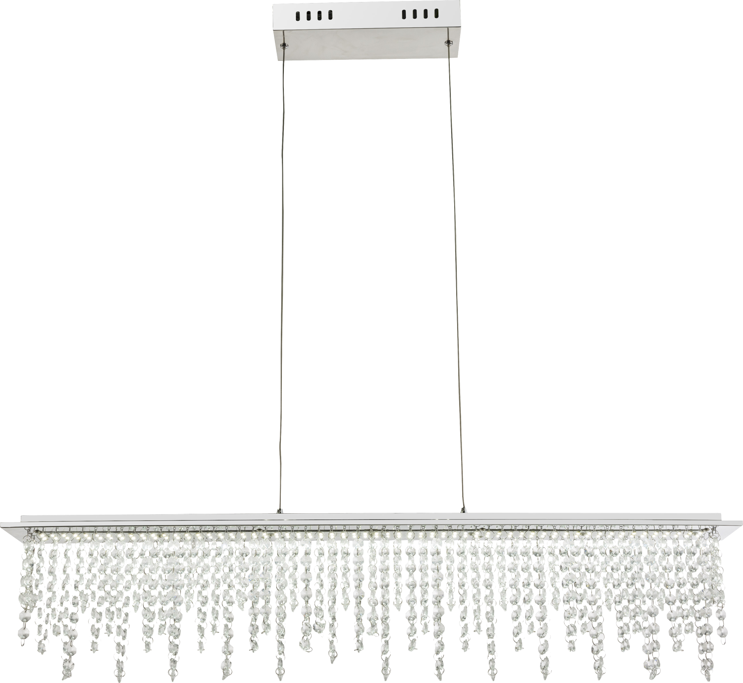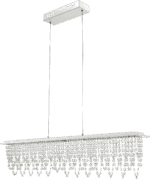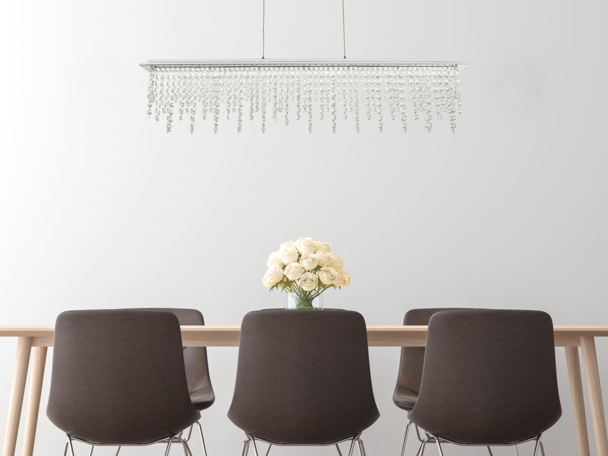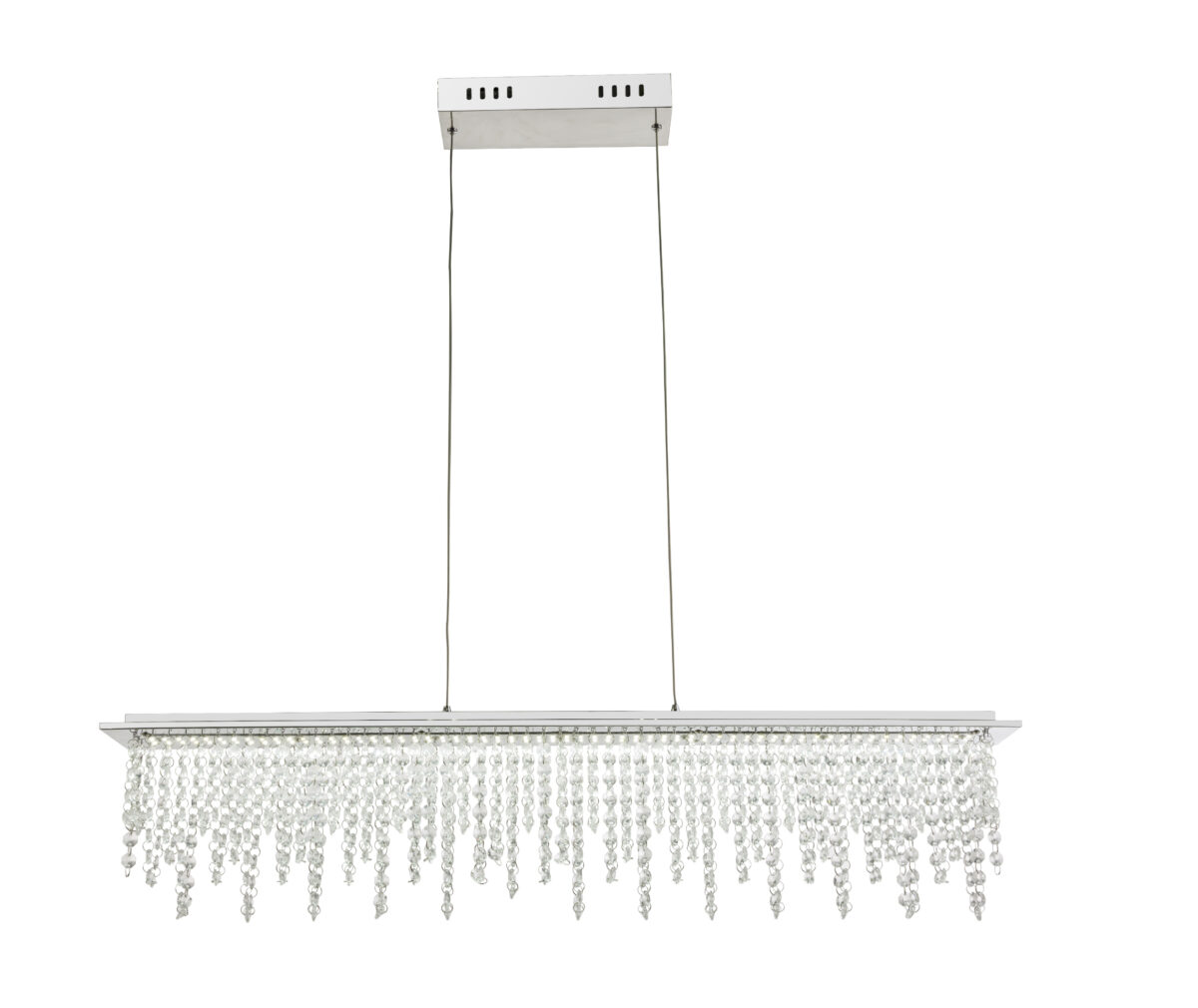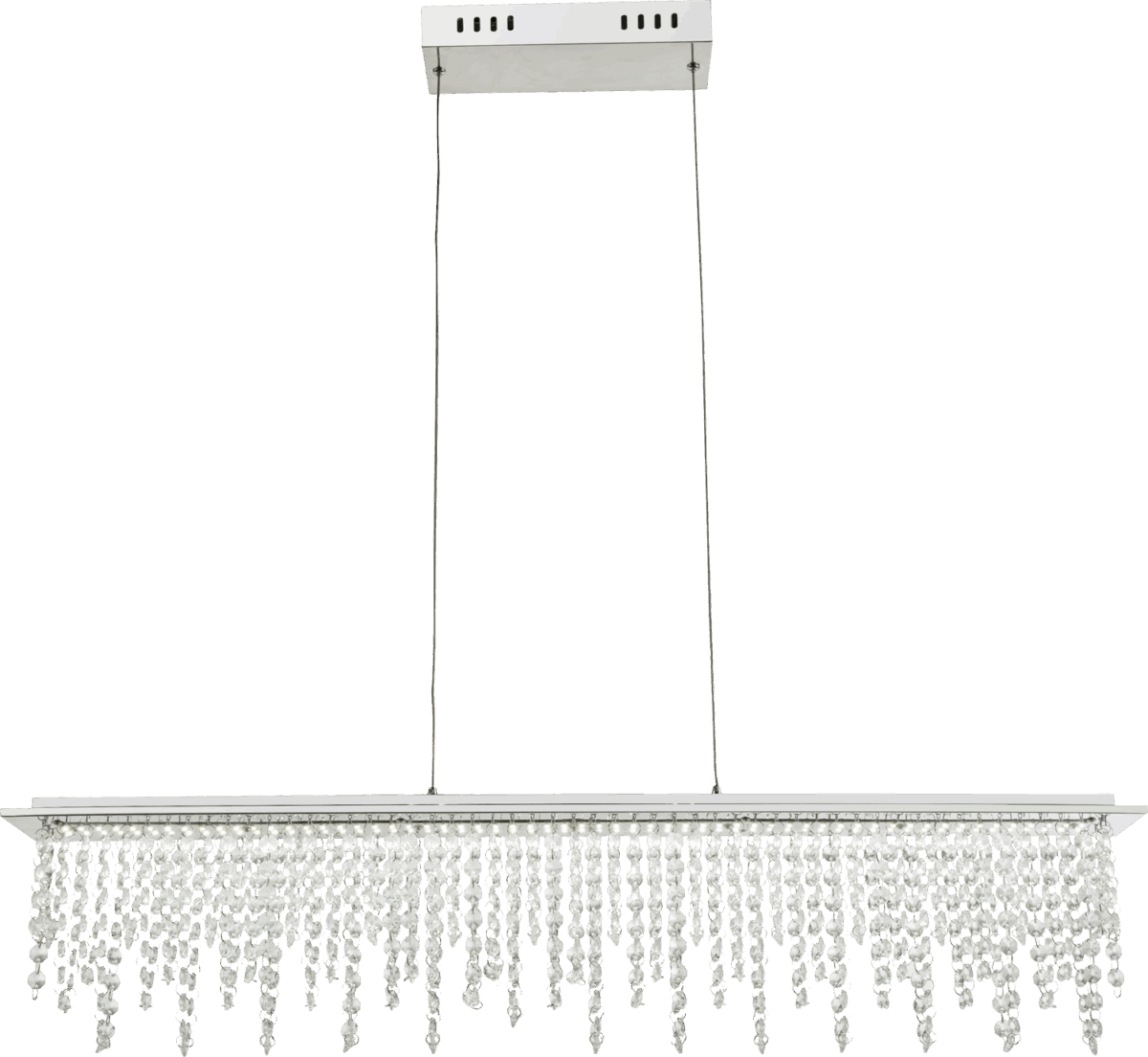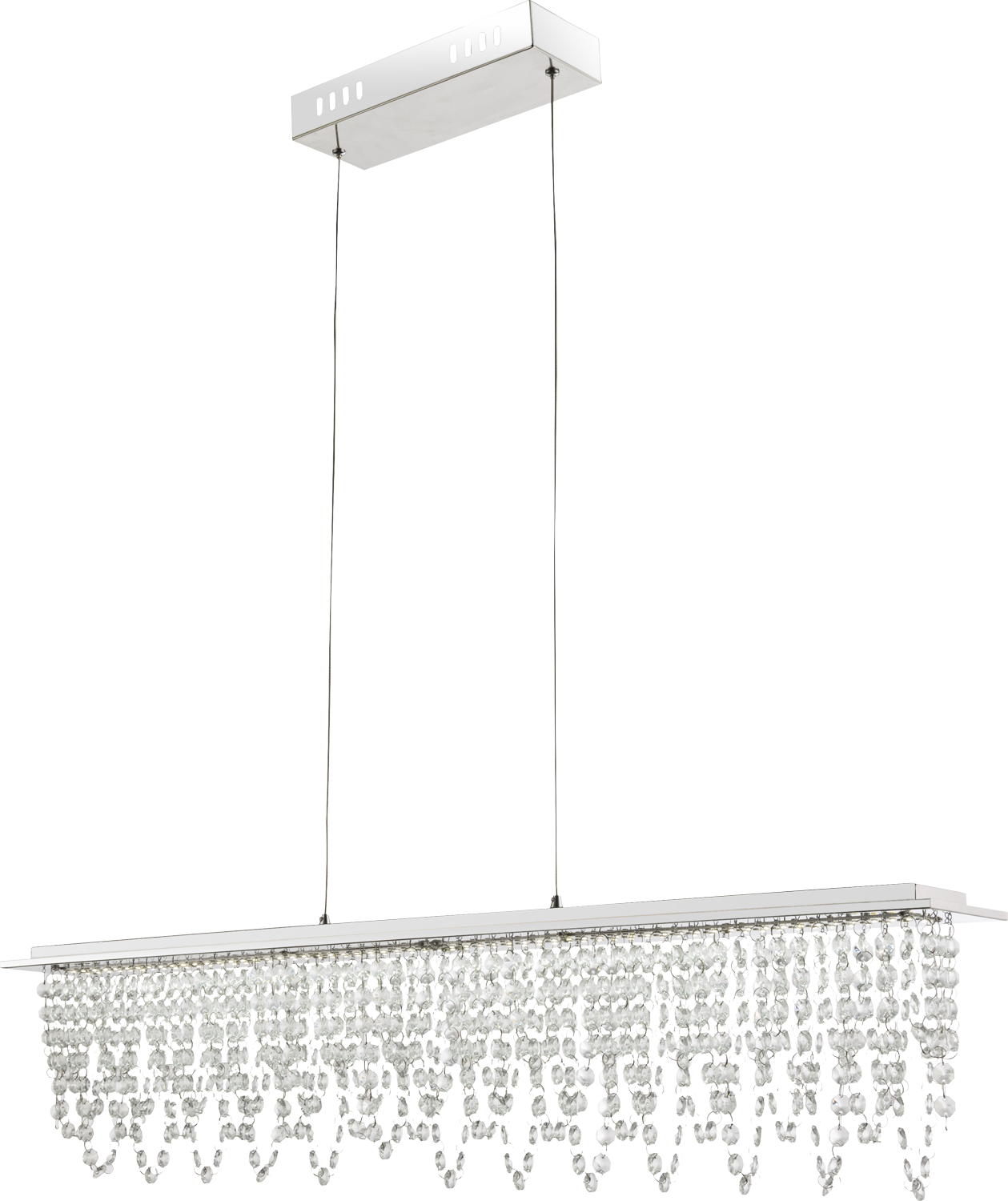 Ovu sjajnu viseću lampu, iz serije Scala, odlikuje stilski dizajn, kao i visoka kvaliteta izrade. U proizvodnji ovog proizvoda korišteni su hromirani elementi, staklo i bijeli kristali. Svjetlosna šipka dužine 90 cm, koja visi sa odgovarajuće stropne ploče i ukrašena je kristalima, može se prigušiti do maksimalno 1700 lumena i može mijenjati različite boje svjetla pomoću daljinskog upravljača. Od toplo bijelog 3000K, preko 4500K neutralnog bijelog svjetla, do 6000K dnevne svjetlosti, ovaj model vam stoji na raspolaganju, ovisno o vašem raspoloženju i potrebama.