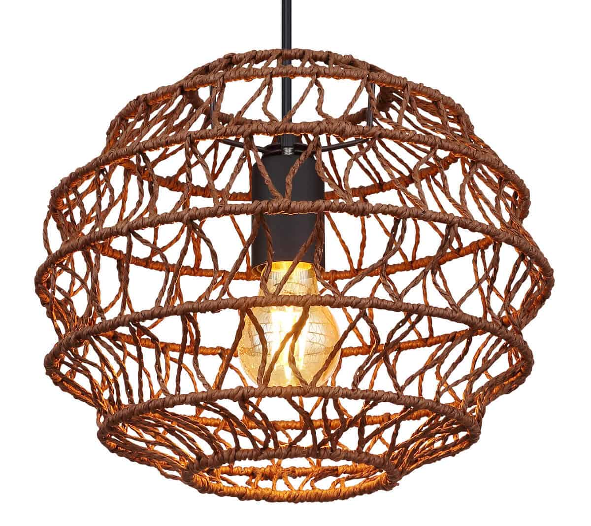 Ova oblikovana viseća lampa uvjerava sjajnim dizajnom i postaje središte svake sobe vaše sobe. Crni kabel dužine 1,2 m vodi od okruglog plafonskog priključka do utičnice E27, koja je umotana u sklopivi tamnosmeđi kišobran (Ø 29 cm) od papira. E27 utičnica vam daje mogućnost određivanja boje svjetla i svjetline do maksimalne snage od 15 vati. Zbog dugovečnosti i uštede energije preporučujemo LED sijalice.