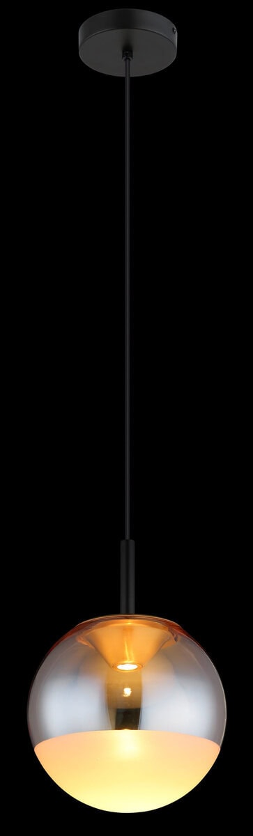 Viseća lampa SEVERIN – elegantan dizajn za vaš dom Viseća lampa SEVERIN impresionira svojim modernim dizajnom, koji kombinuje staklenu kuglu sa satenskom završnom obradom boje ćilibara i metalno kućište u mat crnoj boji. Sjenilo izrađeno od aluminija u boji mesinga daje svjetiljci elegantan izgled koji se savršeno uklapa sa mekim svjetlom LED tehnologije. Sa prečnikom od 250 mm, lampa je idealna za manje prostorije ili kao akcentno osvetljenje iznad trpezarijskih stolova, kuhinjskih ostrva ili u hodnicima. Integrisani LED nudi ugodan lumenski izlaz od 400 lumena i temperaturu boje od 3000 K, što pruža ugodno, toplo osvjetljenje. Viseća lampa SEVERIN je savršen izbor za sve koji traže elegantno i funkcionalno rješenje rasvjete koje će uljepšati njihov dom i stvoriti atmosferu dobrodošlice.