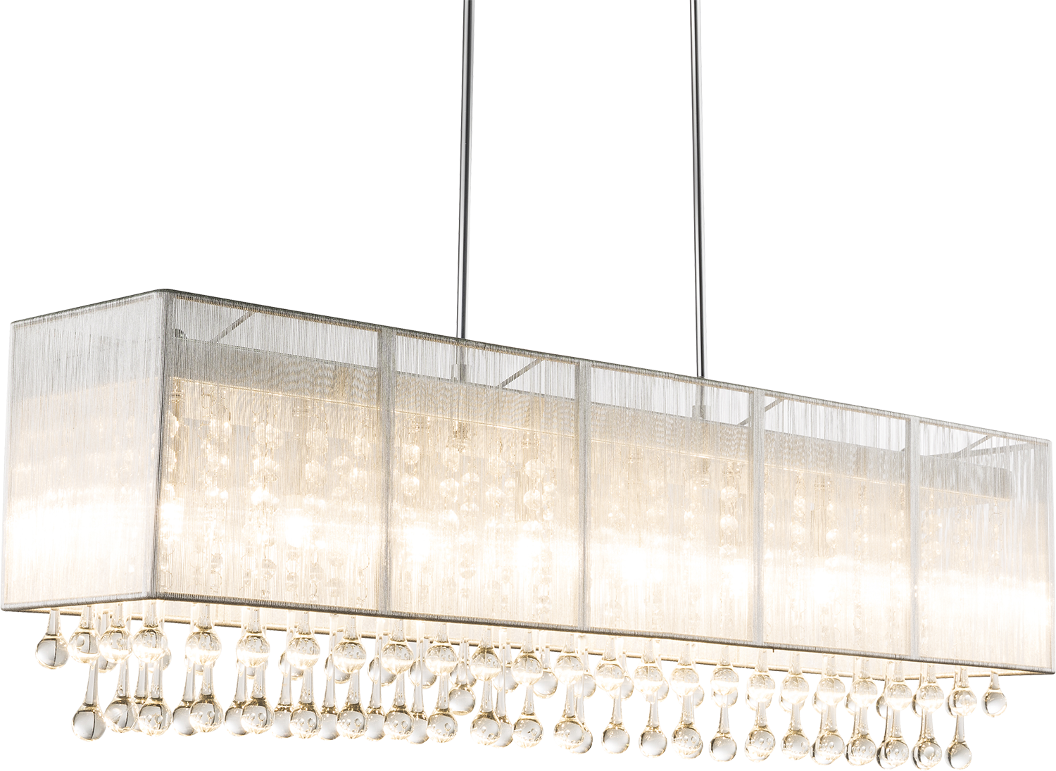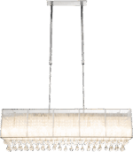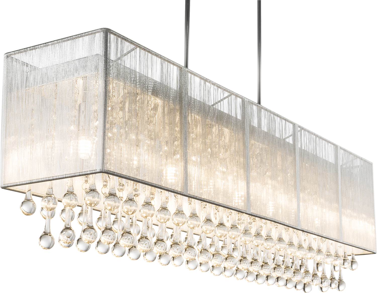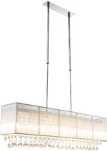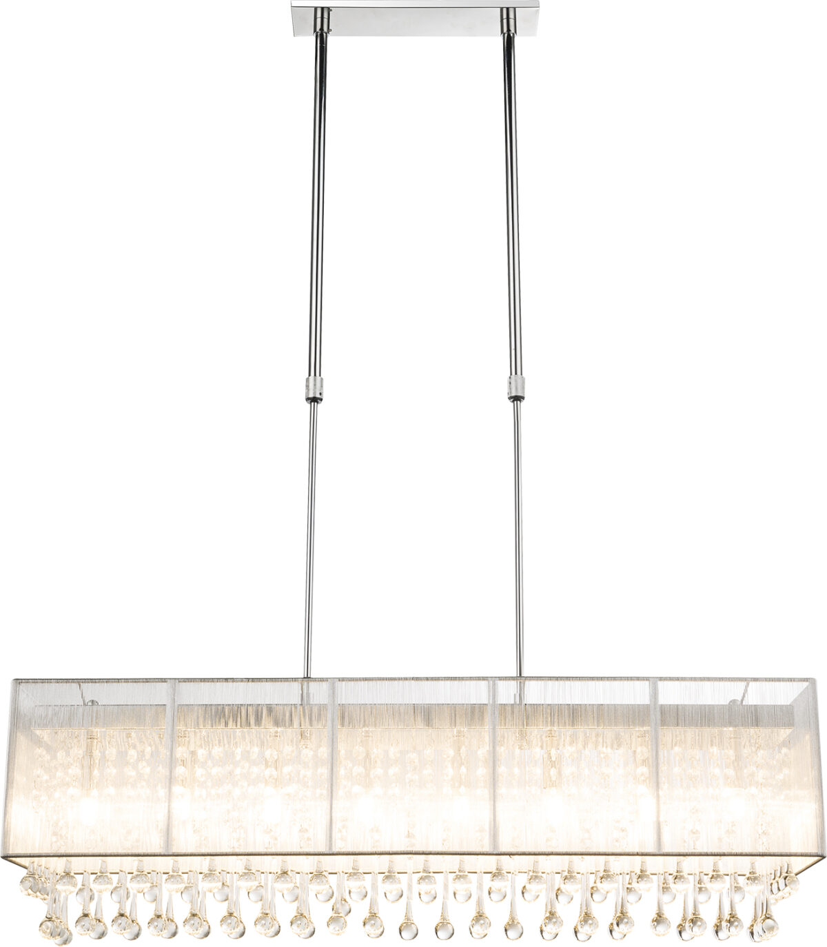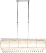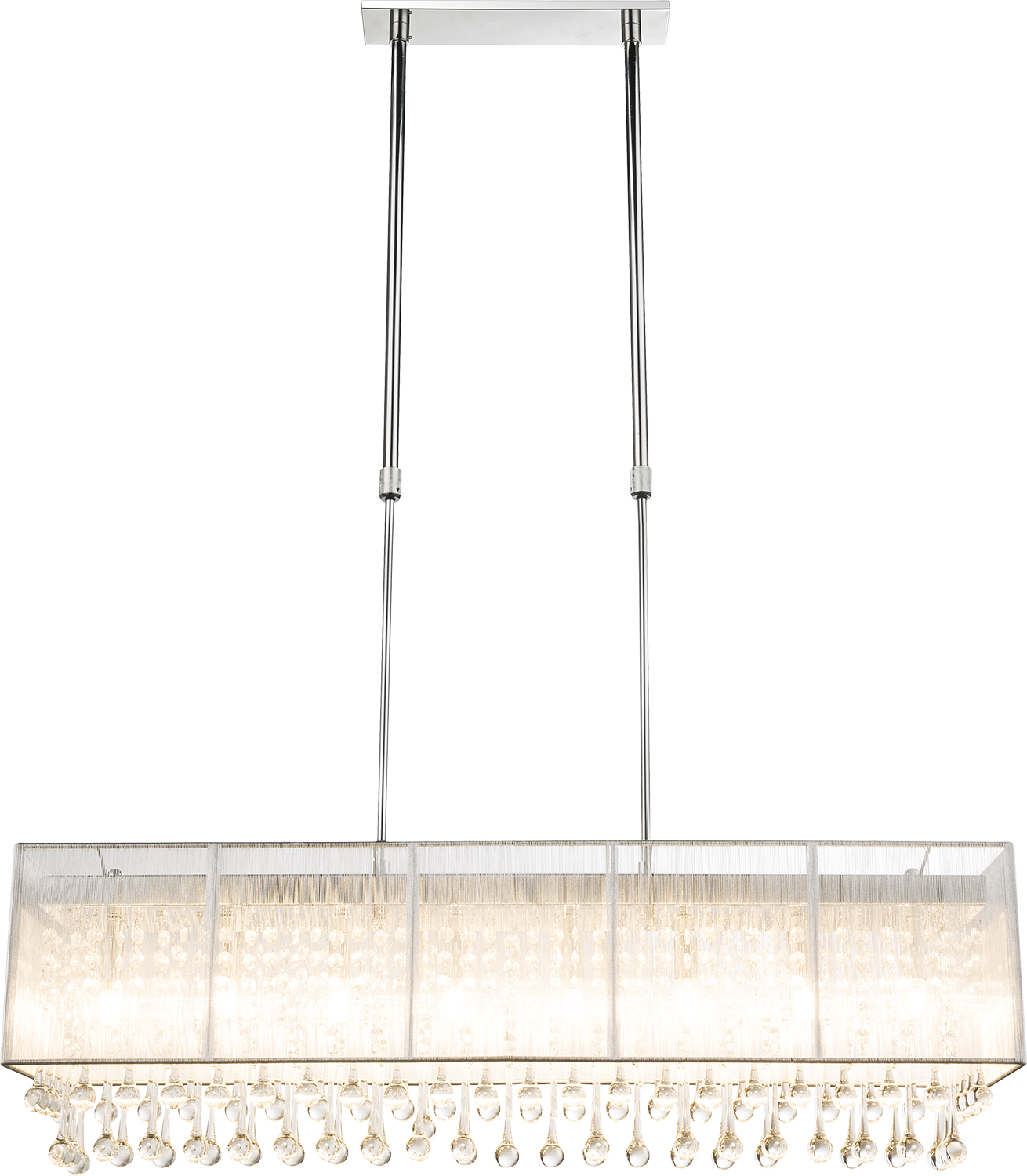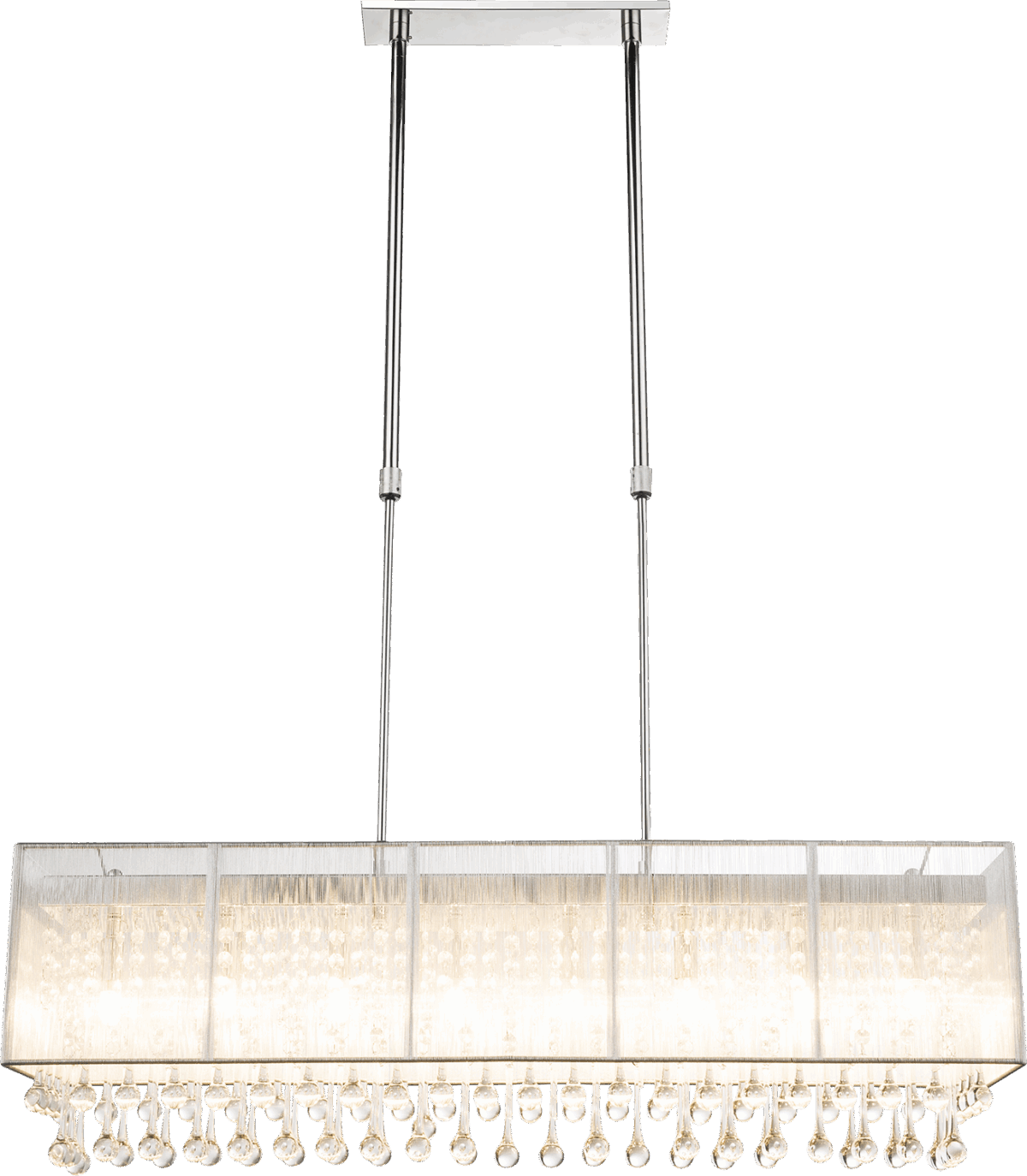 Uz ovu pompeznu viseću lampu iz serije lampi Sierra postavljaju se blistavi akcenti. Kromirano tijelo lampe dužine 90 cm presvučeno je svilom u srebrnoj metalik i obješeno prozirnim, svjetlucavim staklenim kristalima. To ga čini privlačnim u svakom životnom prostoru. Ova plafonska lampa je podesiva po visini zahvaljujući svom inteligentnom lepom hromiranom ovjesu. Lampa takođe pruža prijatno toplo belo svetlo od 3000K. Alternativno, ista serija proizvoda nudi vam izbor sličnih plafonskih lampi.