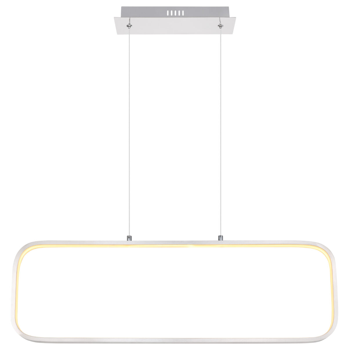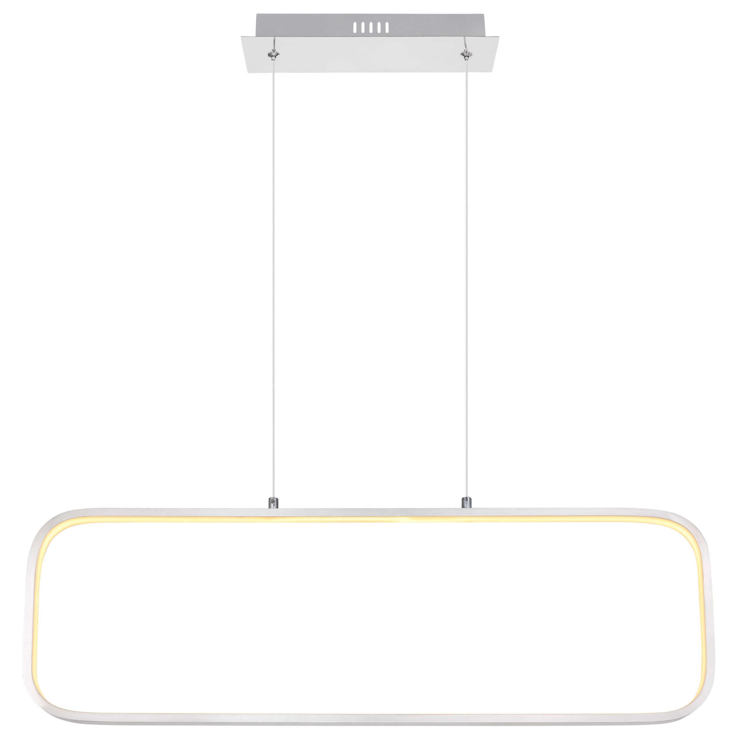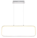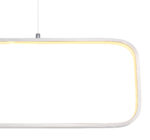 Ova izuzetno moderna visilica (80x10cm) iz Silla serije impresionira svojim prekrasnim dizajnom. Od pravougaonog plafonskog nosača u srebrnoj boji, dva bijela kabla maksimalne visine 1,2 m idu do zaobljenog pravokutnog bijelog okvira s integriranom LED sijalicom koja ugodno sija toplom bijelom svjetlošću od 3000 Kelvina i tako vašim sobama nudi sjajnu atmosferu.