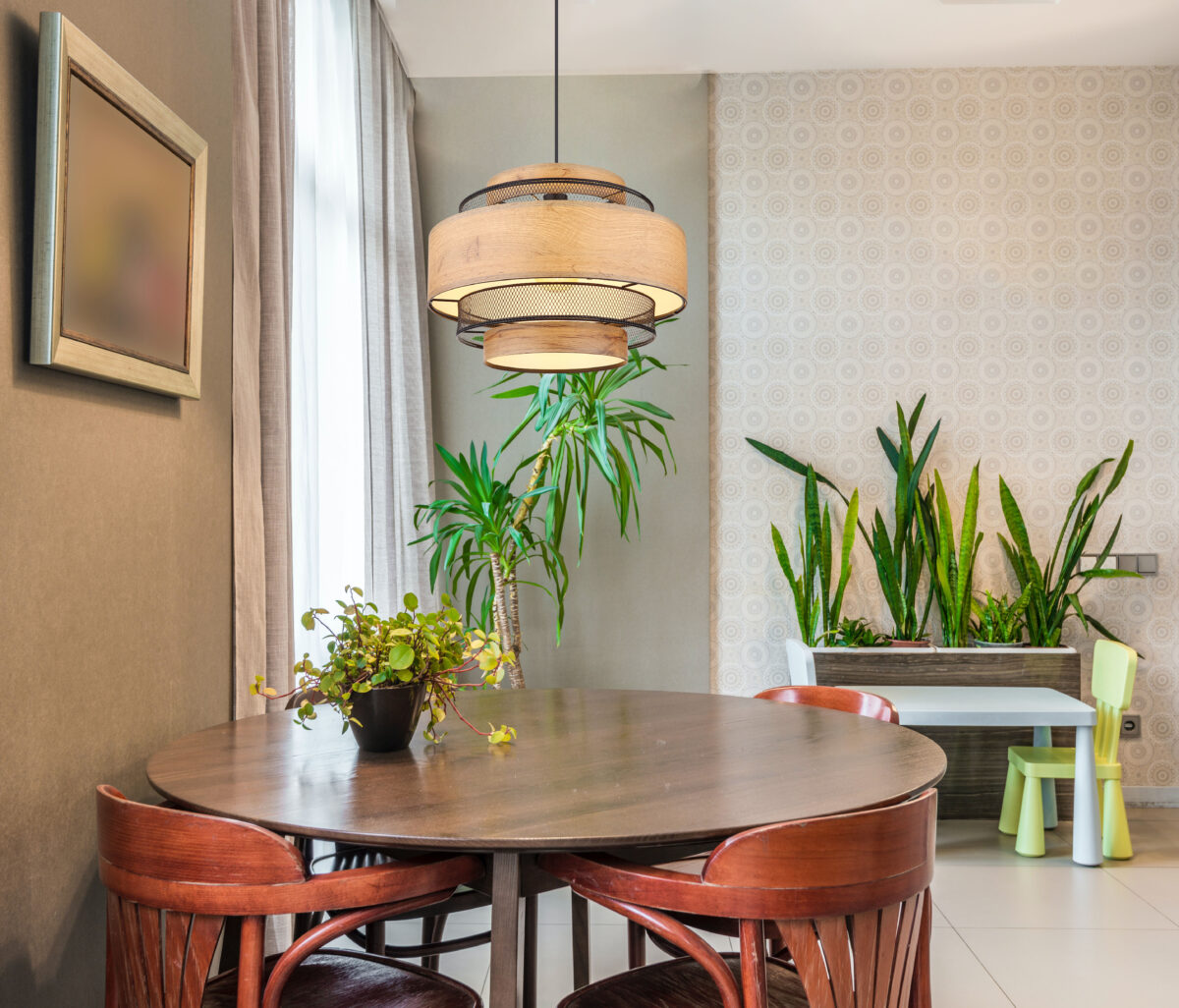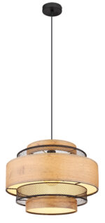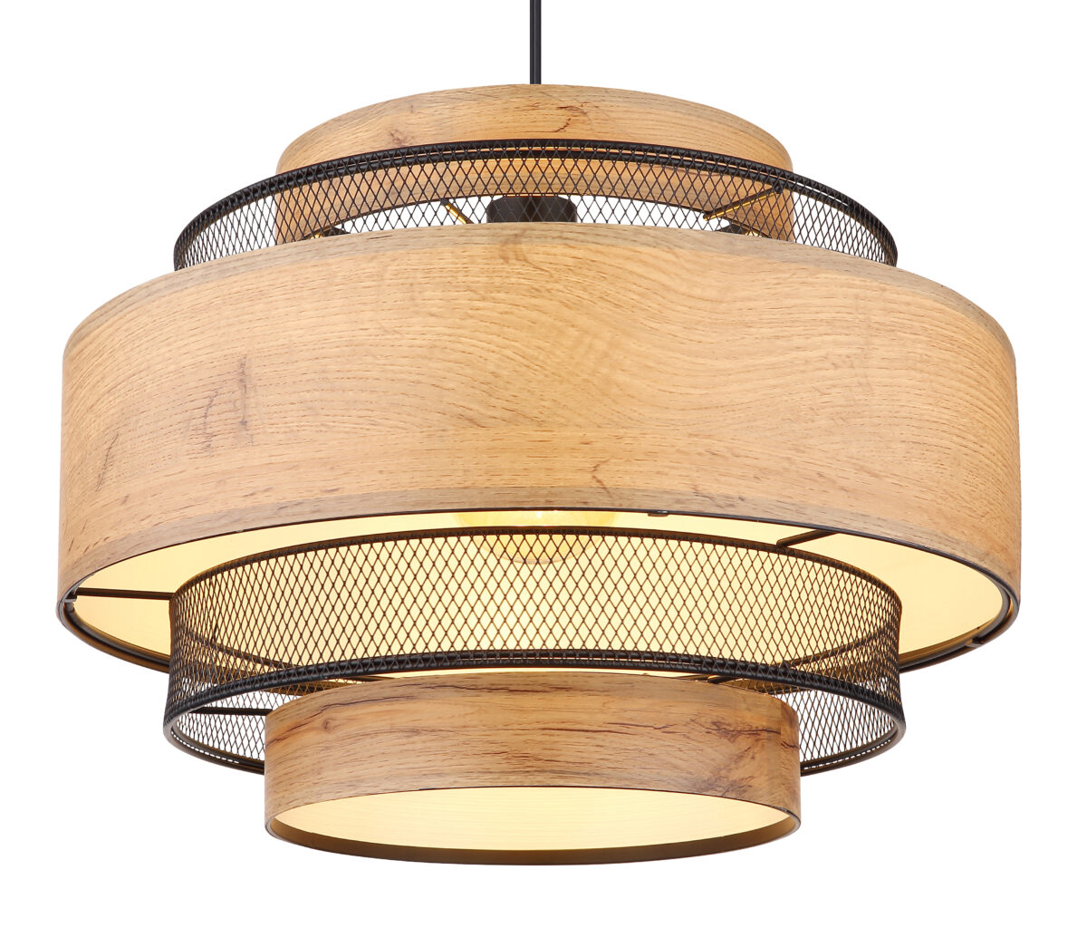 Ova sjajna viseća lampa inspiriše svojim jednostavnim dizajnom. Utičnica E27 visi na crnom kablu do 1,2m od plafona. Utičnica E27 je opremljena prelijepom sjenilom od metalnih rešetki i ukrasa u izgledu drveta (Ø45cm). Omogućavaju vam da odredite boju svjetla i svjetlinu do maksimalne snage od 60 vati.