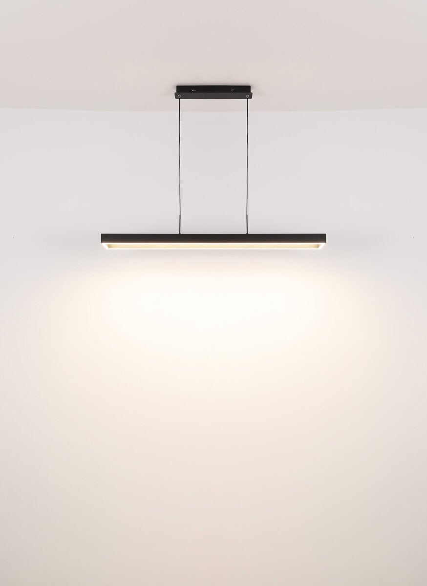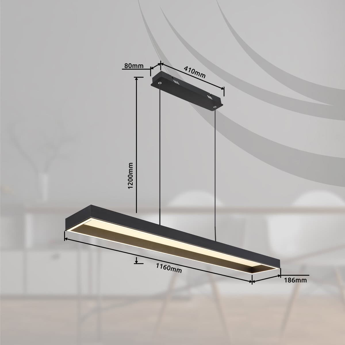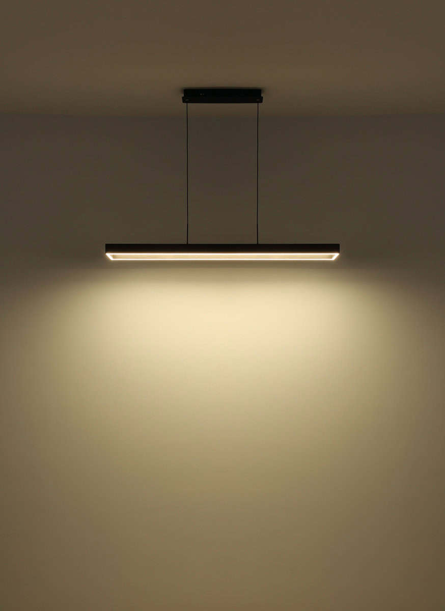 Moderna visilica PENDANT LAMP METAL BLACK MATT u obliku pravougaone šipke savršeno je rješenje za rasvjetu za vaš dom. Tijelo je izrađeno od crnog mat metala, a sjenilo je od crnog mat metala, antracit brušenog aluminija i opal akrila, što lampi daje elegantan izgled. Opremljena snažnom LED diodom sa mogućnošću zatamnjivanja i daljinskim upravljačem, viseća lampa nudi širok spektar mogućnosti osvjetljenja. Možete podesiti svjetlinu u nekoliko nivoa preko zidnog prekidača, popraviti boje, pa čak i koristiti funkciju memorije. Sa dužinom od 1160 mm, širinom od 186 mm i snagom od 5492 lumena, svetiljka obezbeđuje dovoljno svetla u vašoj prostoriji. Podesivi CCT od 2700K do 6500K vam omogućava da prilagodite boju svjetla kako želite. Ova viseća lampa ne nudi samo praktično rešenje za osvetljenje, već i moderan dizajn za vaš dom.