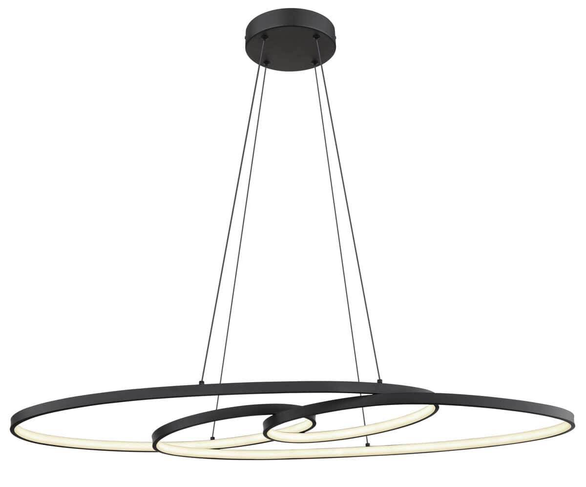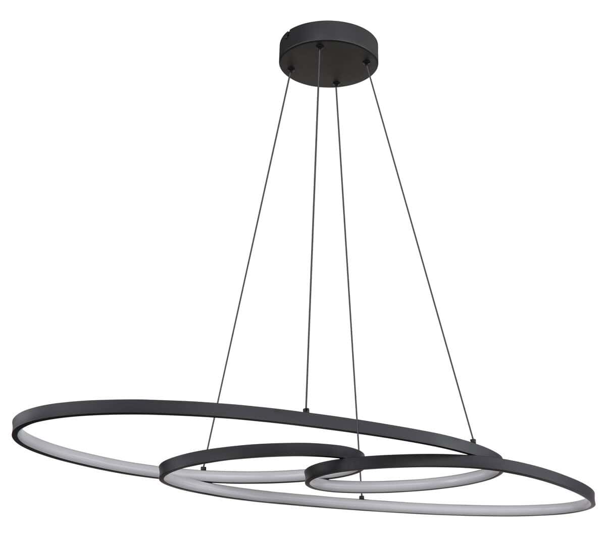 Moderna privjesna lampa ovalnog oblika sa dvije petlje stilski je dodatak vašem domu. Tijelo ove viseće lampe je izrađeno od mat crnog metala, dok je sjenilo izrađeno od crnog mat aluminija i opal plastike. Zidni prekidač vam omogućava da podesite osvetljenost u nekoliko nivoa i fiksirate boje kako biste stvorili željenu atmosferu. Viseća lampa takođe ima zgodnu memorijsku funkciju koja čuva vaša poslednja podešavanja. Sa dužinom od 1000 mm i širinom od 360 mm, snagom od 40 W i snagom od 1880 lumena, ova visilica nudi dovoljno jakog svjetla. Temperatura boje je podesiva od 2700K do 6500K kako bi se stvorilo pravo svjetlo za svako raspoloženje.