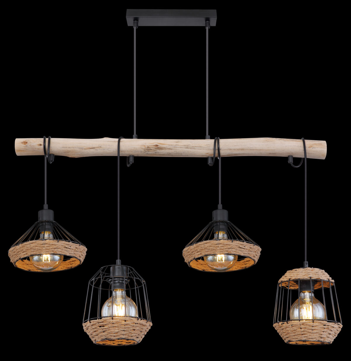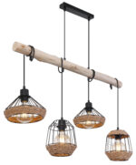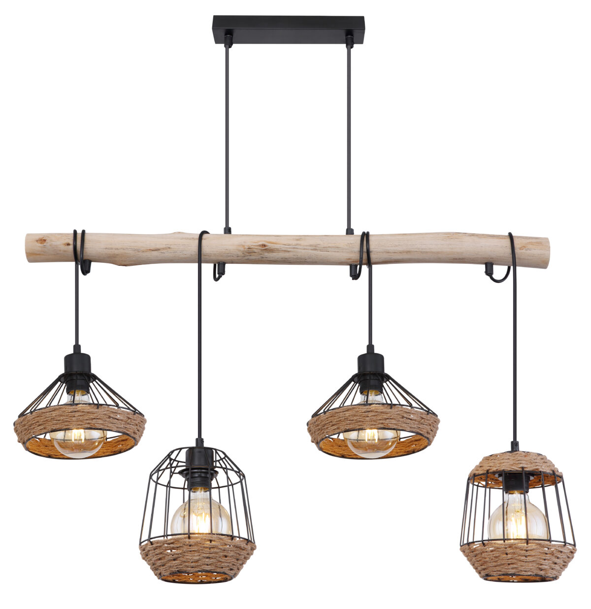 Ova viseća lampa Surri dužine 105 cm odlična je za postavljanje iznad trpezarijskog stola, koji tada doživljava ujednačeno osvetljenje. Visina viseće lampe može se podesiti do 120 cm tokom ugradnje zahvaljujući kablovima omotanim oko drvene šipke. Osim toga, ima četiri metalne šipke različitog oblika, crno-mat, koje su na nekim mjestima omotane konopcem od konoplje. Možete ih opremiti sa E27 sijalicama po vašem izboru, što vam daje mogućnost da individualno odredite boju svjetla i svjetlinu. Sa Surri visećom lampom možete postaviti elegantne akcente u svoj interijer i upotpuniti cjelokupnu sliku.