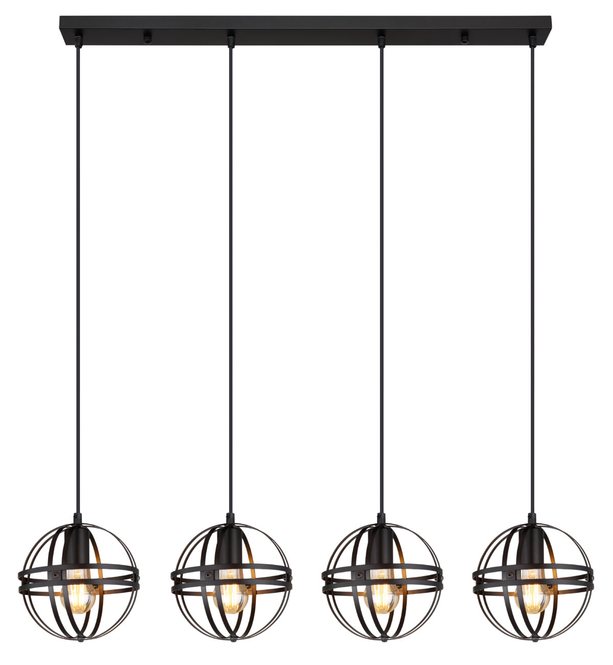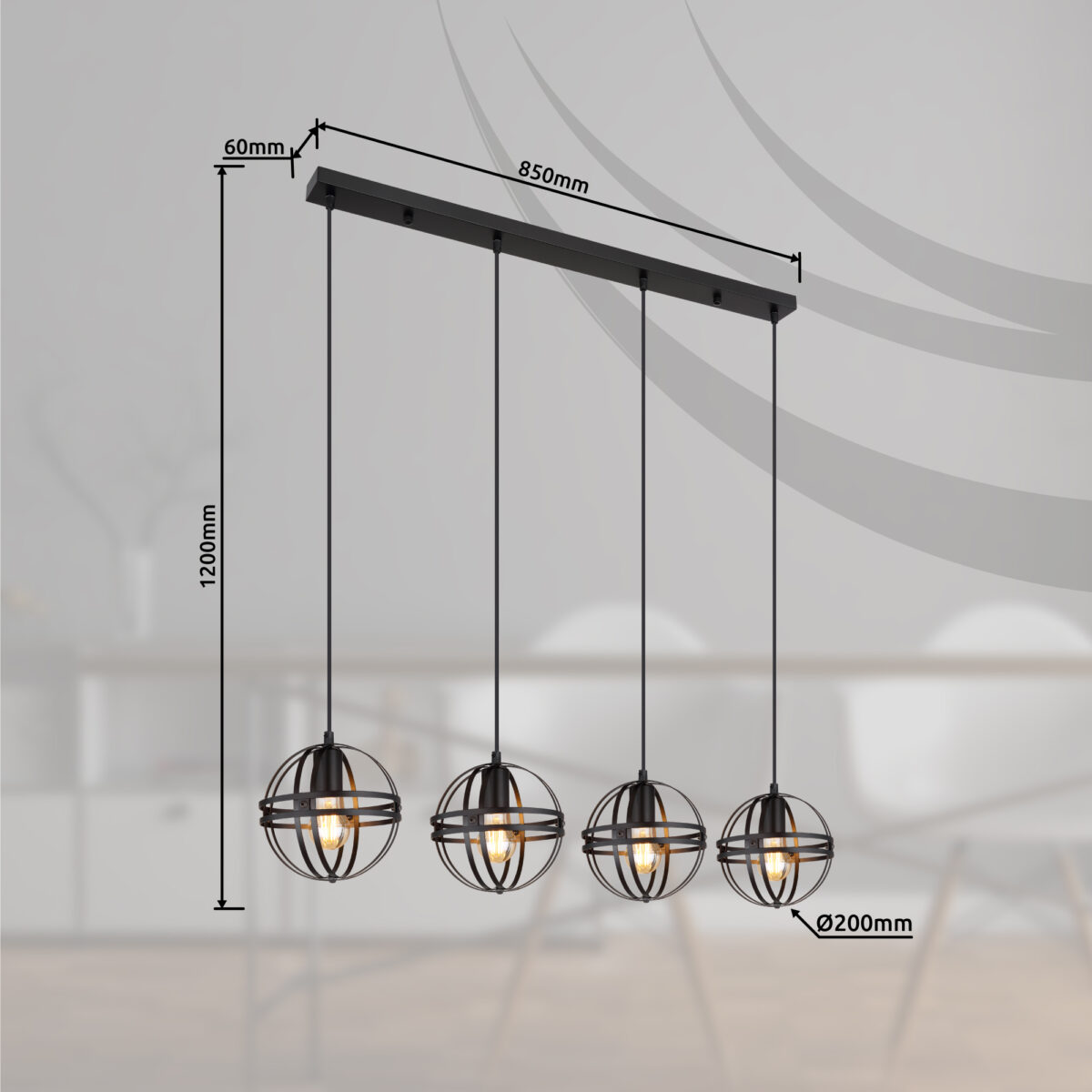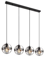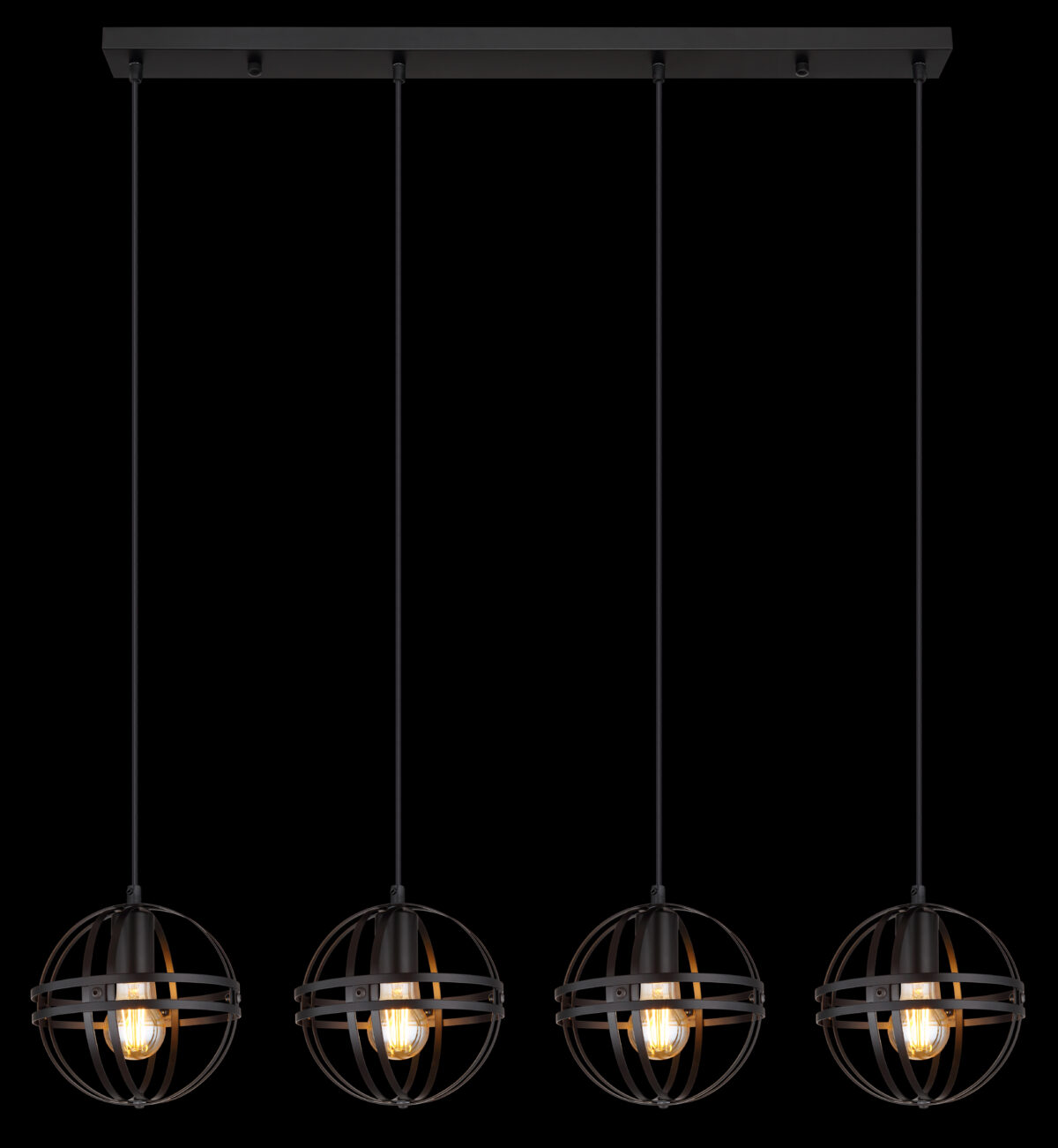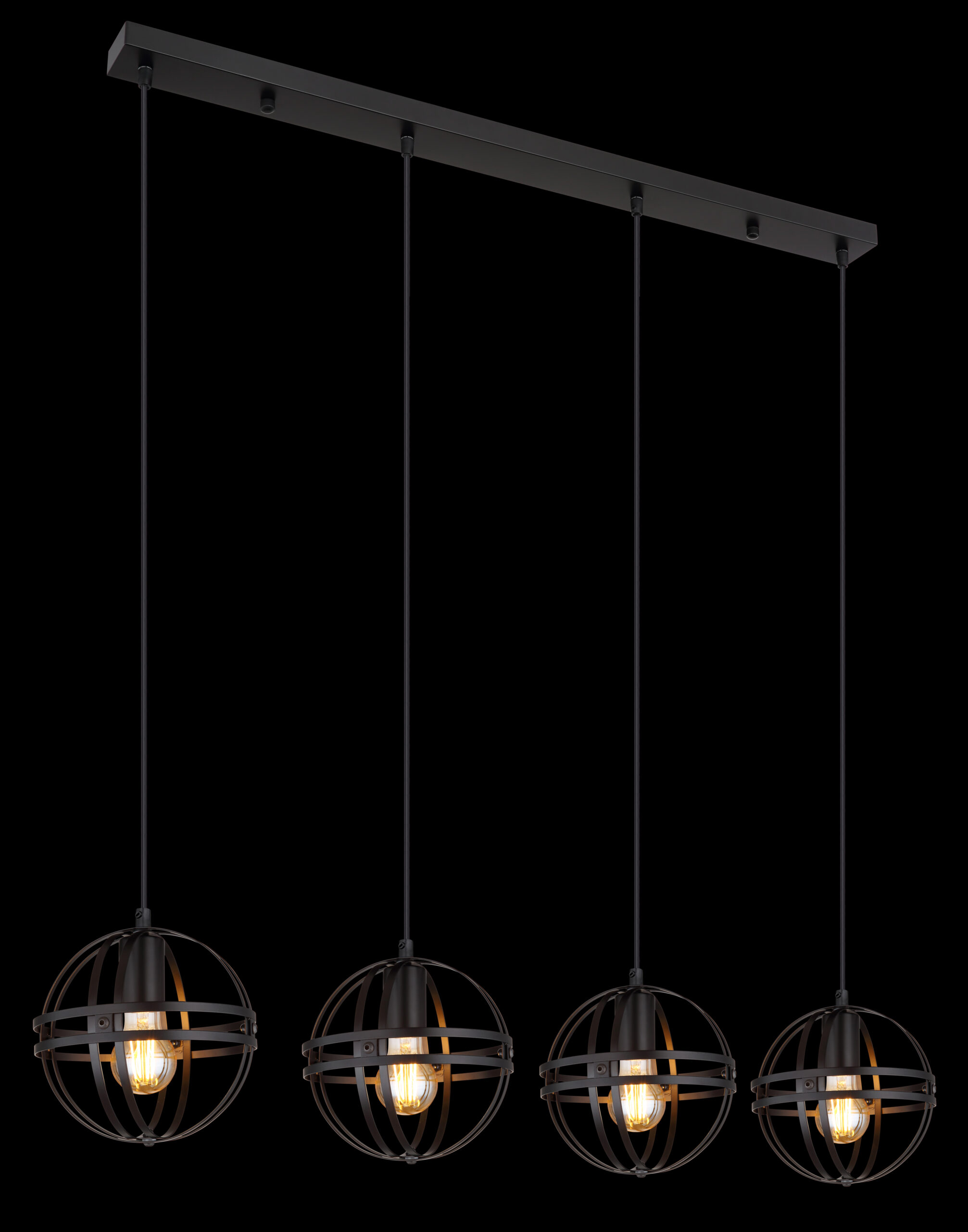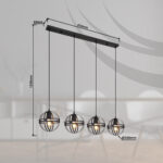 Ova moderna visilica uvjerava sjajnom shemom boja i materijalima. Od uskog plafonskog priključka dužine 1 m, kabl dužine 1,2 m vodi do četiri E27 utičnice, od kojih je svaka obložena oblikom okruglog metalnog kućišta u crnoj boji (Ø20 cm). E27 utičnice vam omogućavaju da slobodno birate, do maksimalne snage od 60 vati, kako biste sami odredili boju svjetla i svjetlinu. Zbog uštede energije i dugovečnosti preporučujemo LED sijalice.