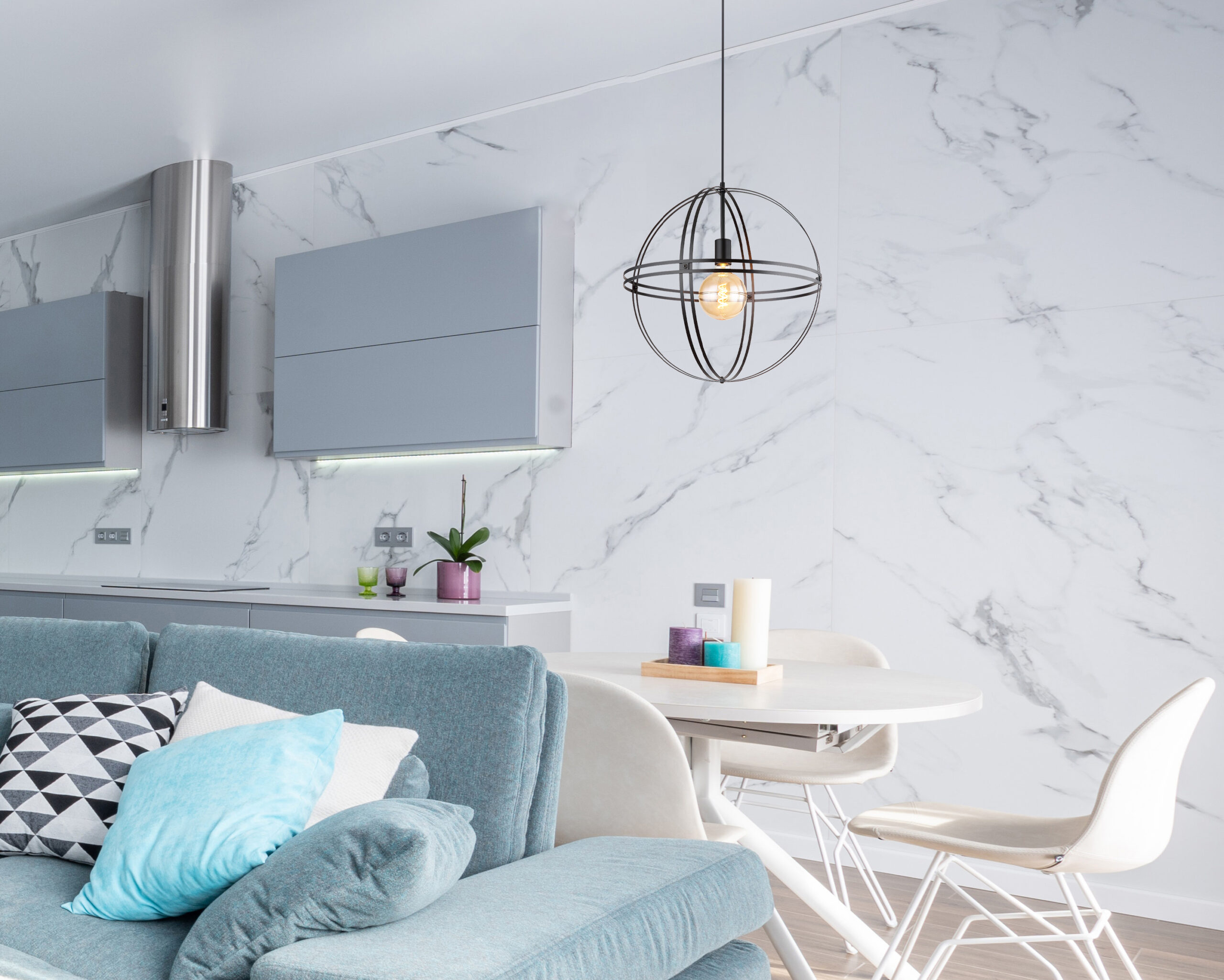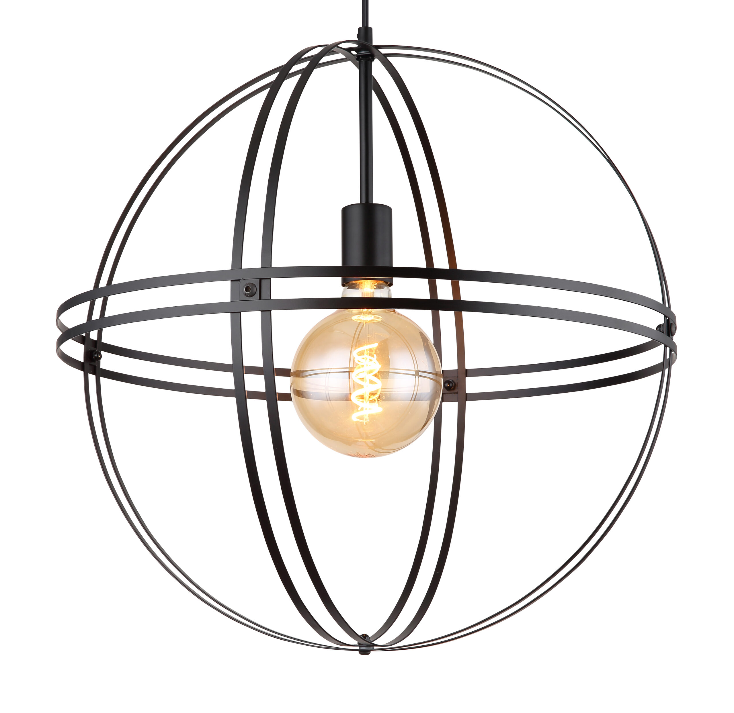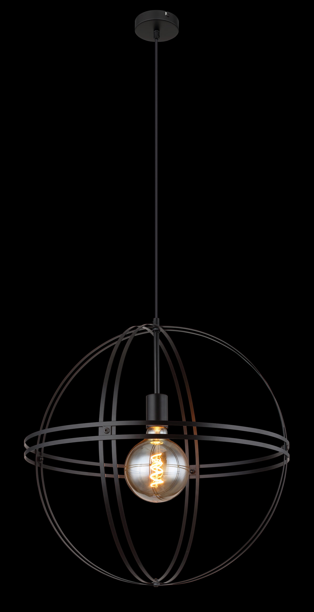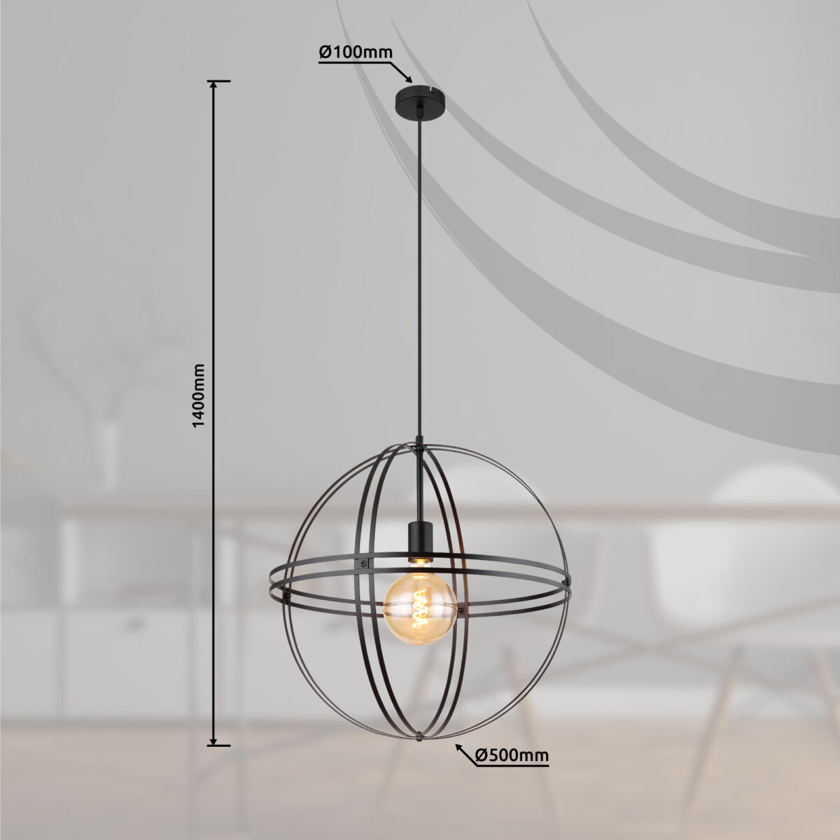 Ova moderna visilica uvjerava sjajnom shemom boja i materijalima. Od okrugle plafonske montaže, kabl dužine 1,2 m vodi do E27 utičnice, koja je obložena oblikovanim okruglim metalnim kućištem u crnoj boji (Ø50 cm). E27 utičnica vam omogućava da slobodno birate, do maksimalne snage od 60 vati, čak i da odredite boju svjetla i svjetlinu. Zbog uštede energije i dugovečnosti preporučujemo LED sijalice.