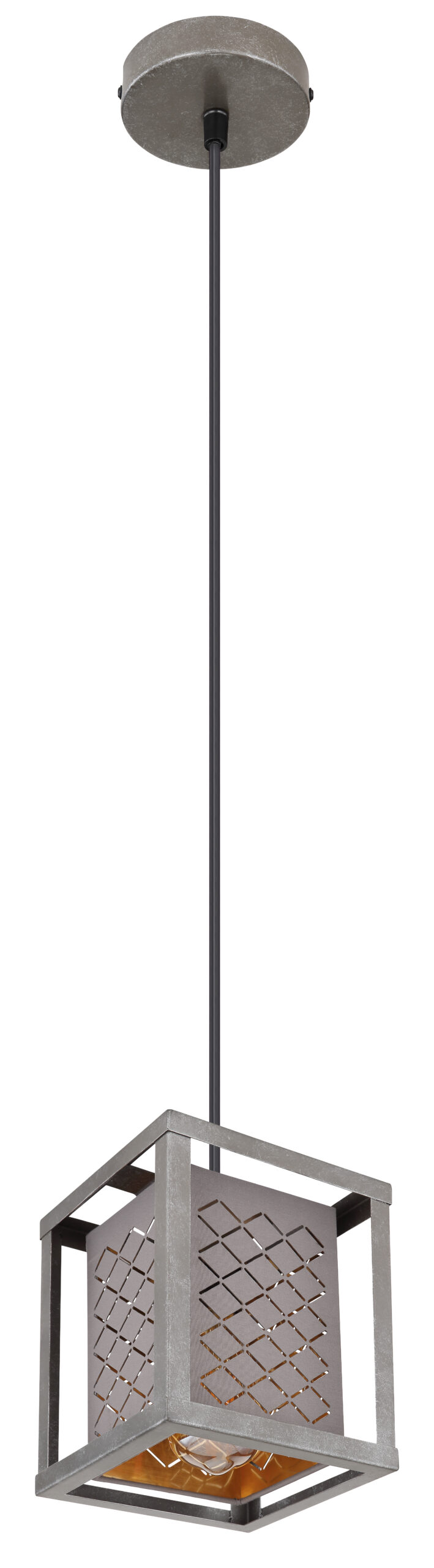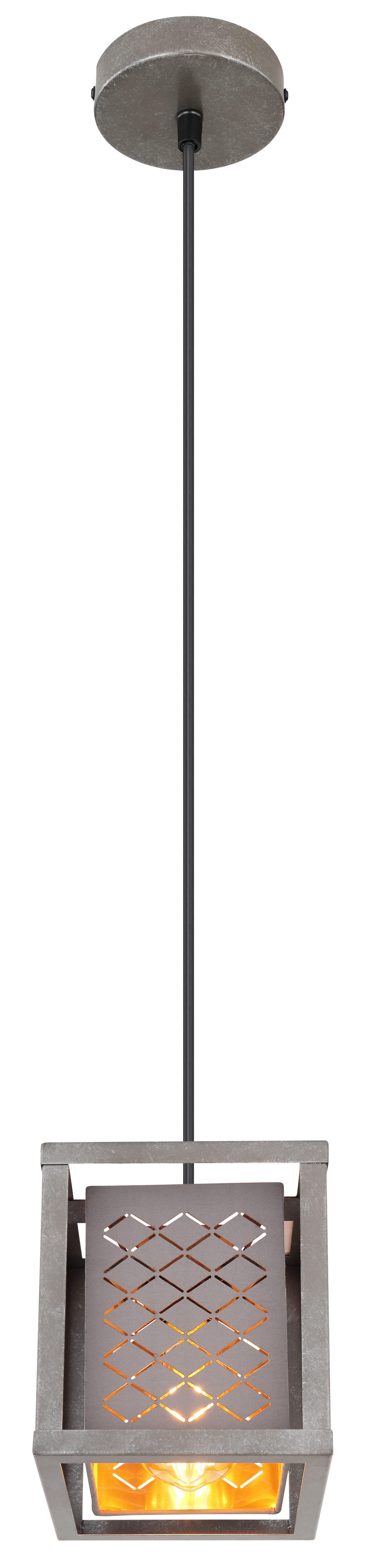 Ova viseća lampa iz serije Thomas (17×17 cm) je prekrasan dodatak vašem interijeru. Sastoji se od metalnog okvira srebrne boje, koji je opremljen pravokutnim tekstilnim sjenilom s vanjske strane linearnim probojima sivim i zlatnim iznutra i visi sa stropa na kablu. Možete ga opremiti sijalicom E27 po vašem izboru, što vam daje mogućnost da individualno odredite boju svjetla i svjetlinu. Osim toga, visina viseće lampe može se podesiti do 120 cm tokom ugradnje. Sa drugim modelima iste serije možete stvoriti moderan ambijent u svoja četiri zida.