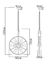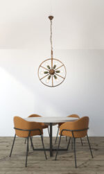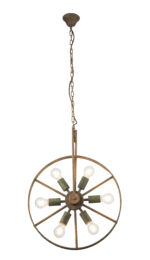 Tonu je veoma posebna viseća lampa, njen izvanredan dizajn čini lampu pravom privlačnom za oči. Abažur se sastoji od točka od 50 cm, u kojem se nalazi šest držača sijalica. Viseća lampa u boji hrđe izrađena je od metala i ima šest E27 grla. Ovo vam daje mogućnost da opremite svetiljku sijalicom do maksimalno 60 vati. U zavisnosti od intenziteta svetlosti i temperature boje koju želite da imate. Preporučujemo LED lampe zbog njihove izdržljivosti i uštede energije. Viseća lampa savršeno se uklapa u dnevni boravak.