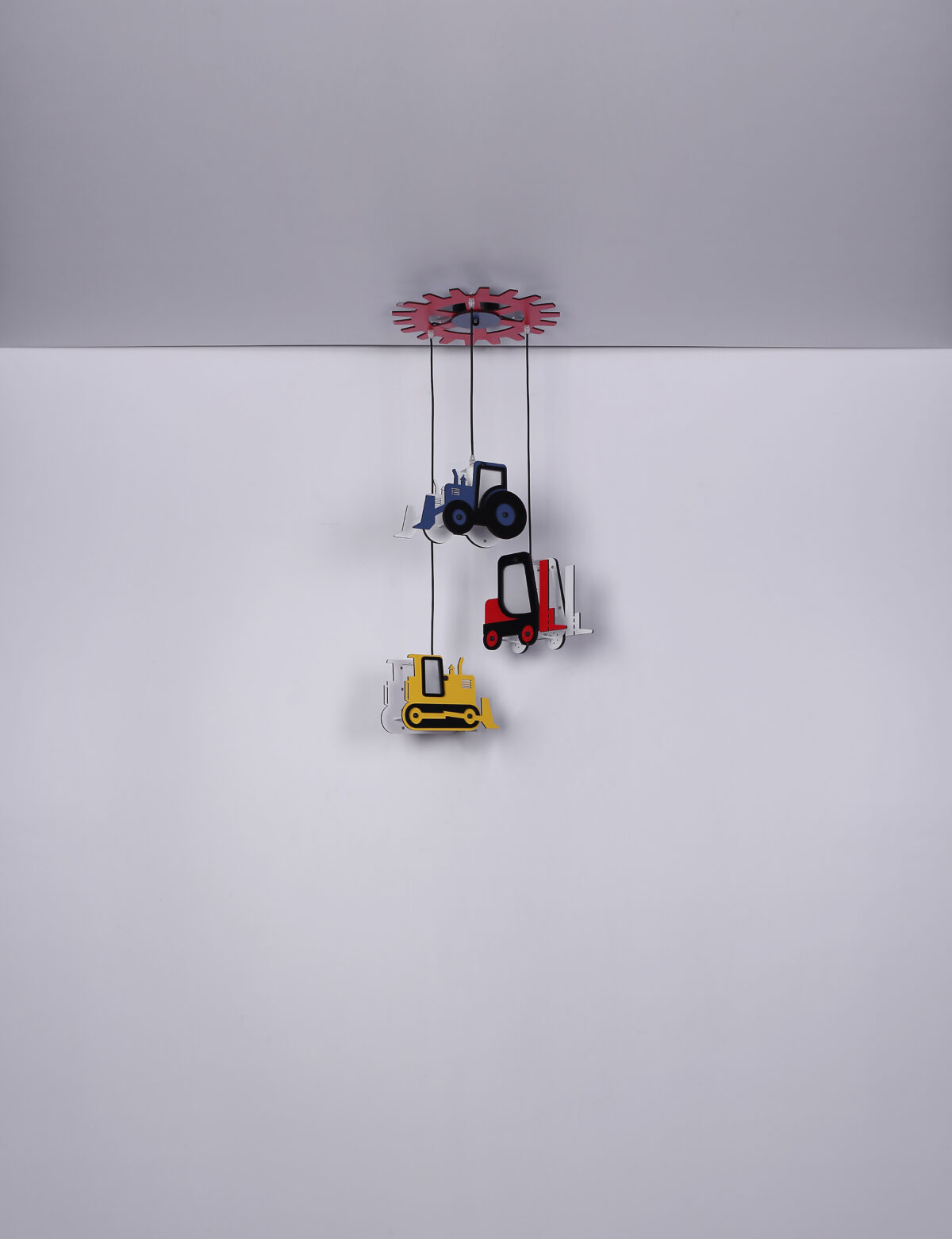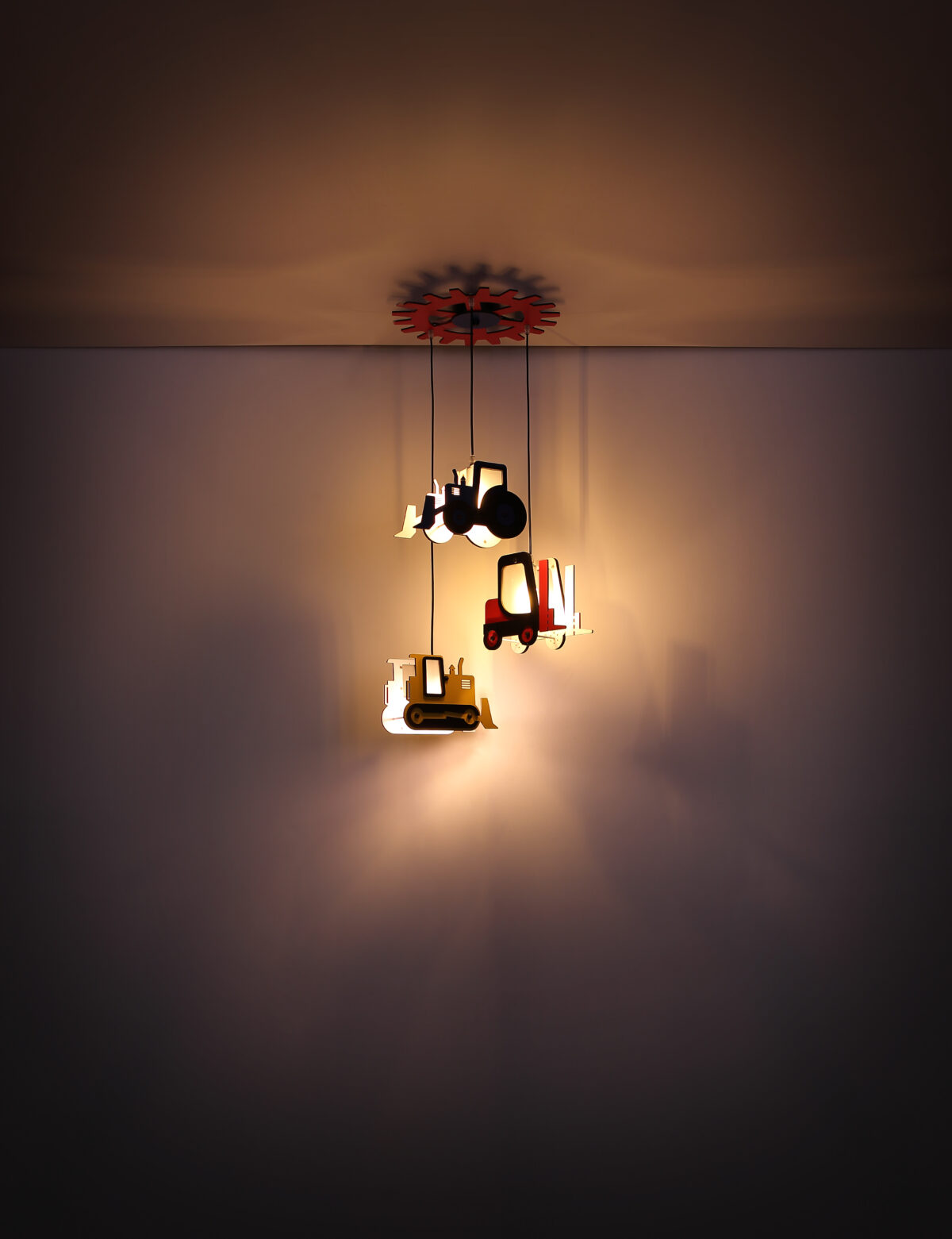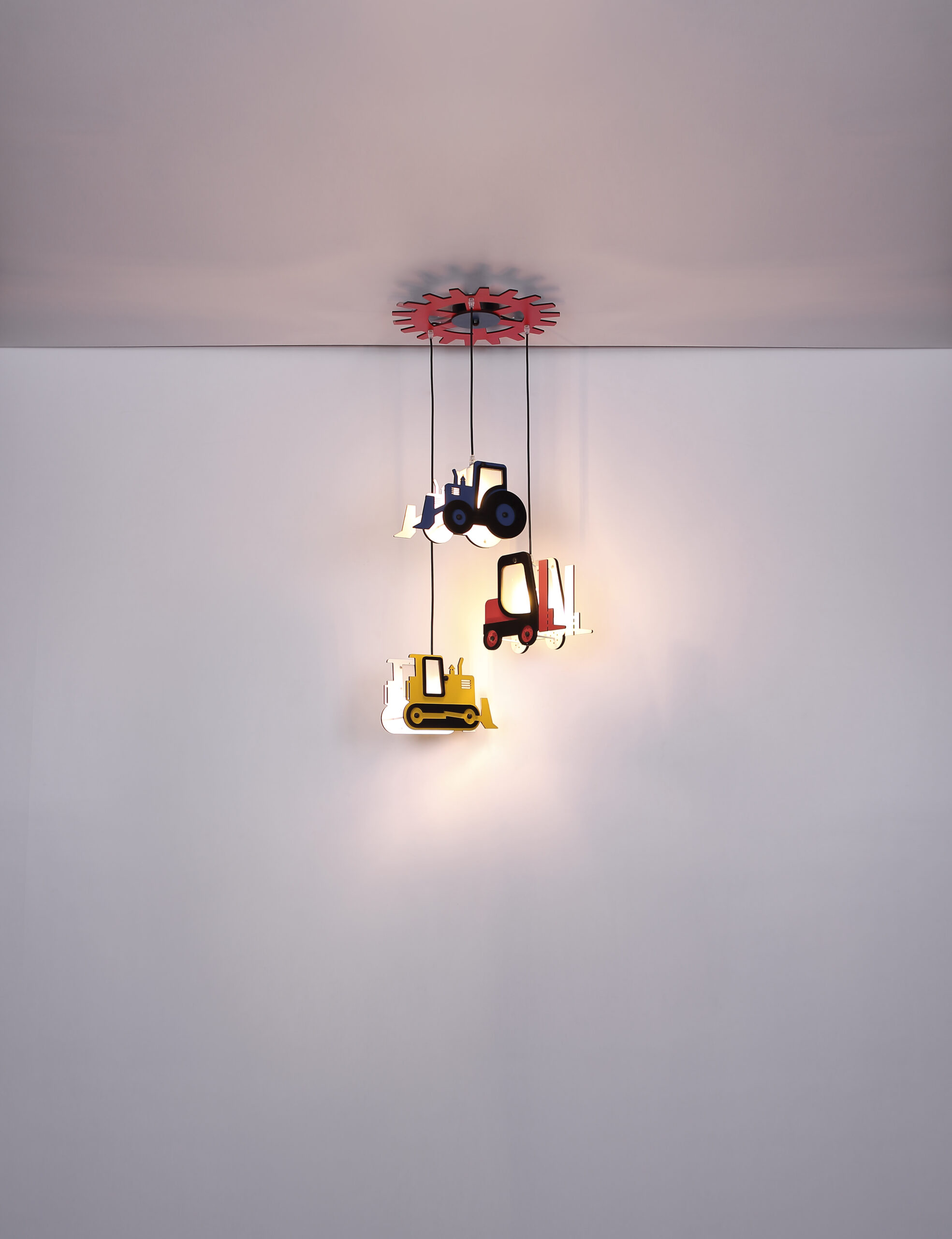 Ova specijalna viseća lampa Toolies čini mala Bauerbeiterova srca da kucaju brže! Lampa ima tri odvojena kabla koji vise na dole, na svakoj vezici je različit pribor. Žuta gusjenica gusjenica, crveni viljuškar i plavi traktor. Sa visinom od 1,2m i prečnikom od 55cm, savršeno se uklapa u dečiju sobu. Slobodnim odabirom izvora svjetlosti (E14/max. 40) možete sami odrediti intenzitet svjetlosti i boju svjetla ove unutrašnje svjetiljke. Zbog dugotrajnosti i uštede energije preporučujemo LED sijalice.
