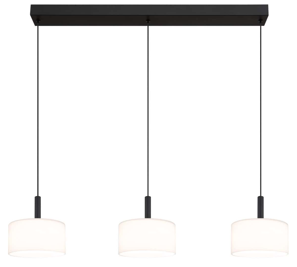 Viseća lampa TRENTON sa tri okrugla, opalna sjenila u izgledu alabastera savršena je kombinacija modernog dizajna i funkcionalnosti. Mat crno metalno kućište daje mu savremeni štih. Sa dužinom od 960 mm i jačinom lumena od 1100, pruža prijatno osvetljenje. Varijabilna temperatura boje od 2700 K do 4000 K omogućava fleksibilno podešavanje svjetlosnog raspoloženja. Ova lampa je idealna za trpezarije ili kuhinje i stvara atmosferu dobrodošlice.