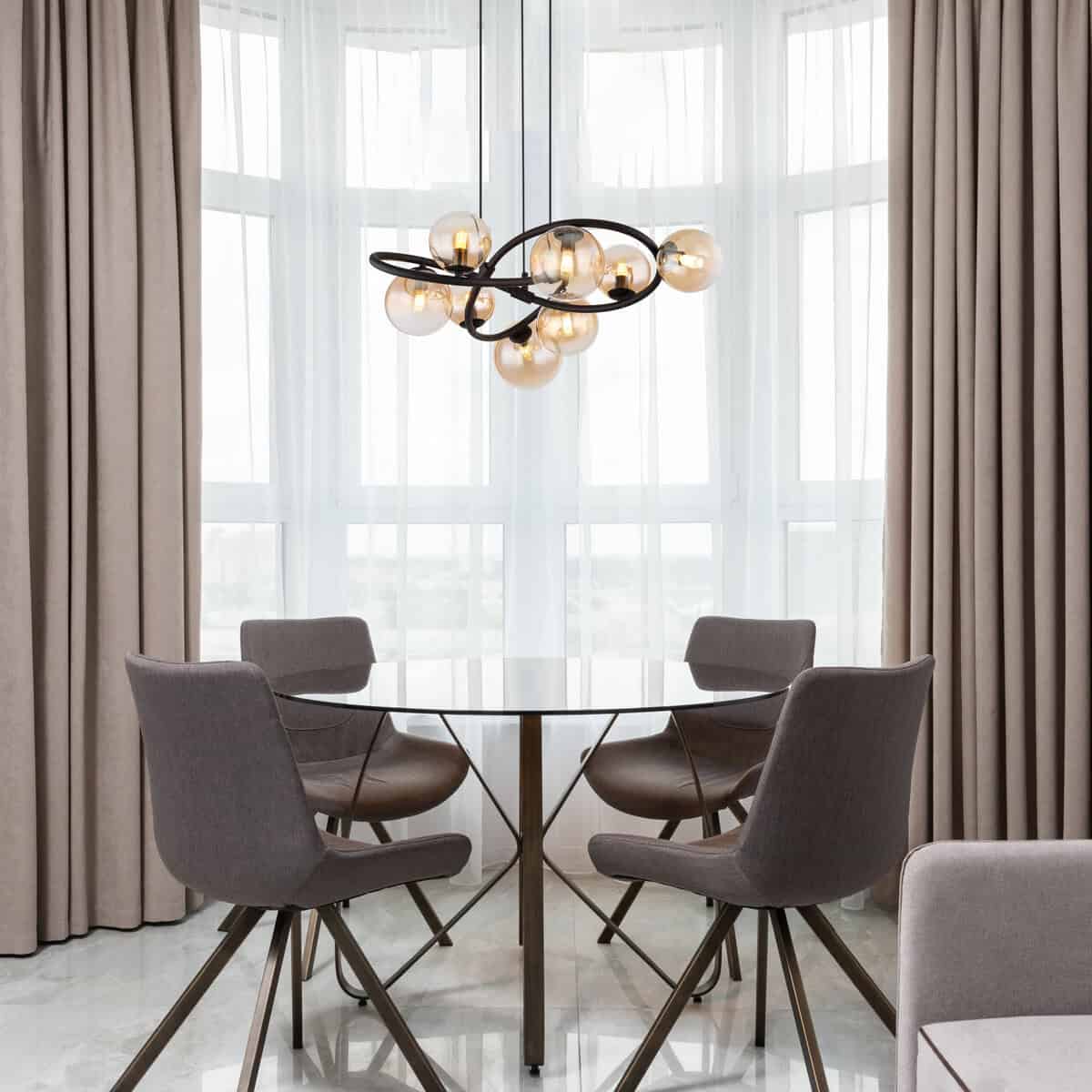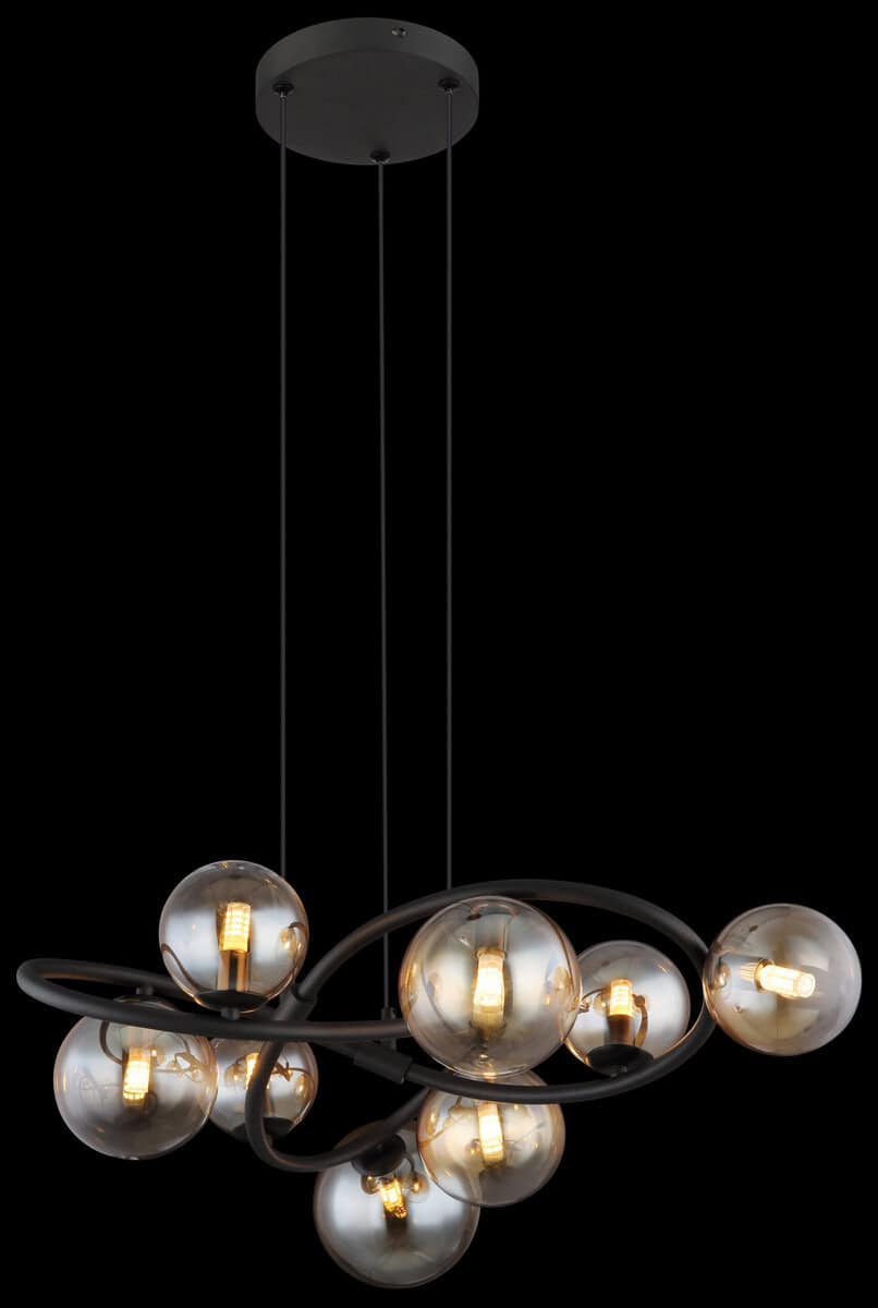 Zakrivljena visilica sa različitim staklenim sferama je elegantno i moderno rešenje za osvetljenje svakog životnog prostora. Telo lampe je izrađeno od mat crnog metala, što lampi daje plemenit izgled. Zakrivljeni sjenilo od prozirnog stakla sa mekim jantarnim prelivom pruža ugodno i toplo osvjetljenje. Sa prečnikom od 650mm, viseća lampa nudi dovoljno svetla za veće prostorije. Svetiljka je opremljena sa 8xG9 LED sijalicama, svaka sa snagom od 3,5W i ukupnom snagom svjetla od 290 lumena. Svijetla boja je ugodnih 3000K, što stvara ugodnu atmosferu. Ova zakrivljena visilica nije samo funkcionalna, već je i stilski element dizajna koji će uljepšati svaku prostoriju.