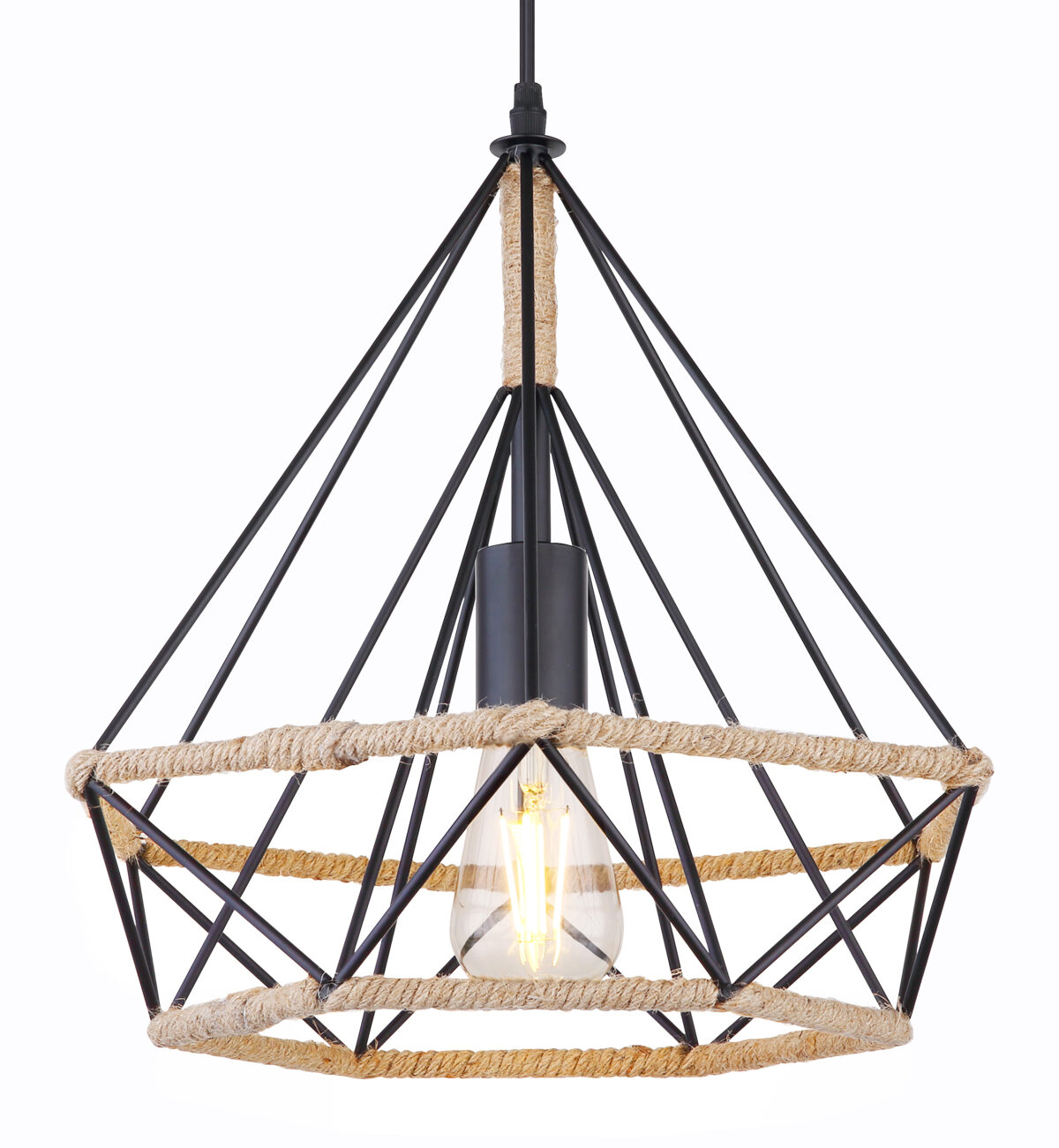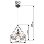 Ova visilica ULLEU (Ø 38cm) ima skladan izgled. Abažur u obliku dijamanta ove unutrašnje lampe od 150 cm koji viri u prostoriju je napravljen od crnog metala i smeđeg konoplje od konoplje. Slobodnim odabirom izvora svjetlosti (E27/max. 60W) možete sami odrediti intenzitet svjetla i boju svjetla ove unutrašnje svjetiljke. Zbog njihove dugovečnosti preporučujemo LED lampe. Sa ostalim modelima ove serije možete dodatno uljepšati sliku svog životnog prostora.