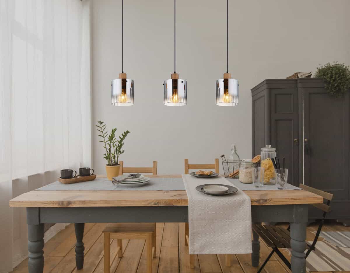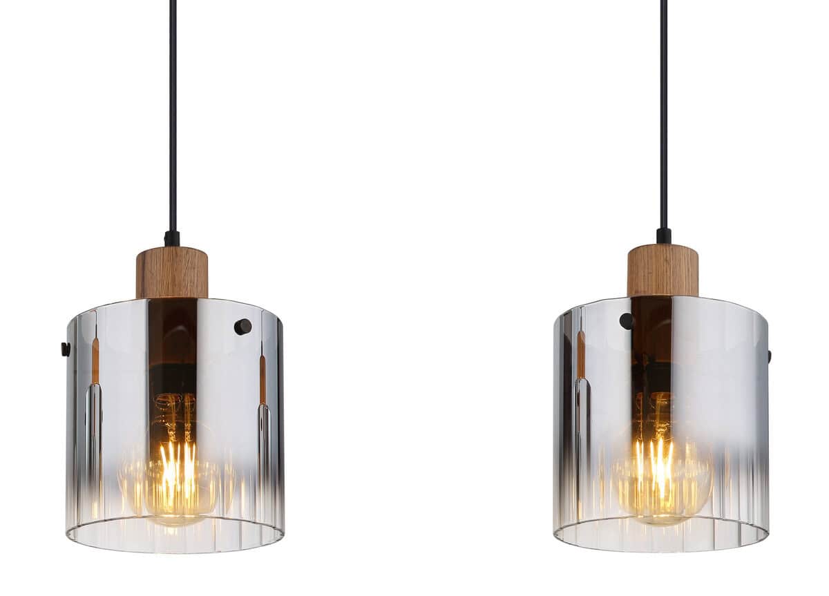 Viseća lampa UNDERWOOD pravougaonog dizajna sa tri staklena cilindra u boji dima i kućištem od tamnog medijapana postavlja rustikalne akcente u modernim prostorijama. Pogodno za E27 sijalice (ekskluzivno).