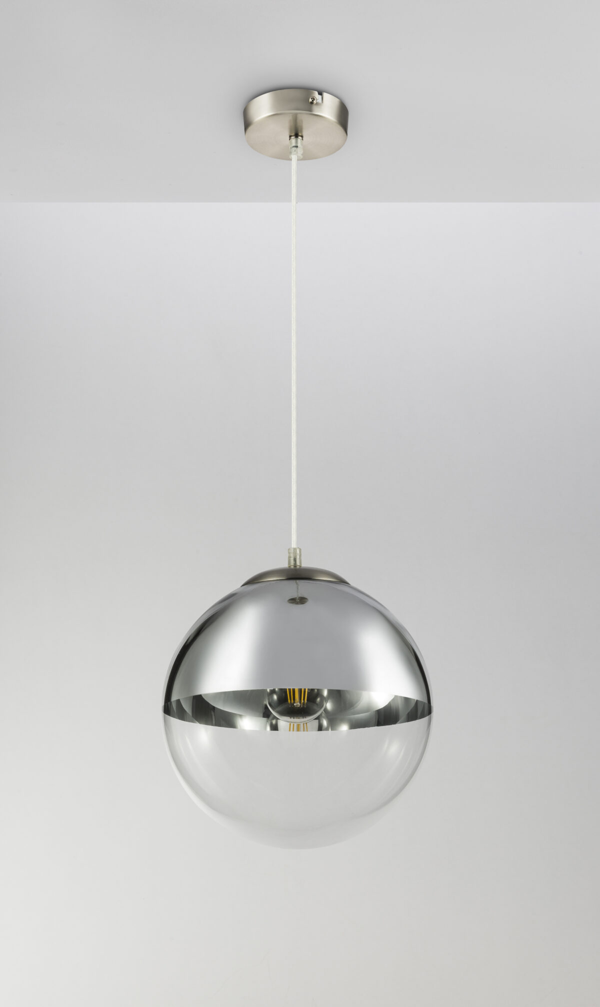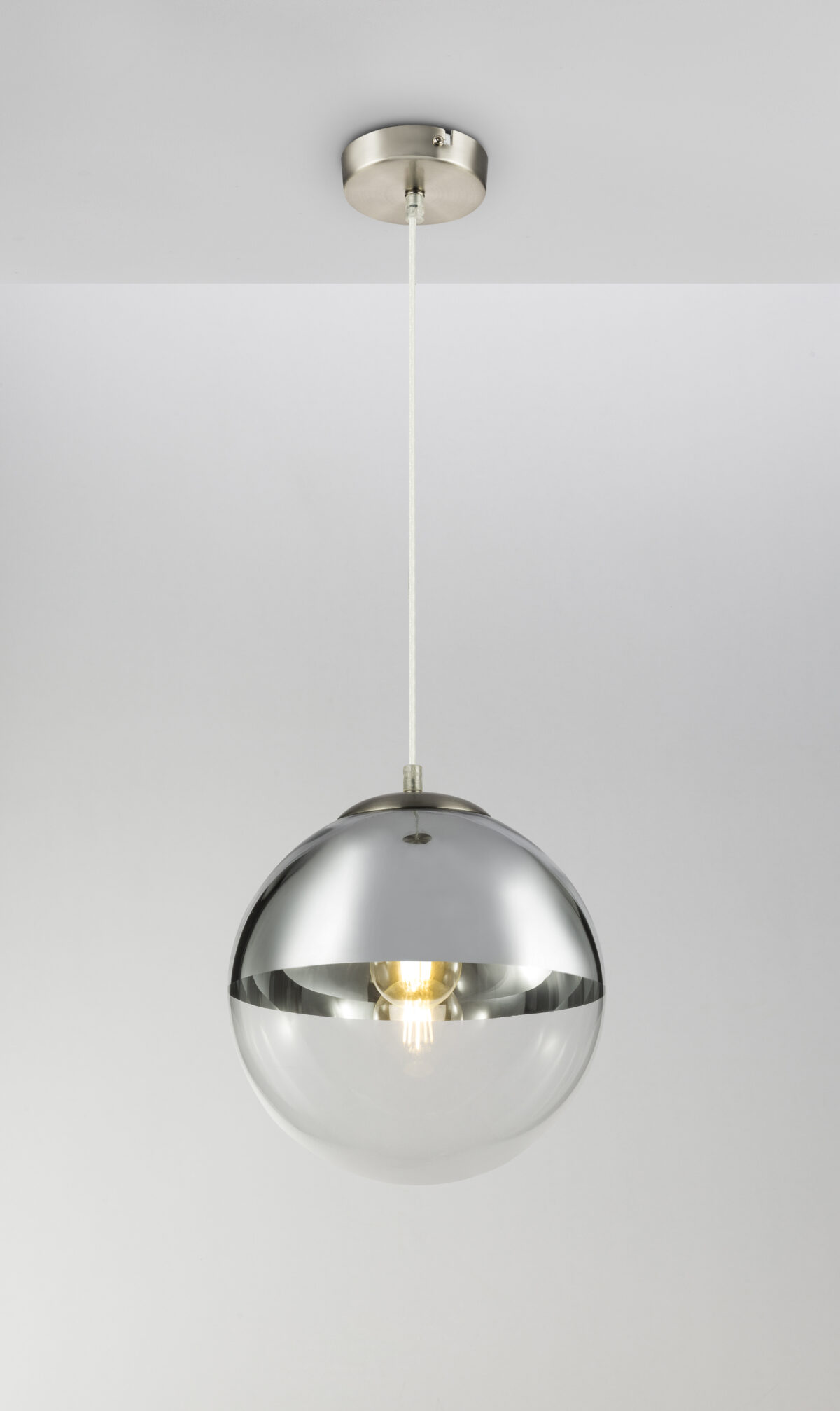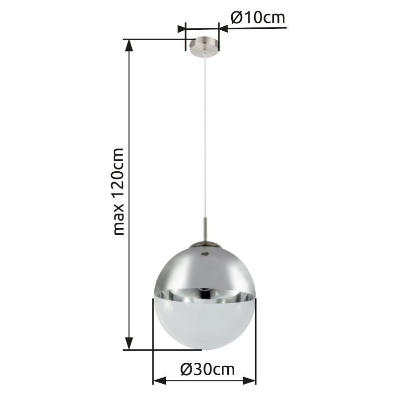 Ova moderna visilica iz serije Varus uvjerava svojim prekrasnim izgledom. Promjer staklenog sjenila je 30cm i strši u prostoriju sa visinom od 120cm. U gornjem dijelu staklena kugla je nikl mat. Njegov dizajn garantuje da će privući oči u svakom dnevnom boravku ili spavaćoj sobi. Zahvaljujući grlu E27, imate mogućnost da odredite sijalicu do maksimalno 40 vati. U zavisnosti od boje i intenziteta svetlosti koju želite da imate. Preporučujemo LED lampe zbog njihove izdržljivosti i uštede energije. Viseću možete odlično kombinovati sa ostalim artiklima iz ove serije.