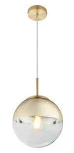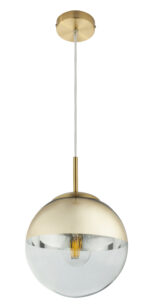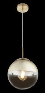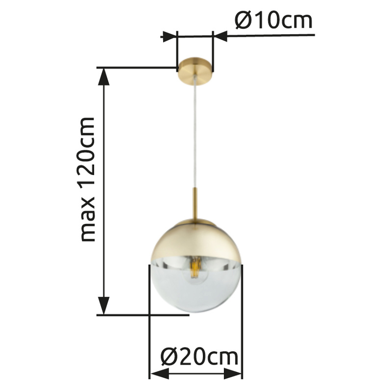 Ova moderna visilica iz serije Varus uvjerava svojim prekrasnim izgledom. Promjer staklenog sjenila je 20cm i strši u prostoriju sa visinom od 120cm. U gornjem dijelu je staklena kugla zlatne boje. Njegov dizajn garantuje da će privući oči u svakom dnevnom boravku ili spavaćoj sobi. Zahvaljujući grlu E27, imate mogućnost da odredite sijalicu do maksimalno 40 vati. U zavisnosti od boje i intenziteta svetlosti koju želite da imate. Preporučujemo LED lampe zbog njihove izdržljivosti i uštede energije. Viseću možete odlično kombinovati sa ostalim artiklima iz ove serije.