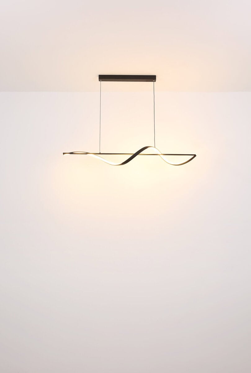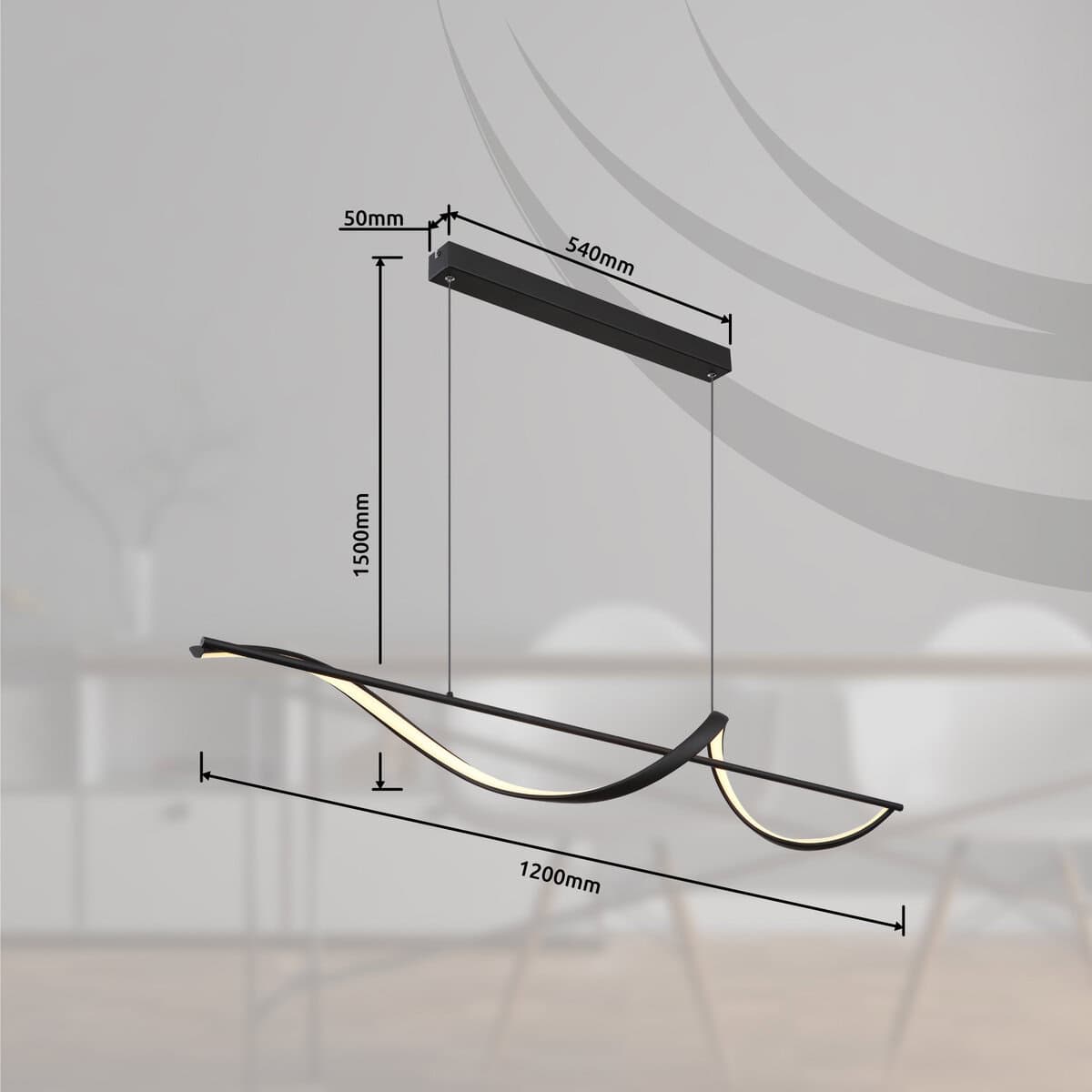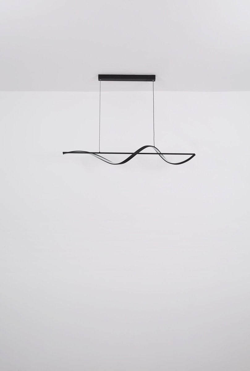 Viseća lampa je izrađena od crnog mat metala i crnog mat aluminijuma kao i opal silikona, raspoređenih u prečniku 1200 mm x 200 mm x 1500 mm (dužina x širina x visina). Crni PVC kabel je podesiv po visini i može se individualno skratiti kako bi se optimalno prilagodio visini vaše prostorije. Svetiljka se isporučuje sa LED sijalicom snage 24 W i naponom od 230 V. Izvor svjetlosti ima svjetlinu od 3000 lm izvora i izlaznu snagu od 1000 lm pri temperaturi boje od 3000K. Ova viseća lampa je prava privlačnost za oči i idealna je za moderne životne prostore. Kombinacija crnog mat metala, crnog mat aluminijuma i opal silikona daje lampi elegantan izgled. Podesiva visina vam omogućava da prilagodite svetiljku vašim potrebama. Sa LED lampom štedite energiju i štitite životnu sredinu.