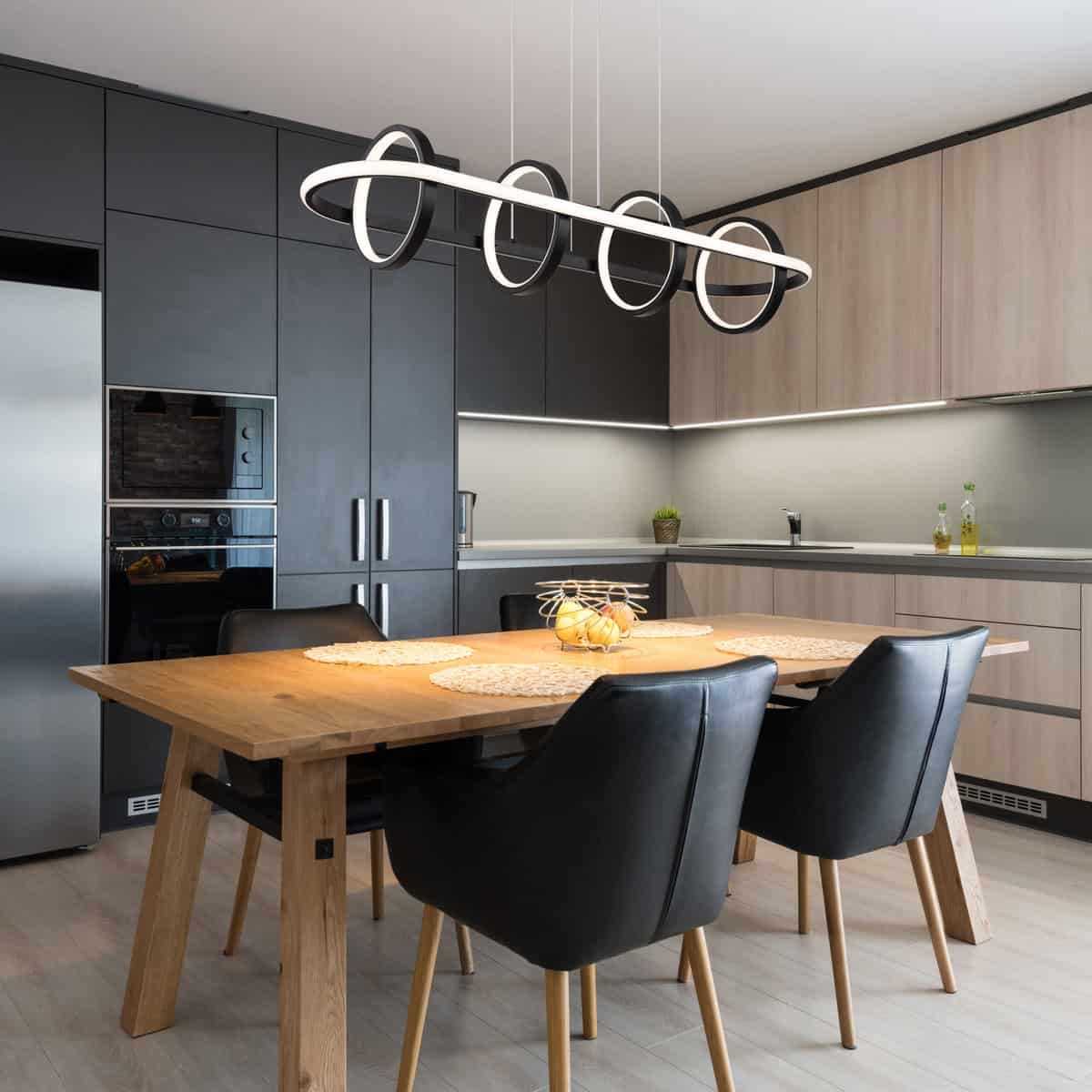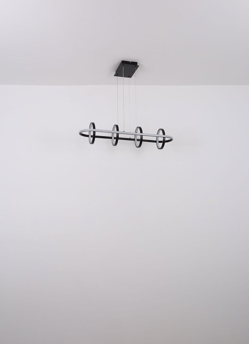 Doživite fascinantnu WOLFHARD viseću lampu! Sa svojim modernim i elegantnim dizajnom u mat crnoj boji, postaje vrhunac u svakoj prostoriji. Međuigra mat crnog metala, aluminija i opal silikona stvara harmoničnu svjetlosnu atmosferu. Ovo svjetlo koje se može prigušiti pruža vam različite nivoe svjetline koje možete lako podesiti preko zidnog prekidača. Osim toga, možete popraviti boju i sačuvati svoje individualne postavke zahvaljujući praktičnoj funkciji memorije. WOLFHARD se može rotirati i okretati i ima integrirano noćno svjetlo. Uz priloženi daljinski upravljač, uključujući 2x AAA baterije, imate potpunu kontrolu nad svojim osvjetljenjem. Sa veličinom od 900x282x1200mm i prečnikom prstena od 20 cm, ova visilica savršeno se uklapa u različite veličine prostorija. Pruža impresivnu snagu sa integrisanim LED od 45W i izvorom od 513-5130lm, proizvodeći 270-2700lm izlaz. Podesiva temperatura boje od 2700-6000K omogućava vam da prilagodite svjetlo. Doživite jedinstven dizajn i izvanrednu rasvjetu u svom domu uz WOLFHARD visilicu!