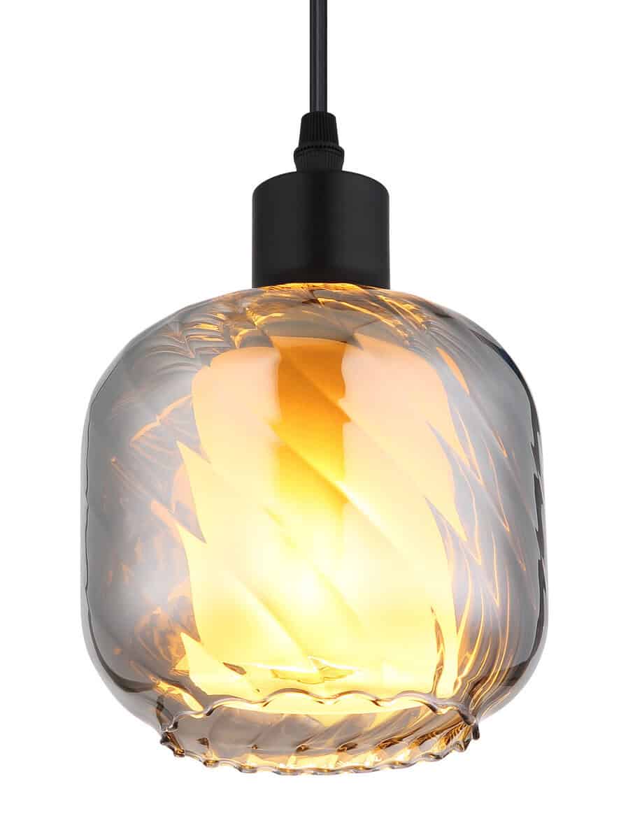 XIA visilica okruglog dizajna ima staklo sa stilizovanim žljebovima i unutrašnje staklo. Crno, mat metalno tijelo i dimljena, opalna nijansa stvaraju elegantan ambijent. Pogodan je za sijalicu E27 (ekskluzivno) i savršeno se uklapa u moderne dnevne i trpezarijske prostore.