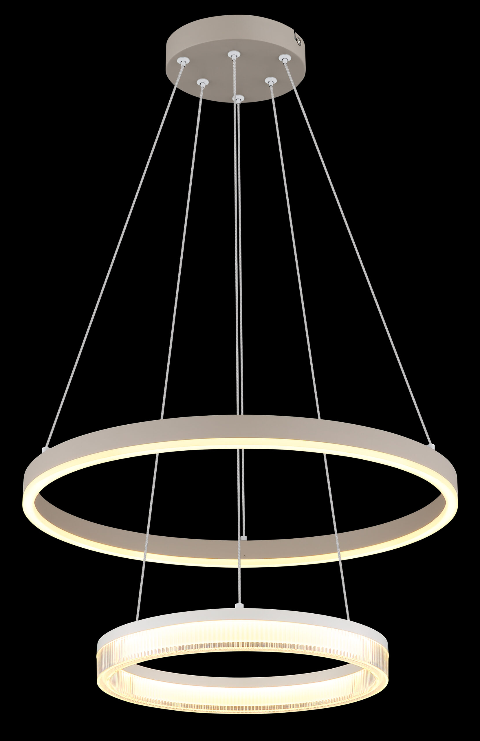 Okrugla viseća lampa ZARA kombinuje moderan dizajn sa funkcionalnom fleksibilnošću. S promjerom od 430 mm i dva podesiva ukrasna prstena, nudi raznovrsne stilske mogućnosti i stvara elegantne akcente preko stolova za ručavanje, u dnevnim sobama ili ulazima. Mat metalno kućište boje pijeska daje uređaju topao, sofisticiran izgled koji se dobro uklapa u moderne i skandinavske interijere. Sjenilo, napravljeno od bijele i prozirne plastike, osigurava meku, ravnomjernu distribuciju svjetlosti bez odsjaja. Integrisani LED (uključen) emituje prijatno toplo belo svetlo na 3000K, pružajući izvanrednu energetsku efikasnost i dug životni vek. Zahvaljujući podesivim prstenovima, svjetlosni efekat se može personalizirati prema vašim potrebama. ZARA nije samo moderan izvor svjetlosti – ona je i fleksibilan element dizajna koji ispunjava zahtjeve modernih interijera koji traže i formu i funkciju.