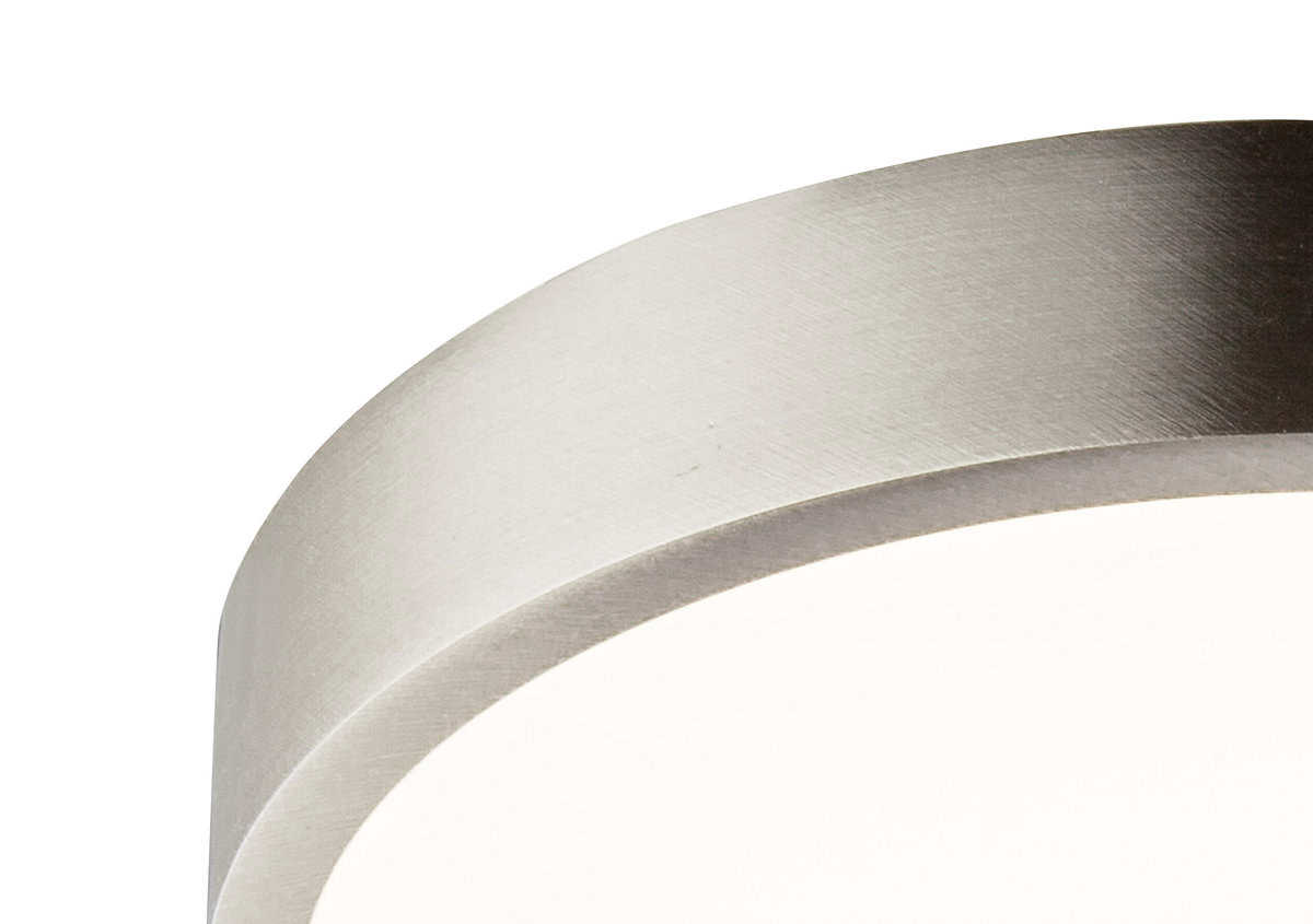 Ova plafonska lampa jednostavnog izgleda (Ø17cm) serije VITOS uvjerava prije svega svojom funkcionalnošću. Opalno akrilno staklo u sredini okruženo je nikl-mat ivicom od livenog aluminijuma. Lampa, koja se može prigušiti do 1980 lumena, ima uključenu LED sijalicu od 22 W i daje ugodnu boju svjetla s neutralnom bijelom 4000 Kelvina. Sa daljim modelima ove serije možete dodatno ulepšati sliku svog životnog prostora.