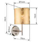 Ova nikl mat zidna lampa, serija Amy, je dimenzija 15×26 cm. Tekstilna nijansa zlatne boje pokriva utičnicu E14, koja se može opremiti bilo kojim izvorom svjetlosti (maks. 40W). Ovaj okrugli model kontroliše se prekidačem za uključivanje i isključivanje. Osim toga, idealno doprinosi elegantnom dizajnu interijera i može se savršeno kombinirati s drugim modelima ove serije.
