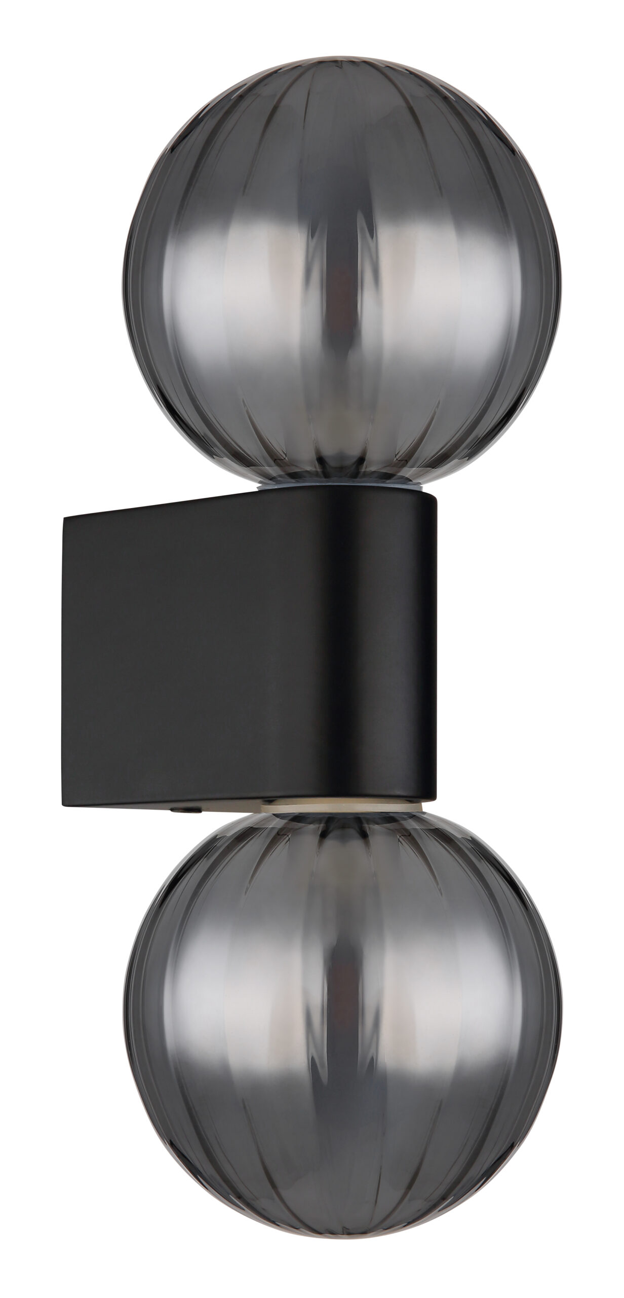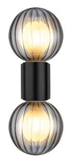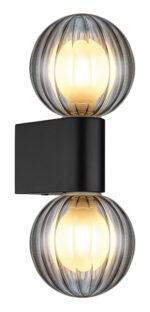 Pravougaona zidna lampa sa žljebljenim staklenim sferama i unutrašnjim staklom je elegantan rasvjetni element za vaš dom, posebno u kupaonici. Tijelo izrađeno od crnog mat lijevanog aluminija daje svjetiljci modernu estetiku koja se savršeno uklapa u različite stilove opremanja. Staklene kugle u boji dima sa sateniranim unutrašnjim staklom stvaraju ugodnu igru svjetla i stvaraju prekrasnu atmosferu u vašoj sobi. Sa širinom od 100 mm i visinom od 120 mm, ova zidna lampa je kompaktna i štedi prostor. Dvije G9 utičnice omogućavaju vam da opremite svjetiljku odgovarajućim izvorima svjetlosti. Sa snagom od 5W i ocjenom IP44, ova zidna lampa je idealna za upotrebu u kupaonici, jer je zaštićena od prašine i prskanja vode. Kladite se na ovu pravougaonu zidnu lampu za elegantnu rasvjetu u vašem domu.