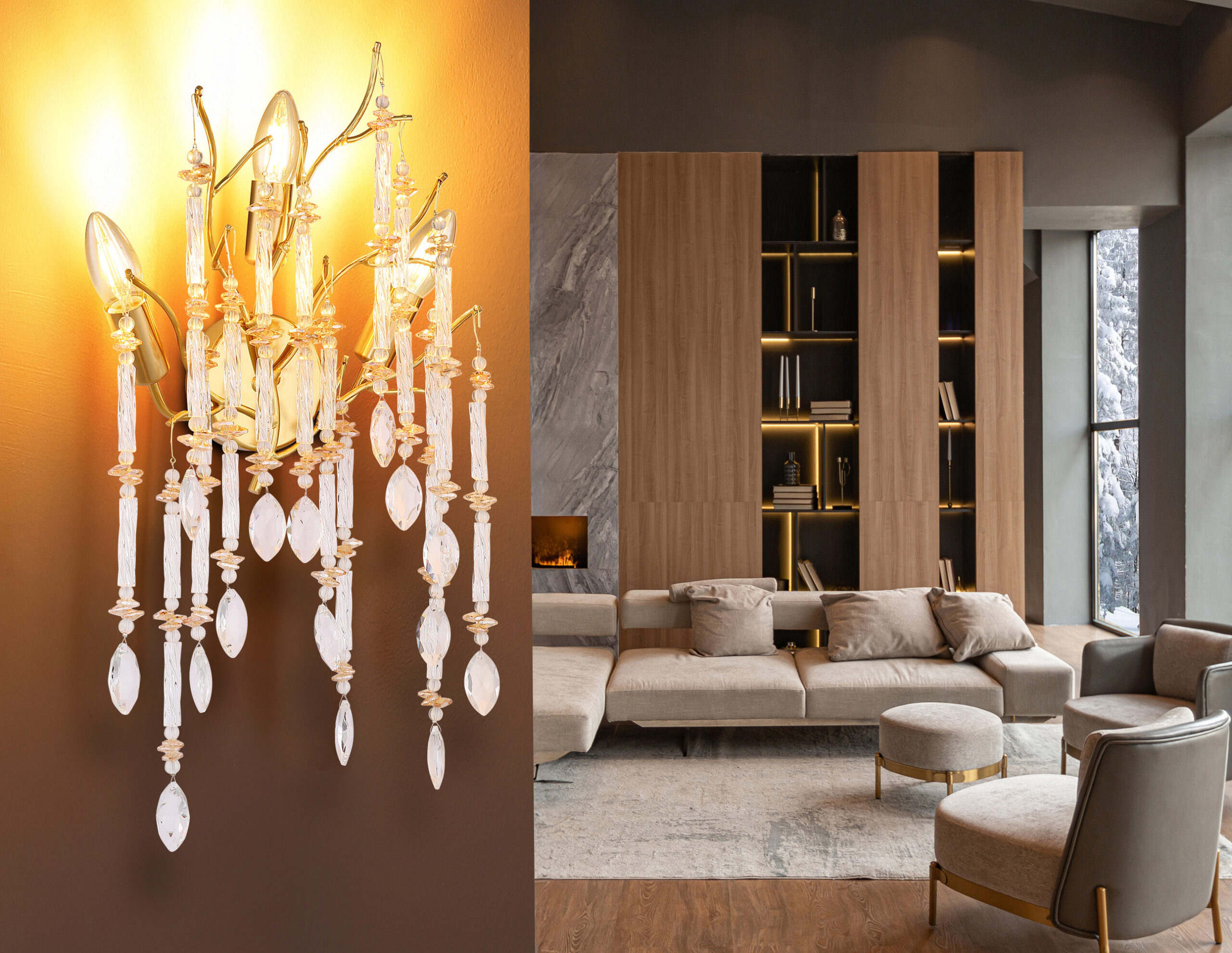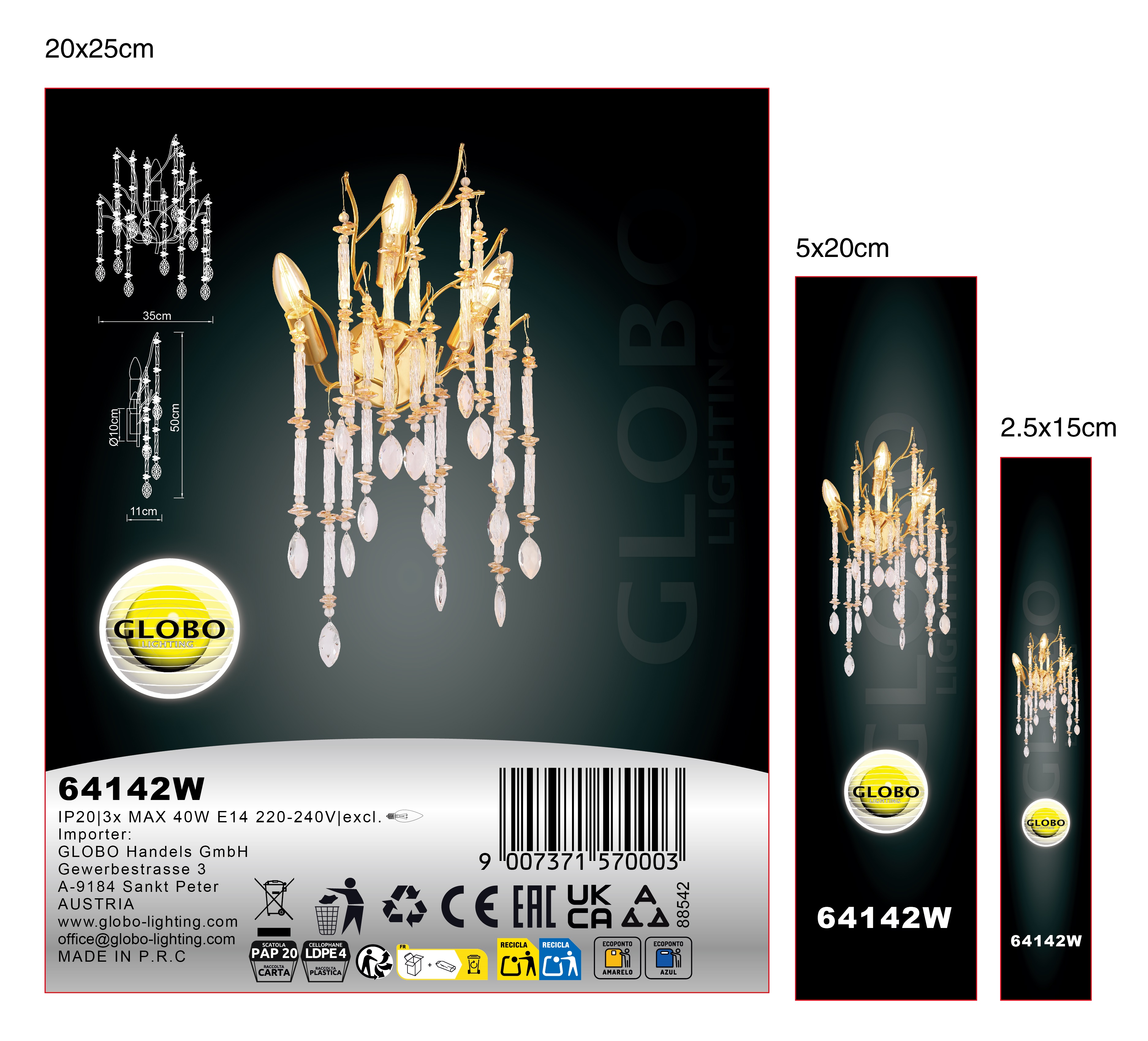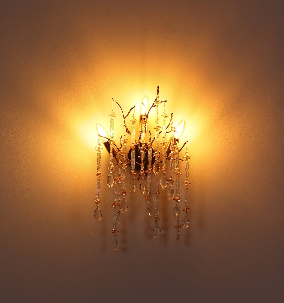 Pravougaona zidna lampa GLORIA kombinuje moderan dizajn sa luksuznim šarmom, čineći je elegantnim akcentom na svakom zidu. Njegovo mat metalno tijelo zlatne boje čini rafiniranu osnovu za vješto izrađen kristalni aranžman ukrašen kristalima od prozirnog i jantarnog stakla. Ovi kristali prelamaju svjetlost na fascinantan način i stvaraju topao, blistav ambijent. Sa širinom od 350 mm i projekcijom od 110 mm, GLORIA ostaje kompaktna, ali upečatljiva—idealna za hodnike, dnevne sobe ili spavaće sobe. Lampa je opremljena grlom E14 (sijalica nije uključena), što omogućava fleksibilan izbor izvora svjetlosti. Visokokvalitetni materijali, odlična izrada i promišljen dizajn čine ovu zidnu lampu savršenim izborom za zahtjevne interijere. Bilo da se koristi samostalno ili u kombinaciji, GLORIA isporučuje elegantne svjetlosne akcente sa prepoznatljivim karakterom i pravi je vrhunac za entuzijaste osvjetljenja koji su osviješteni dizajnom.