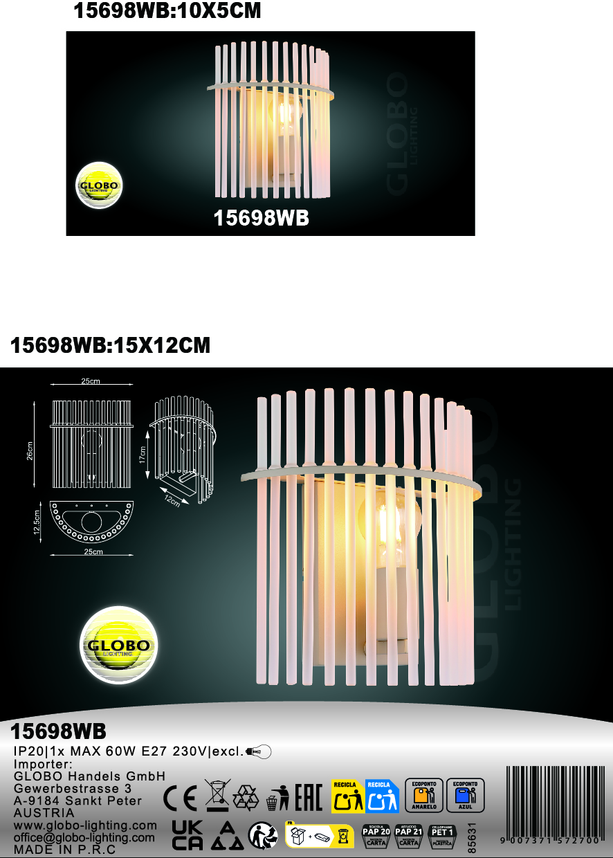 Zidna lampa GORLEY kombinuje moderan dizajn sa visokokvalitetnim materijalima i postavlja elegantne svetlosne akcente u svaku prostoriju. Polukružno sjenilo od matiranog stakla nudi meko osvjetljenje bez odsjaja, stvarajući ugodnu i privlačnu atmosferu. Telo lampe od mat bež metala daje joj moderan, ali bezvremenski izgled. Sa širinom od 250 mm i projekcijom od 125 mm, GORLEY je idealno rješenje za hodnike, dnevne prostore ili spavaće sobe – izgleda i funkcionalno i dekorativno. Svjetlo je dizajnirano za sijalice E27 (sijalica nije uključena), što vam omogućava da odaberete boju i intenzitet svjetla prema vašim potrebama. Bilo kao samostalan komad ili uparen sa drugim GORLEY modelima, ova zidna lampa je elegantna žarišna tačka i savršen rasvjetni objekt za moderne interijere.