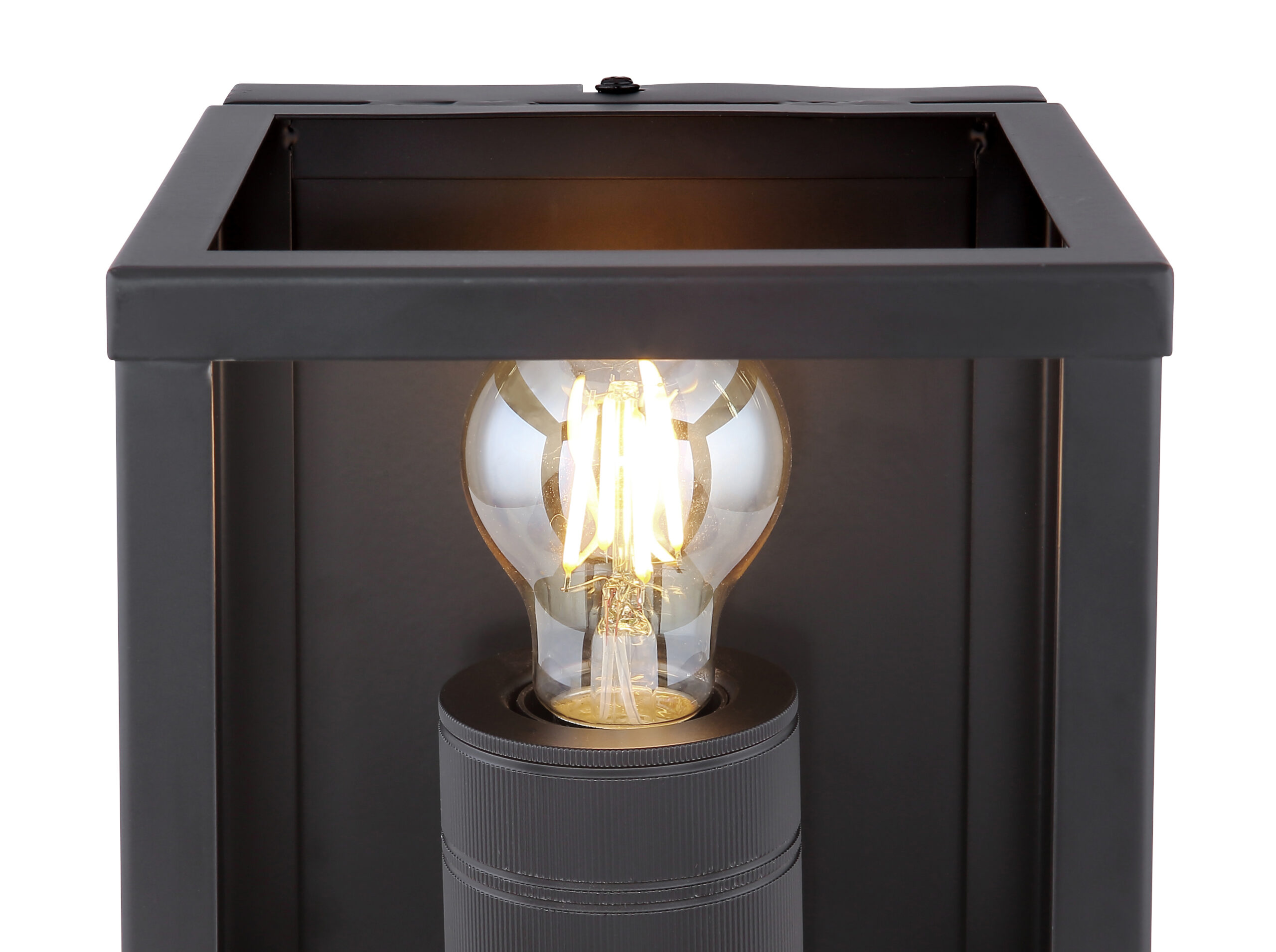 Ova zidna lampa iz serije Hagar impresionira svojim jednostavnim dizajnom od crno-mat metala. Sastoji se od kockastog metalnog okvira (17x17x20 cm) koji sadrži E27 utičnicu. Možete ih opremiti odgovarajućom sijalicom po vašem izboru, koja vam daje mogućnost da odredite boju svjetla i svjetlinu prema vašim željama. Sa ostalim modelima iste serije možete stvoriti stilski ambijent u svom interijeru i upotpuniti cjelokupnu sliku.