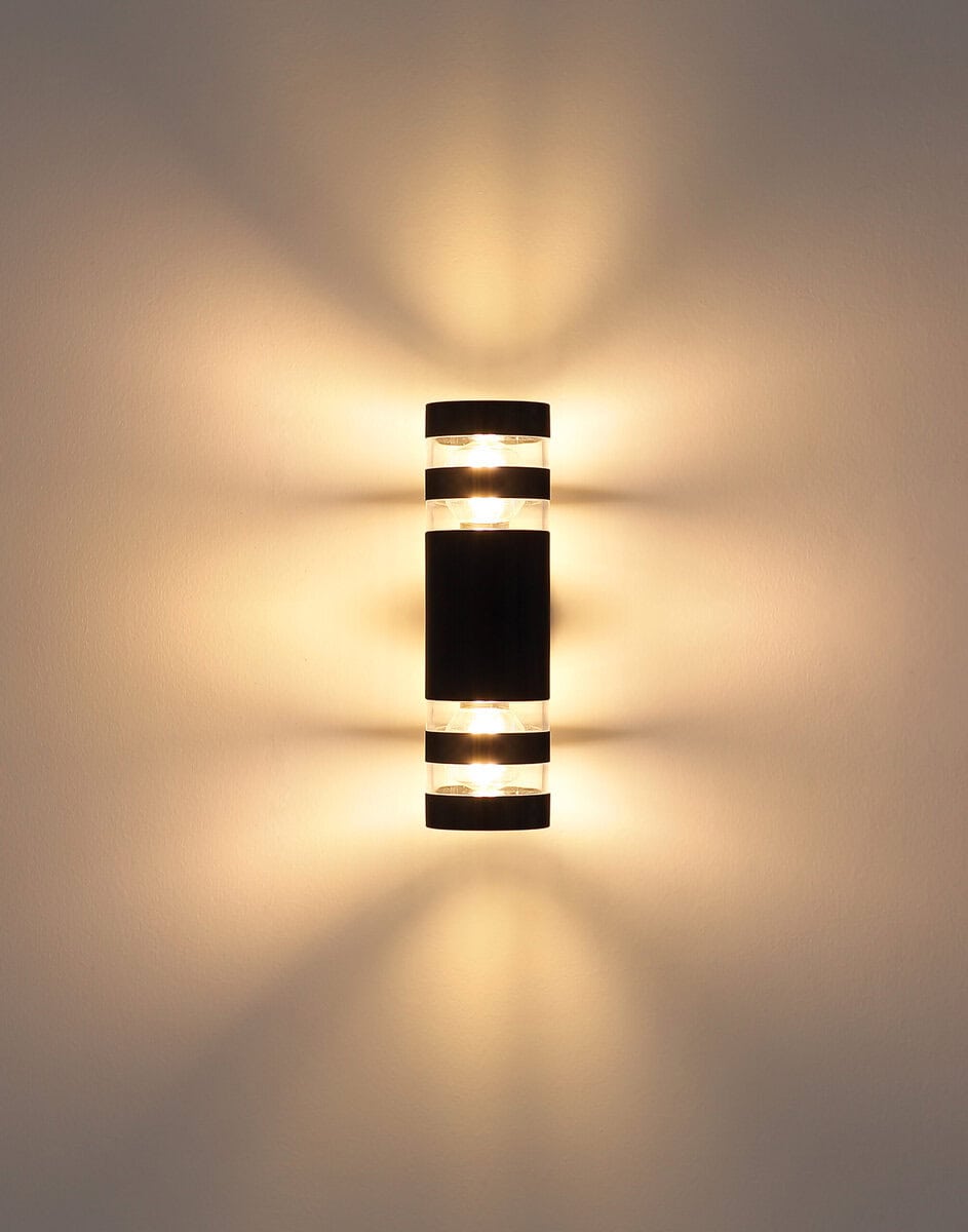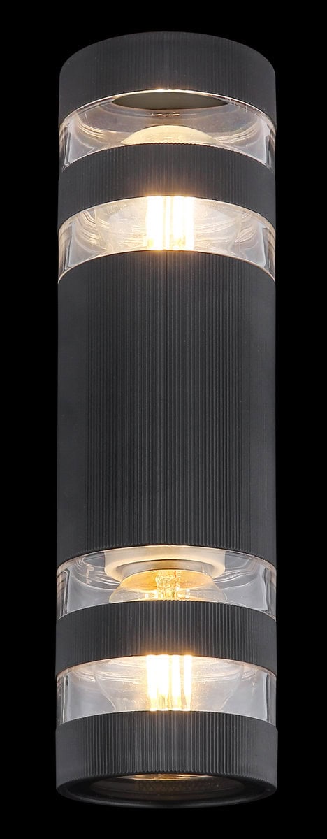 PLASTIČNA CRNA MAT ZIDNA LAMPA impresionira svojim jednostavnim, cilindričnim dizajnom i raznovrsnim osvjetljenjem koje sija prema gore i prema dolje. Mat crno plastično kućište daje lampi modernu i bezvremensku eleganciju koja se savršeno uklapa u različite dizajne prostorija. Sjenilo od prozirnog stakla i plastike osigurava ravnomjernu distribuciju svjetlosti i dodaje ugodnu svjetlosnu atmosferu u prostoriju. Opremljena sa dva E27 grla (sijalice nisu uključene), lampa nudi fleksibilnost izbora željenog izvora svetlosti. Ova zidna lampa je idealna za hodnike, dnevne sobe ili spavaće sobe i pruža funkcionalno i elegantno osvetljenje. Sa PLASTIČNOM ZIDNOM SVJETOM BLACK MATT možete postaviti elegantne akcente i stvoriti ugodnu atmosferu u svom domu.