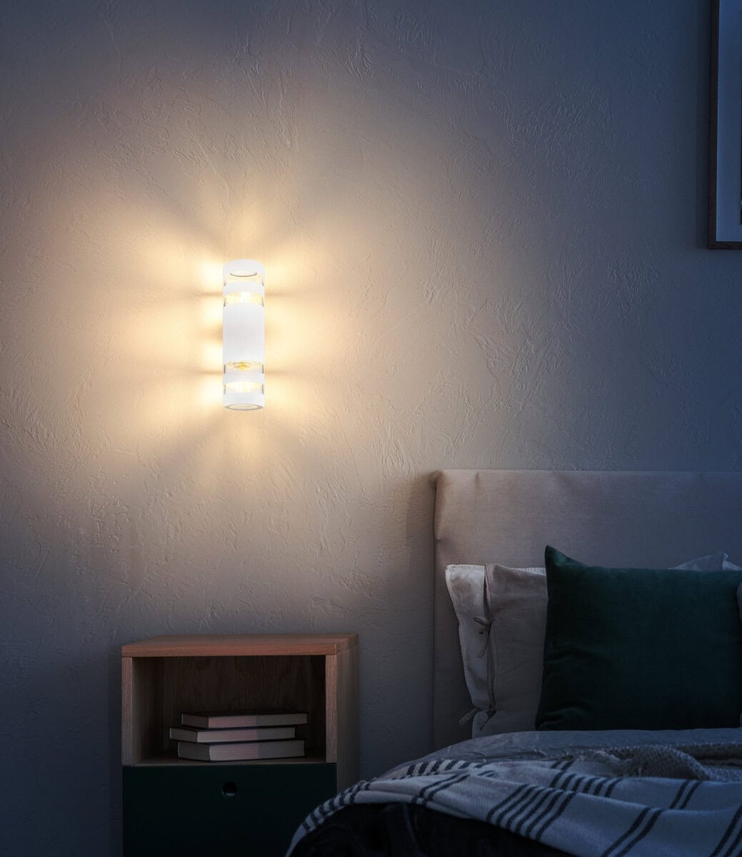 BIJELA PLASTIČNA ZIDNA LAMPA svojim cilindričnim dizajnom unosi modernu eleganciju u vaš dom. Sjaji prema gore i prema dolje, pružajući ravnomjerno, indirektno osvjetljenje. Tijelo izrađeno od bijele, mat plastike savršeno se uklapa u bilo koji koncept sobe i upotpunjuje različite stilove opremanja, od klasičnog do modernog. Sjenilo od prozirnog stakla i plastike osigurava briljantnu distribuciju svjetlosti i ugodnu atmosferu. Sa dva grla E27 (sijalice nisu uključene) lampu možete opremiti po Vašoj želji i individualno podesiti jačinu svjetla. BIJELA PLASTIČNA ZIDNA LAMPA idealna je za hodnike, dnevne sobe ili spavaće sobe i stvara toplu, privlačnu svjetlosnu atmosferu. Idealan izbor za sve koji traže funkcionalnu i elegantnu rasvjetu.