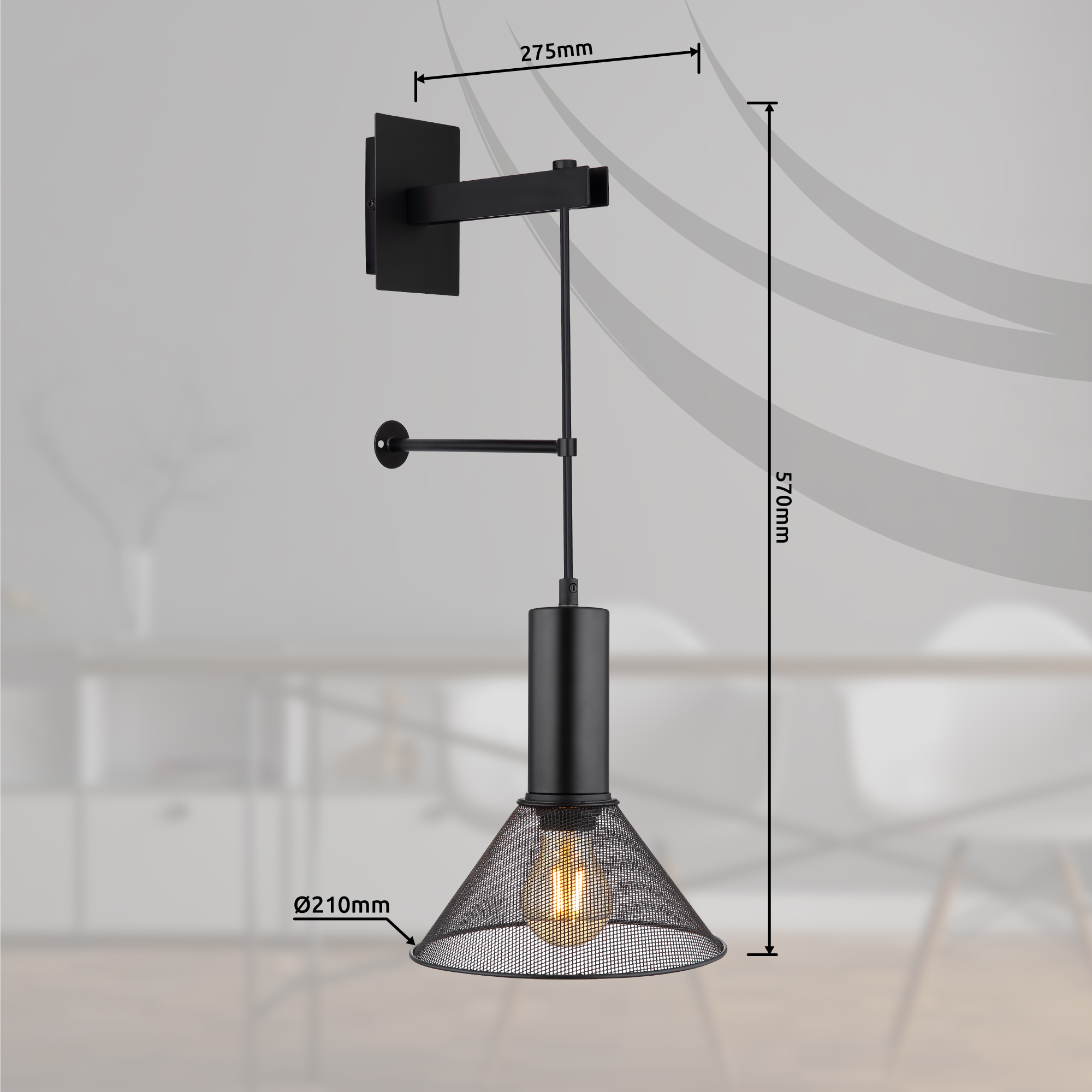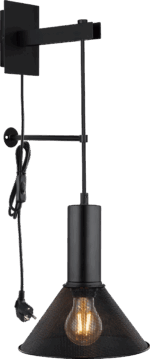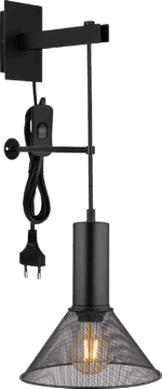 Ova zidna lampa iz serije JEDD izrađena je od crnog mat metala i crne metalne pletenice i ima preklopni prekidač na kablu i emituje svetlo prema dole. Priključni kabel je uključen u pakovanje, a lampa se može spojiti direktno ili pomoću utikača. Dimenzije su 210 x 570 mm (širina x visina) sa ovjesom od 275 mm i dužinom kabla od 1500 mm. E27 utičnica vam omogućava da sami odredite boju svjetla i svjetlinu do maksimalne snage od 60 vati. Zbog dugovečnosti i uštede energije preporučujemo LED sijalice.
